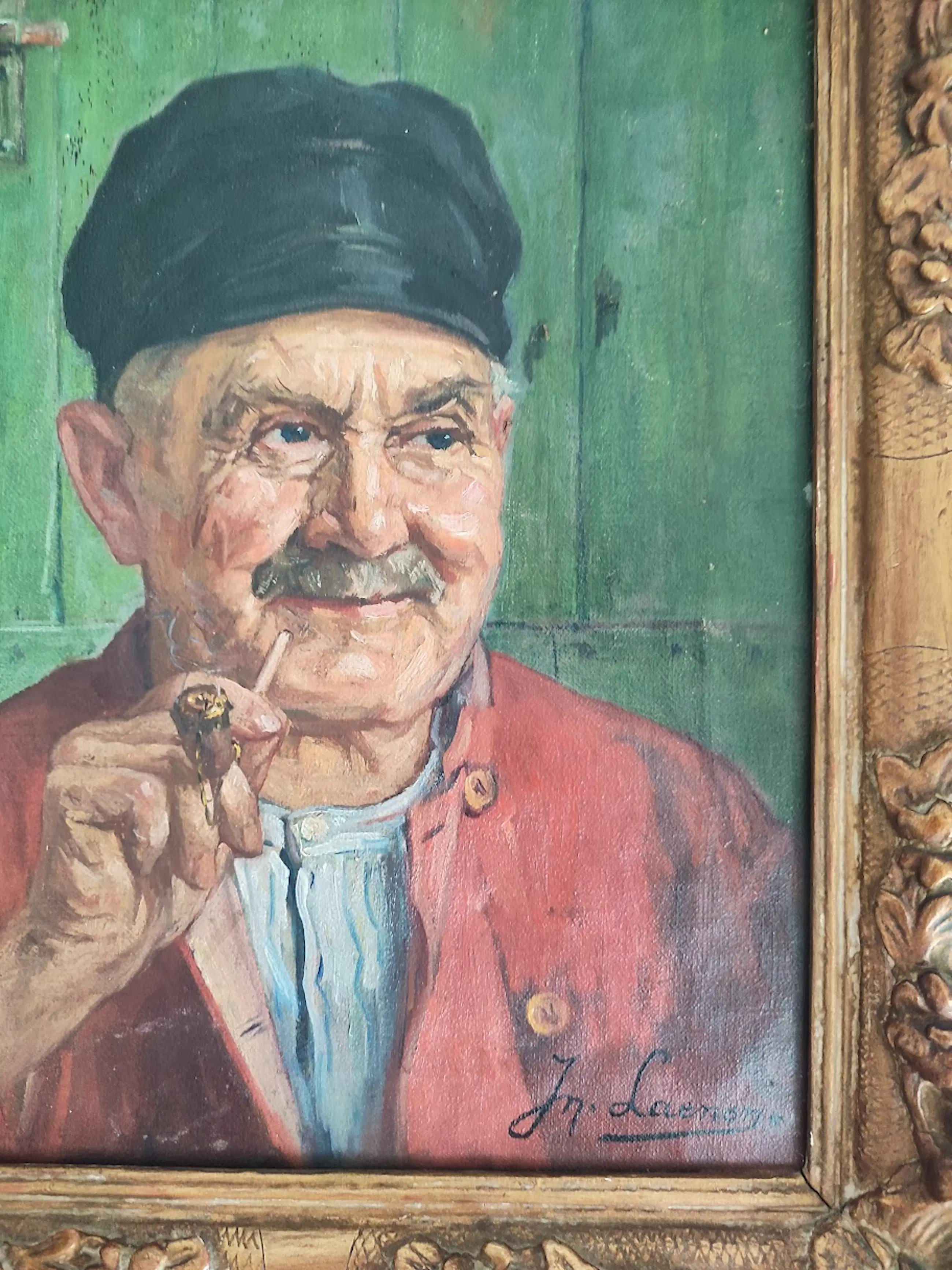 De gelaatsuitdrukkingen, kleurkeuze (diep groen, rood, aardetinten) en losse penseelvoering sluiten sterk aan bij het bekende oeuvre van Jean Laenen.