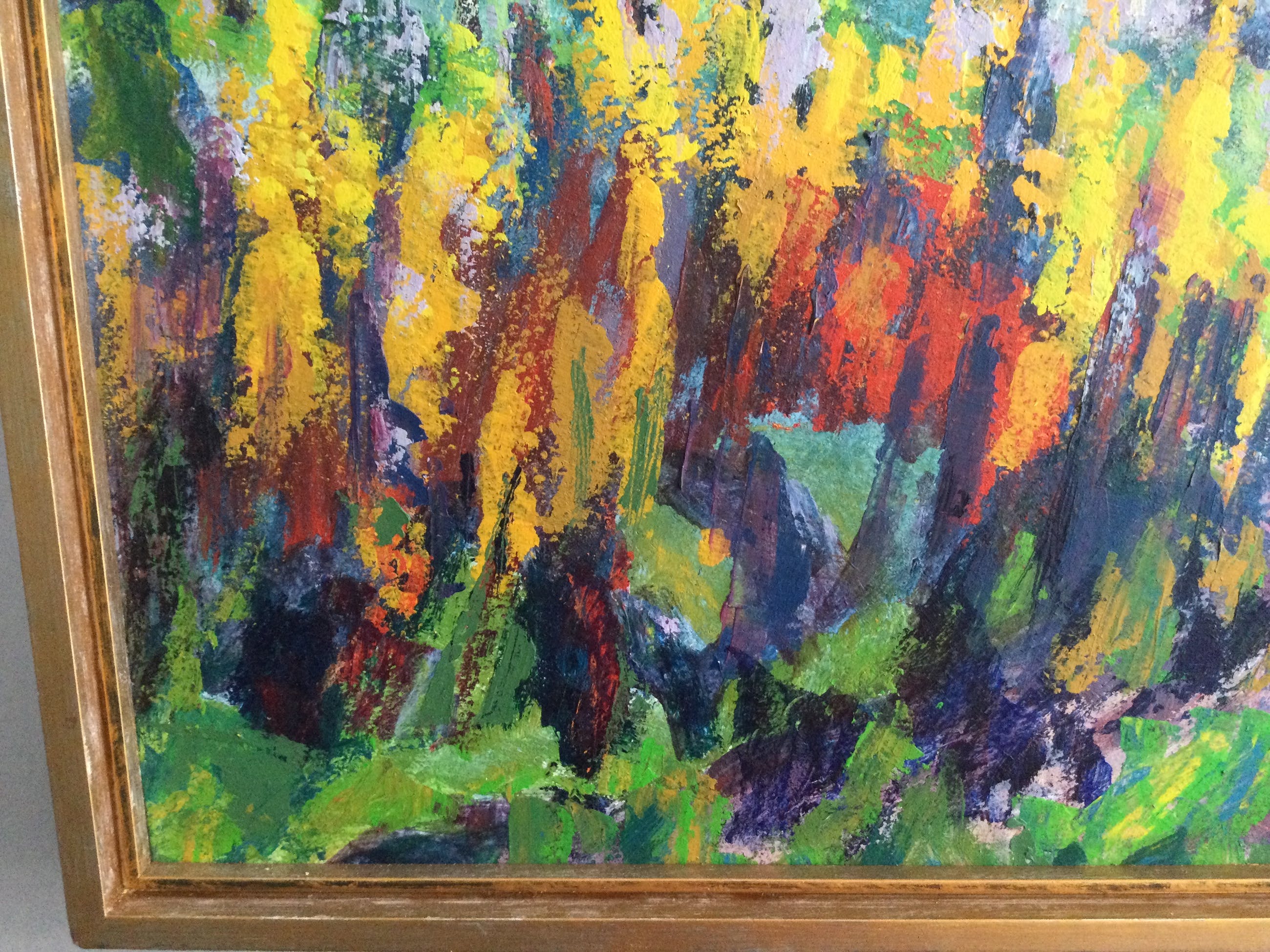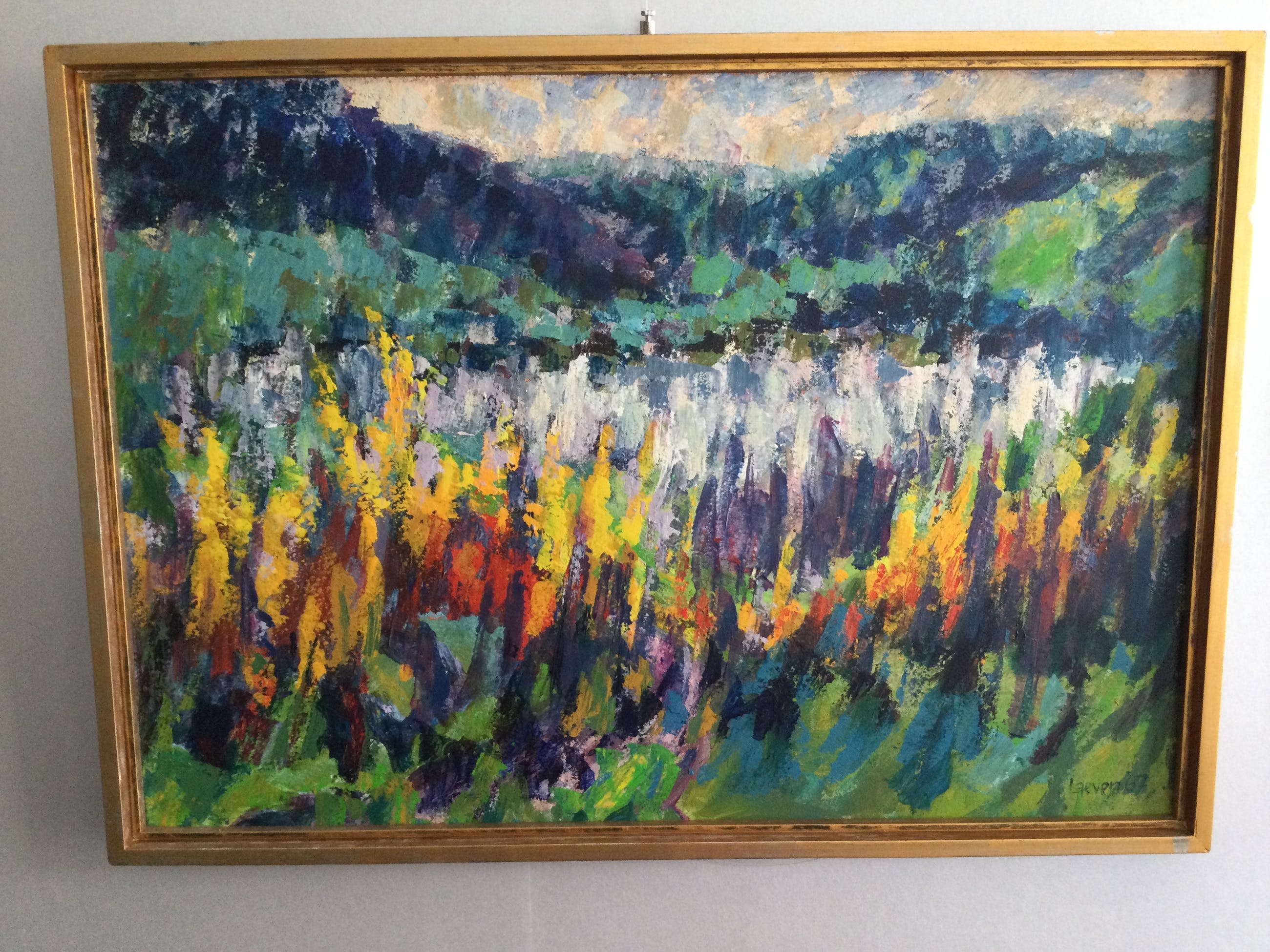 Een mooi kleurrijk schilderij van de Limburgsche schilder Jan Laeven. Aangekocht uit de kunstcollectie van DSM. Voor de liefhebber! De lijst moet worden bijgewerkt.
