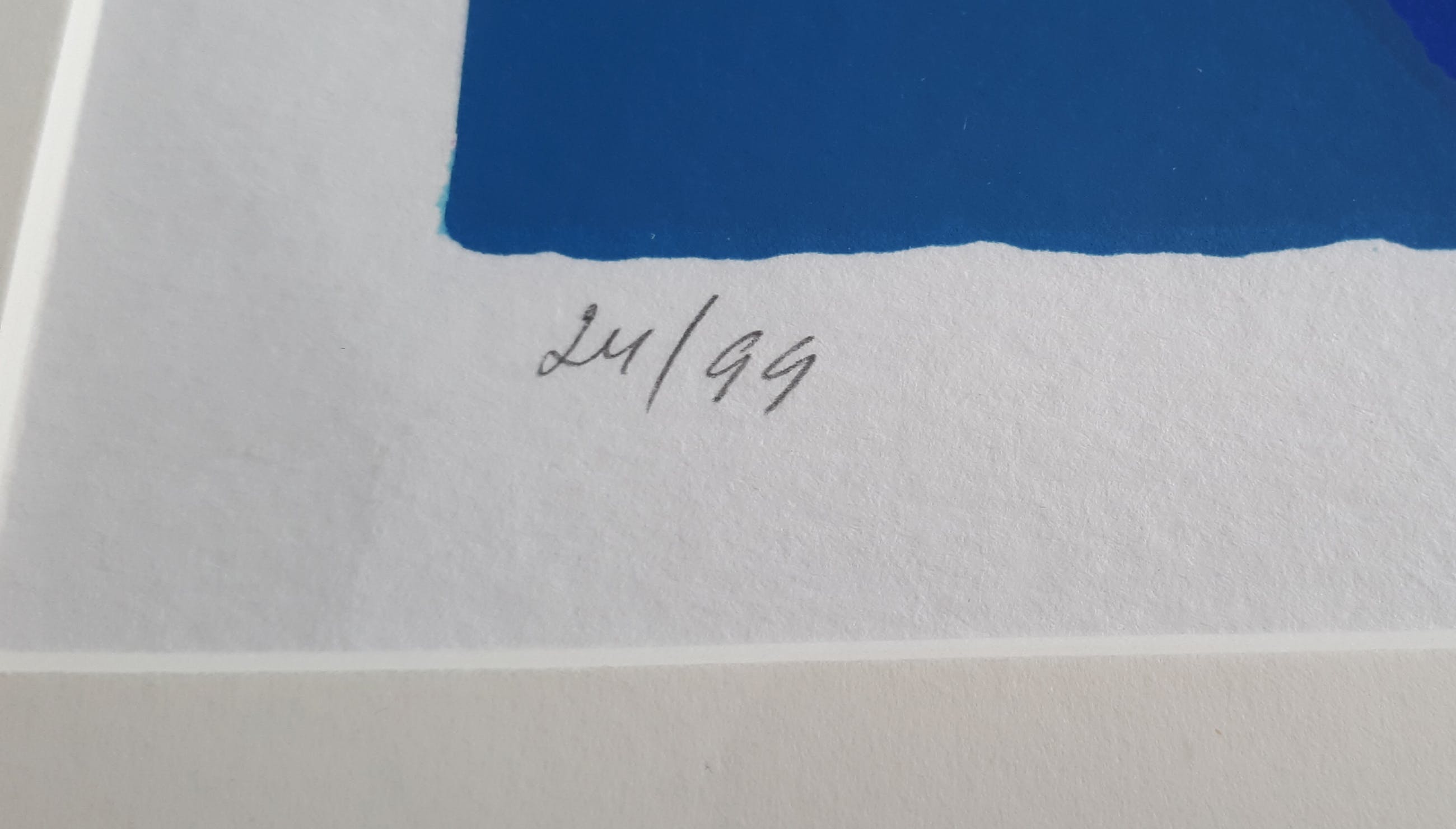 De zeefdruk i sprofessioneel ingelijst ! Slechts enkele zeer lichte beschadigingen.