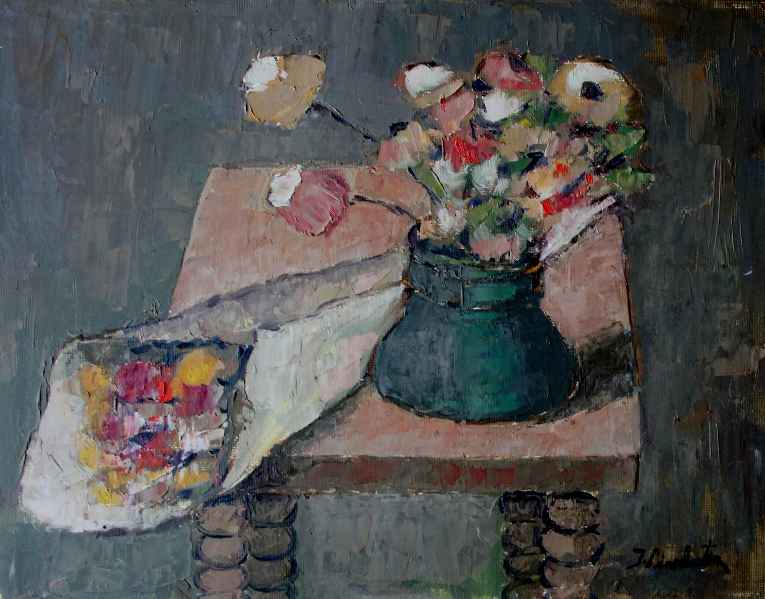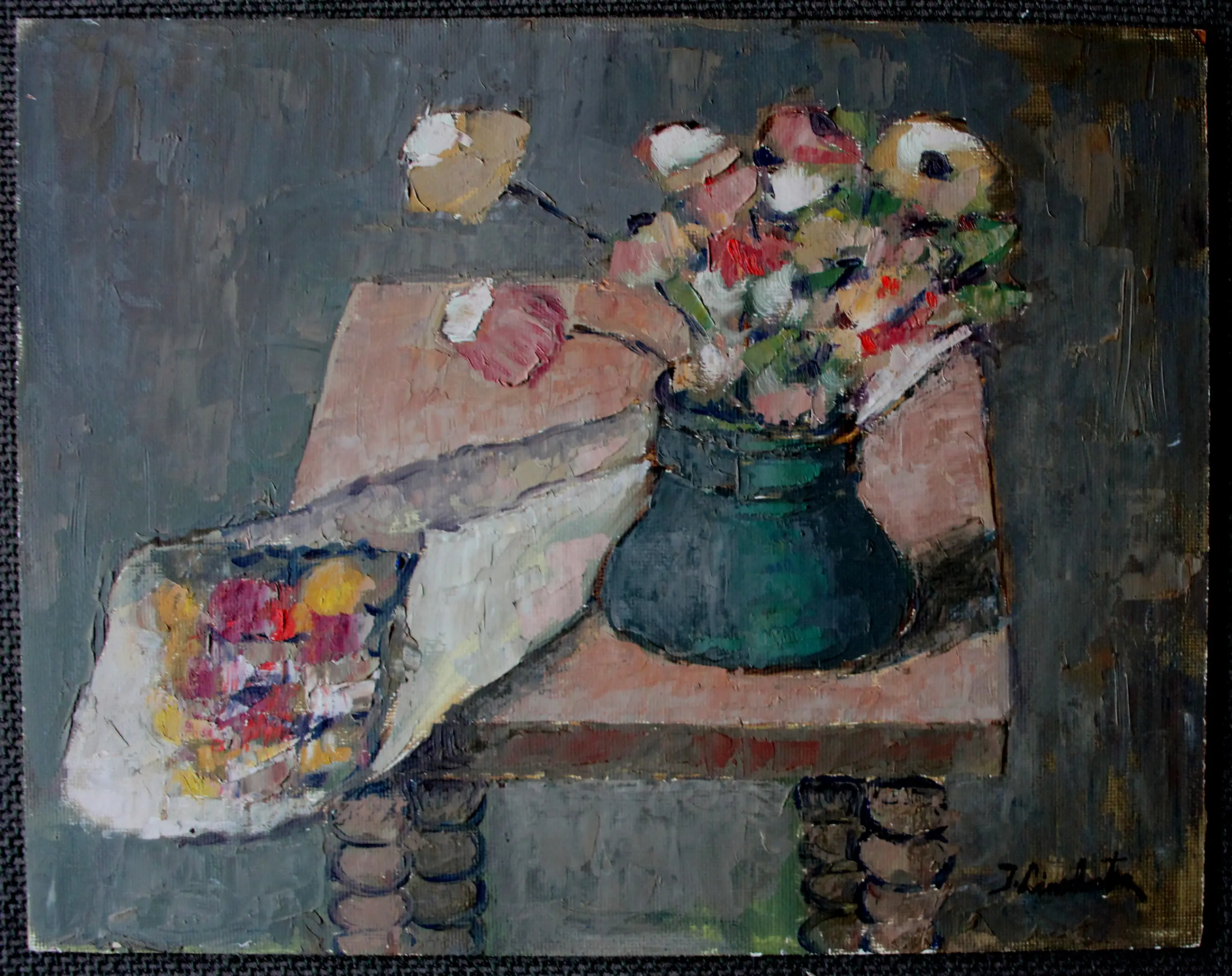 Olieverf op board van Jan Linschooten. Voorstelling van een stilleven met bloemen. Afmetingen werk: H35 x b44.5cm. Het werk is rechtsonder gesigneerd door de kunstenaar. De authenticiteit van dit werk wordt volledig gegarandeerd. Een certificaat van echtheid kan, op aanvraag, worden gemaild.
