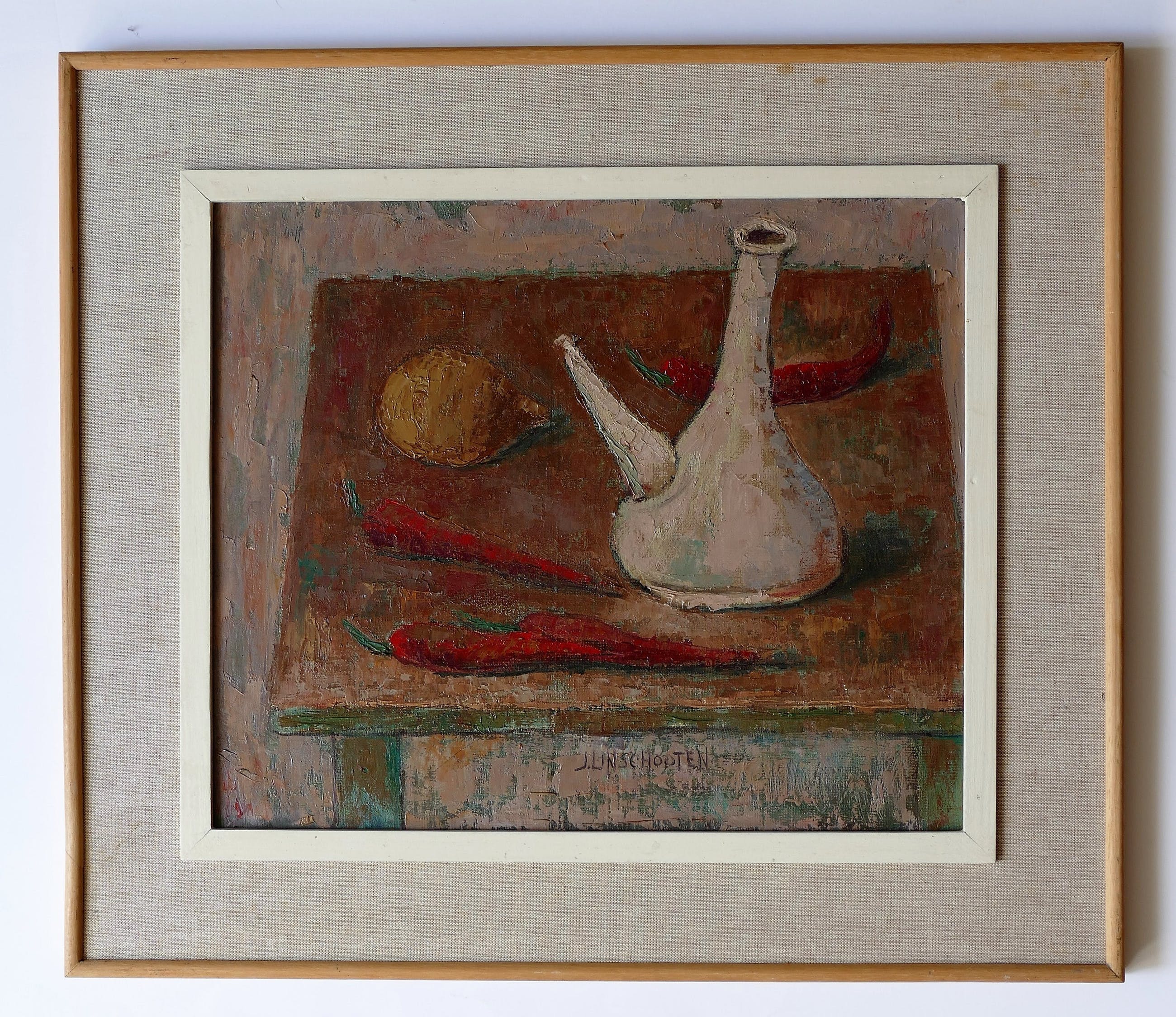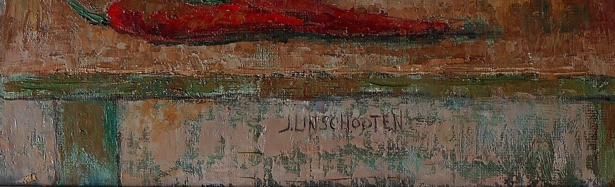 Het werk van Linschooten wordt gekenmerkt door de gehanteerde techniek - paletmes - en de onderwerpen, veelal van een verstilde eenvoud.....
