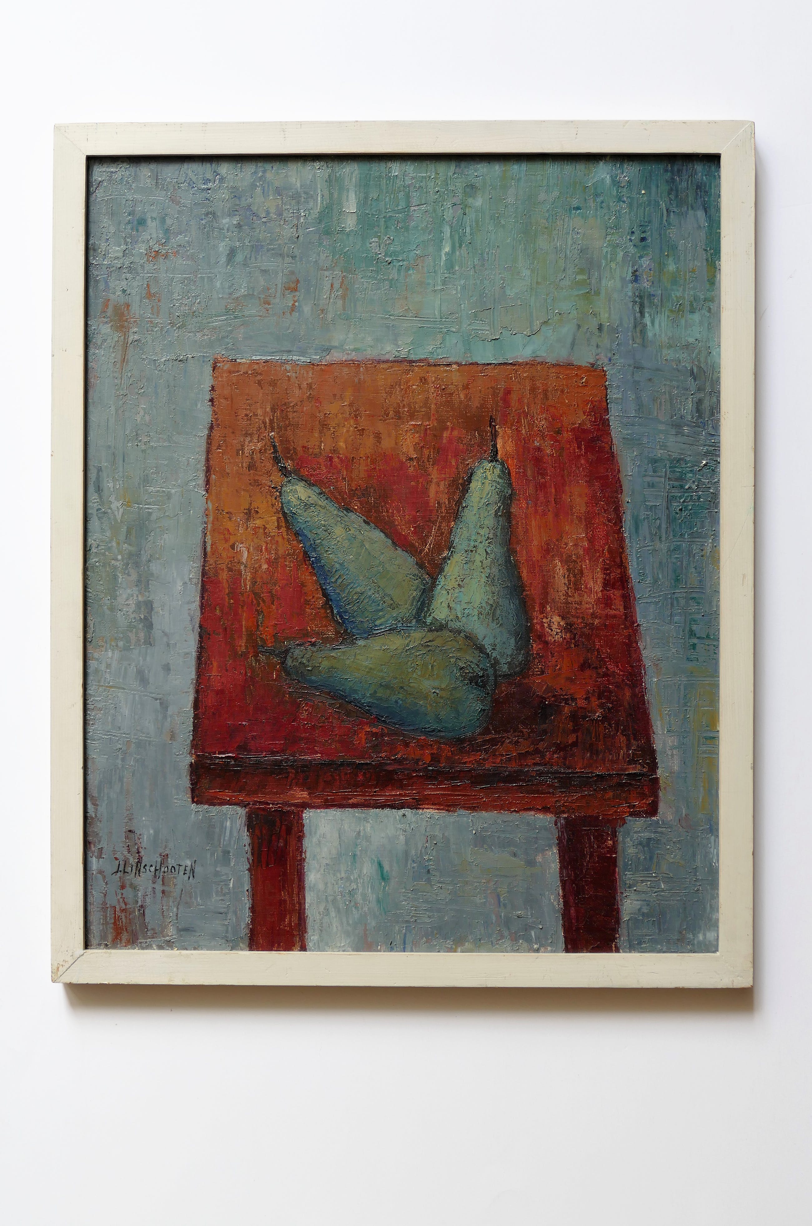 Het werk van Linschooten wordt gekenmerkt door de gehanteerde techniek - paletmes - en de onderwerpen, veelal van een verstilde eenvoud.....