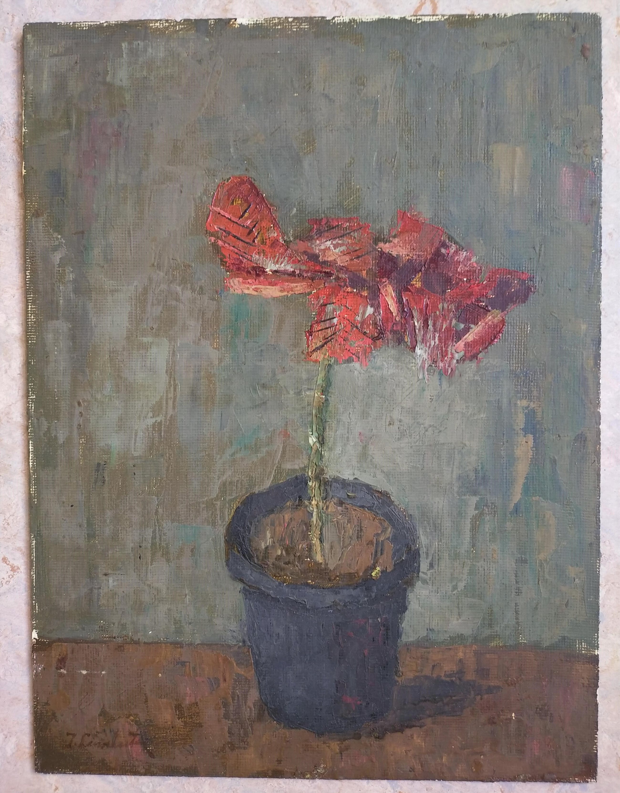 Joop Linschooten was boekbinder van beroep en als schilder autodidact, waarbij hij vooral geïnspireerd werd door de naoorlogse Haagse schilders zoals Jan van Heel. Het liefst met paletmes schilderde hij gevarieerde stillevens, die door hun opvallende kleurgebruik een herkenbaar en levendig karakter hebben.