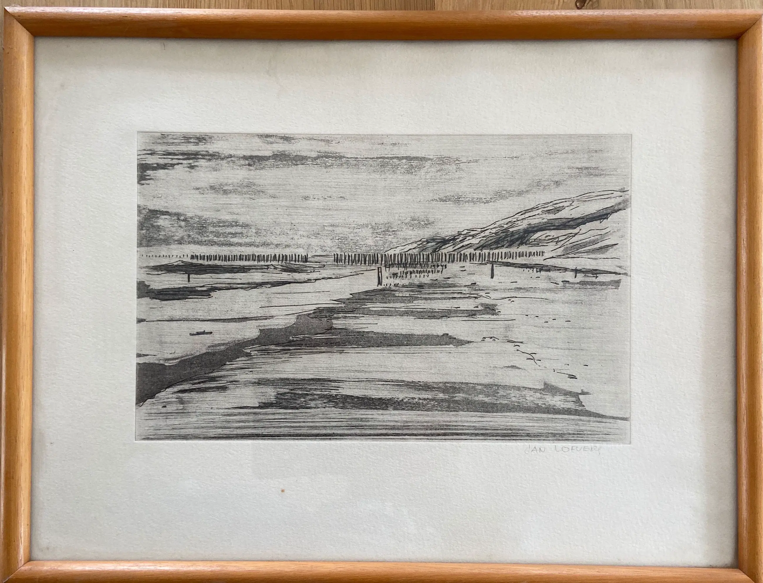 Een net ingelijst, in een eenvoudige lijst die niet afleid, kunstwerk van Jan Lofvers.