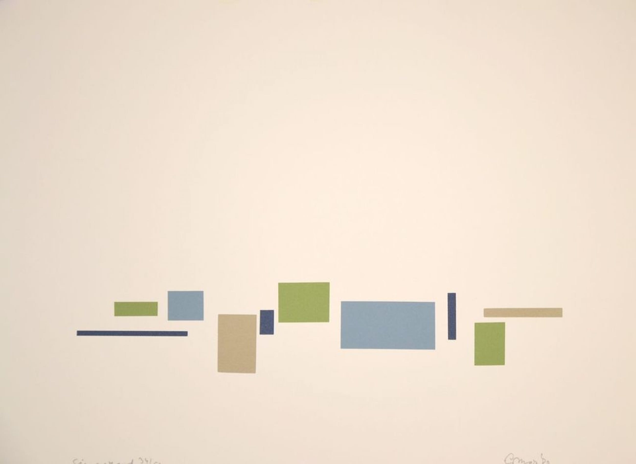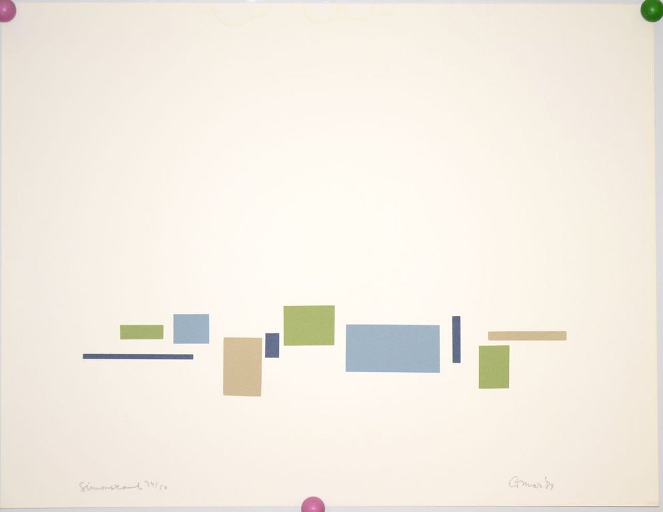 Mooie zeefdruk van Jan Loman uit de serie Wadden. Bij het maken van deze werken heeft de kunstenaar zich laten inspireren door het landschap van de Waddeneilanden wat enkele prachtige abstracte composities heeft opgeleverd.