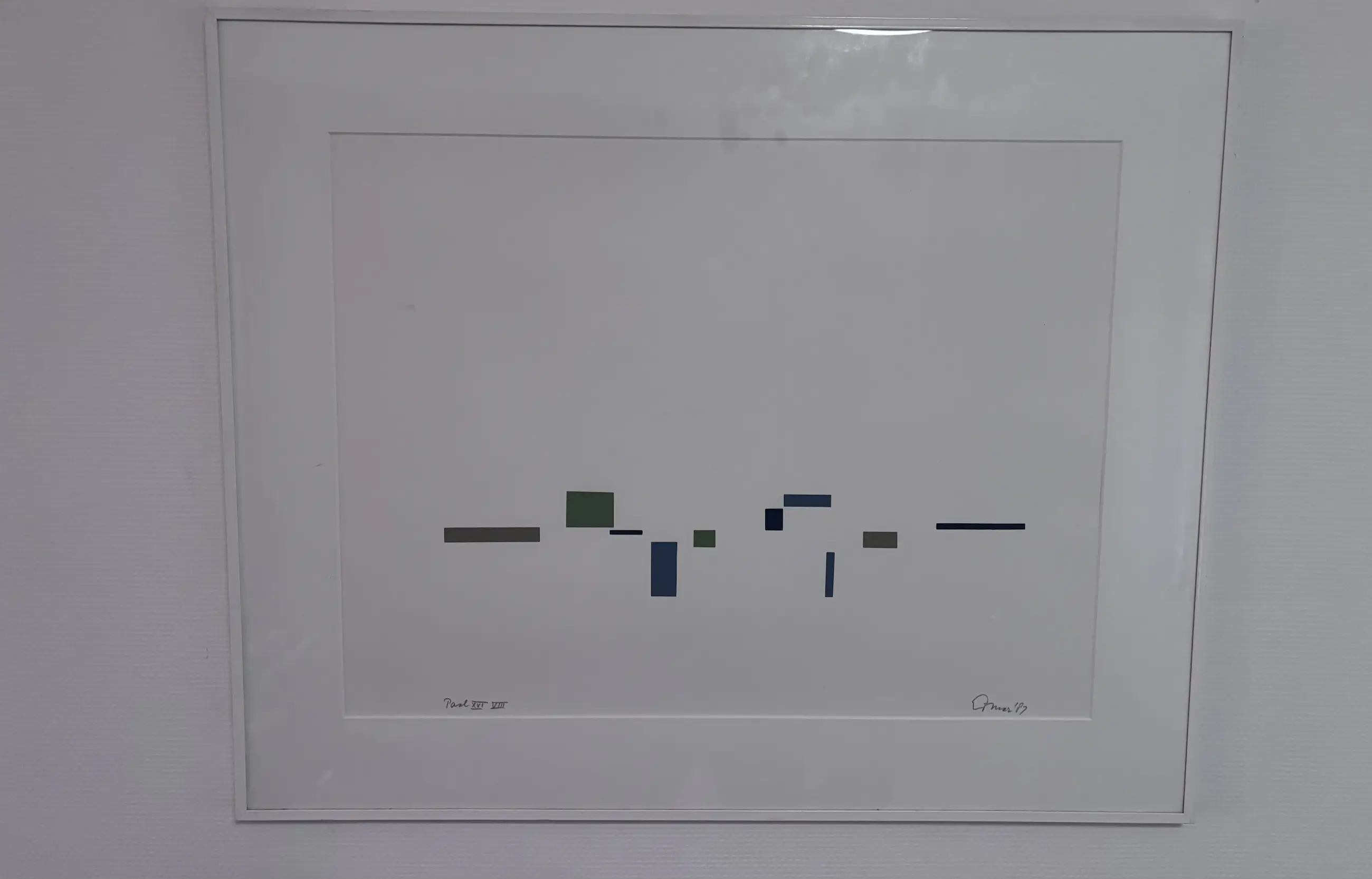 Dit werk maakt onderdeel uit van de ‘Waddenserie’: zes prenten in dezelfde kleurstelling: donker en lichter blauw, groen en bruin. Het opkomend en vervliedend verschiet van de blokjes, de kleurstelling waar lucht, water en bodem in samenkomen: met een paar sobere middelen vat Loman de Wadervaring samen. In deze serie is hij het meest schatplichtig aan de traditie van De Stijl, denk aan Van der Leck en Van Doesburg.