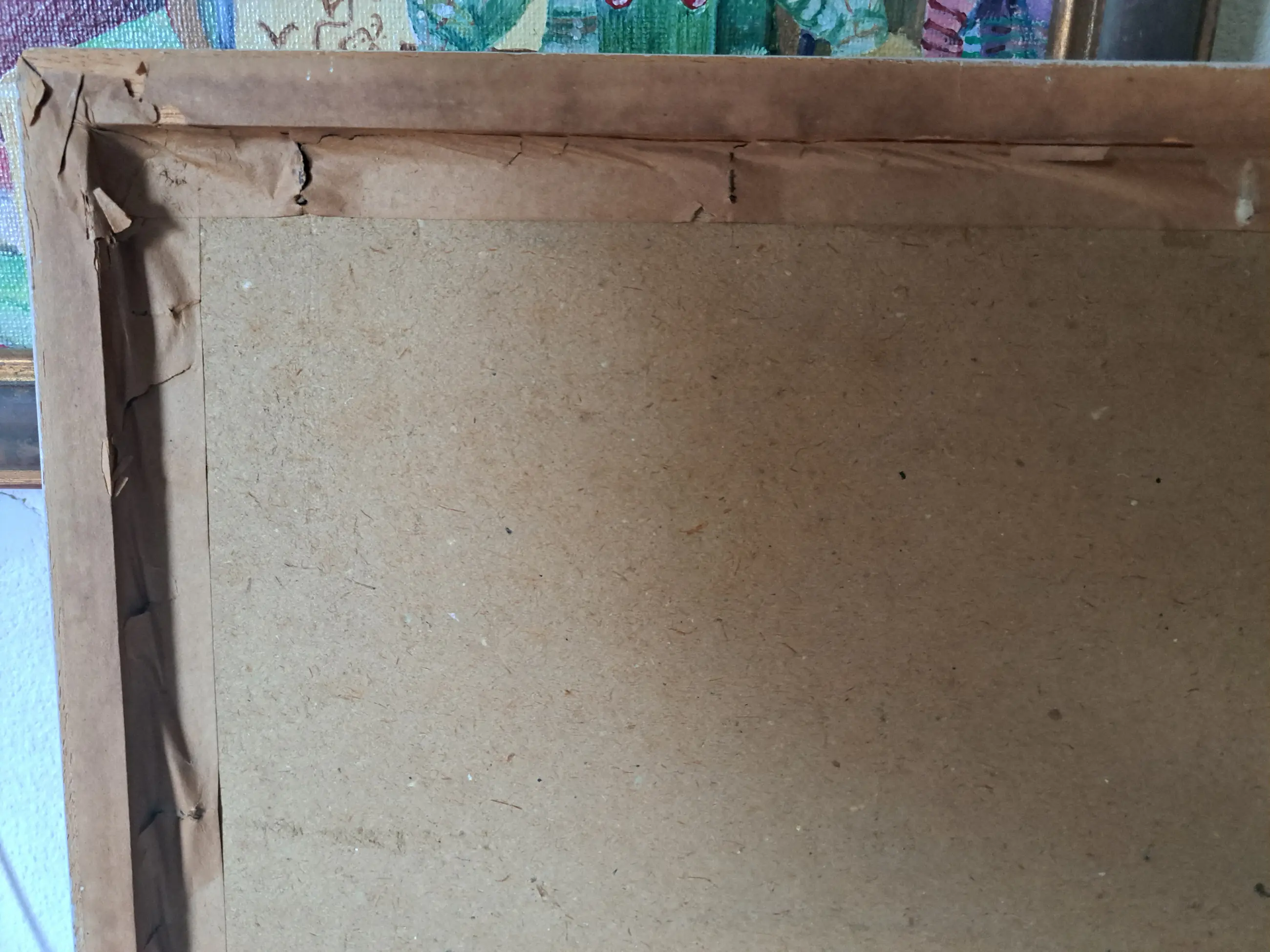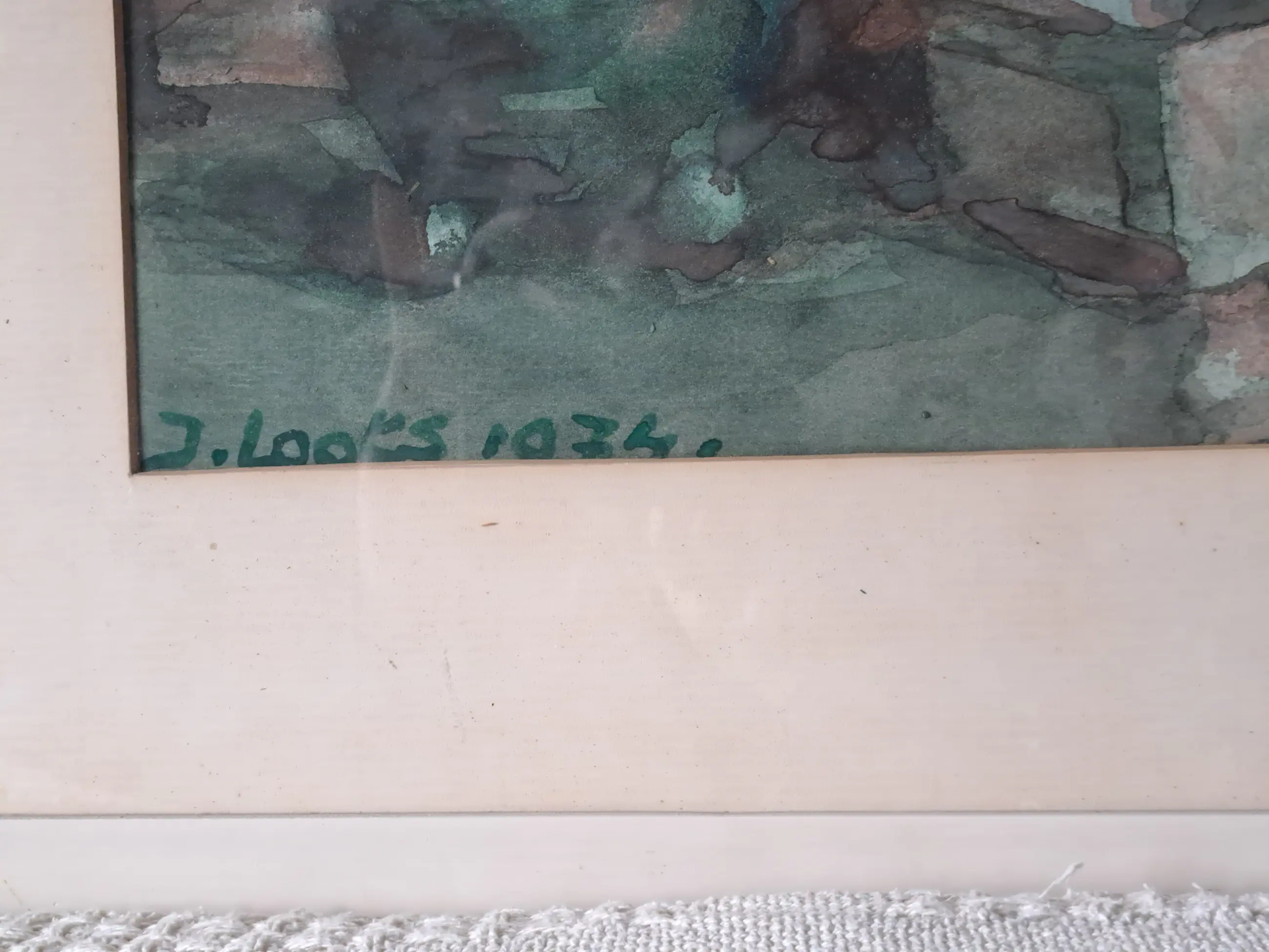 De aquarel is in prima staat. Passe-partout en glas is ook nog goed, de achterkant is verouderd en heeft t.z.t vervanging nodig.