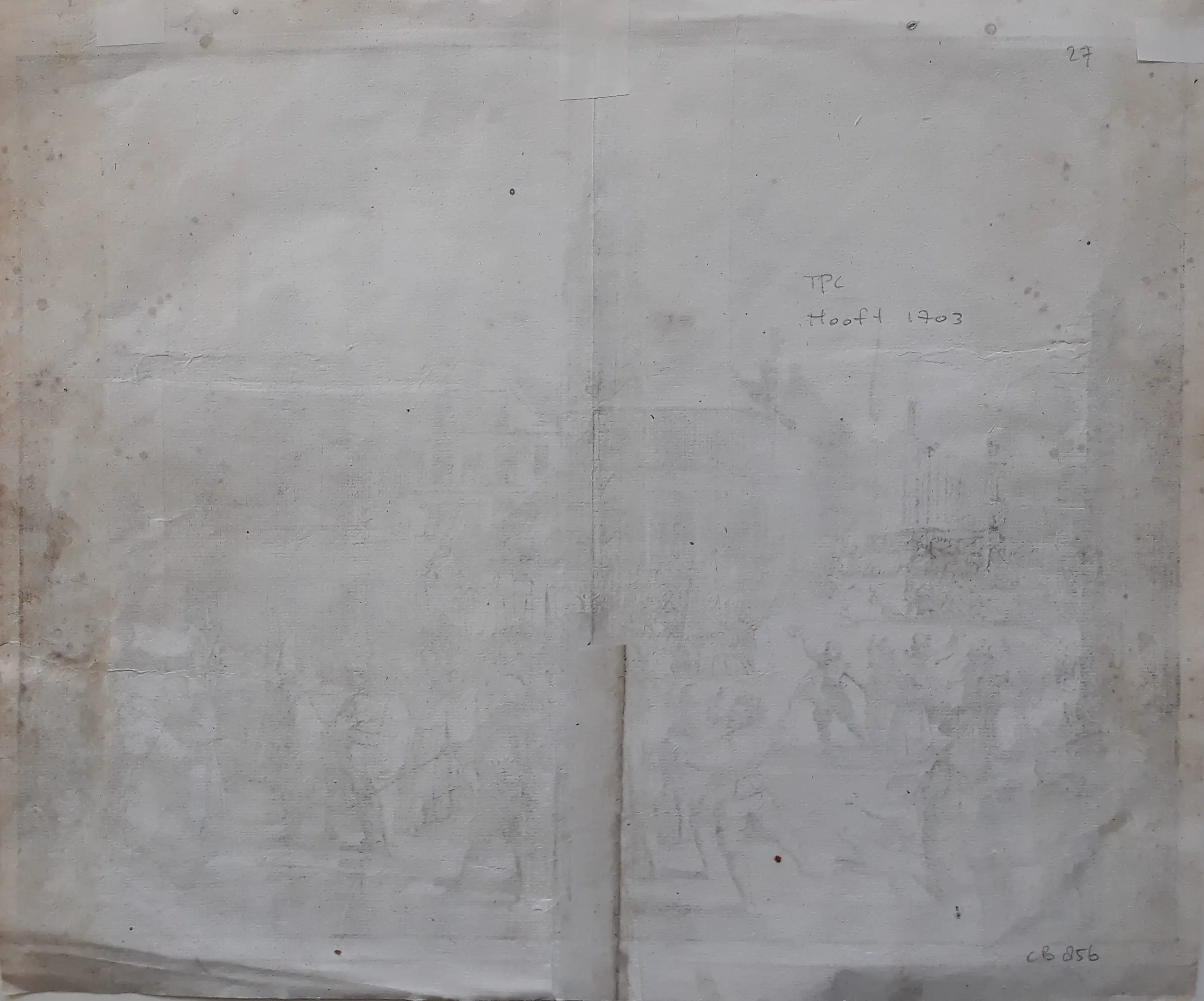 Enkele gerepareerde kleine inscheuringen. Prenttitel wat onscherp.
