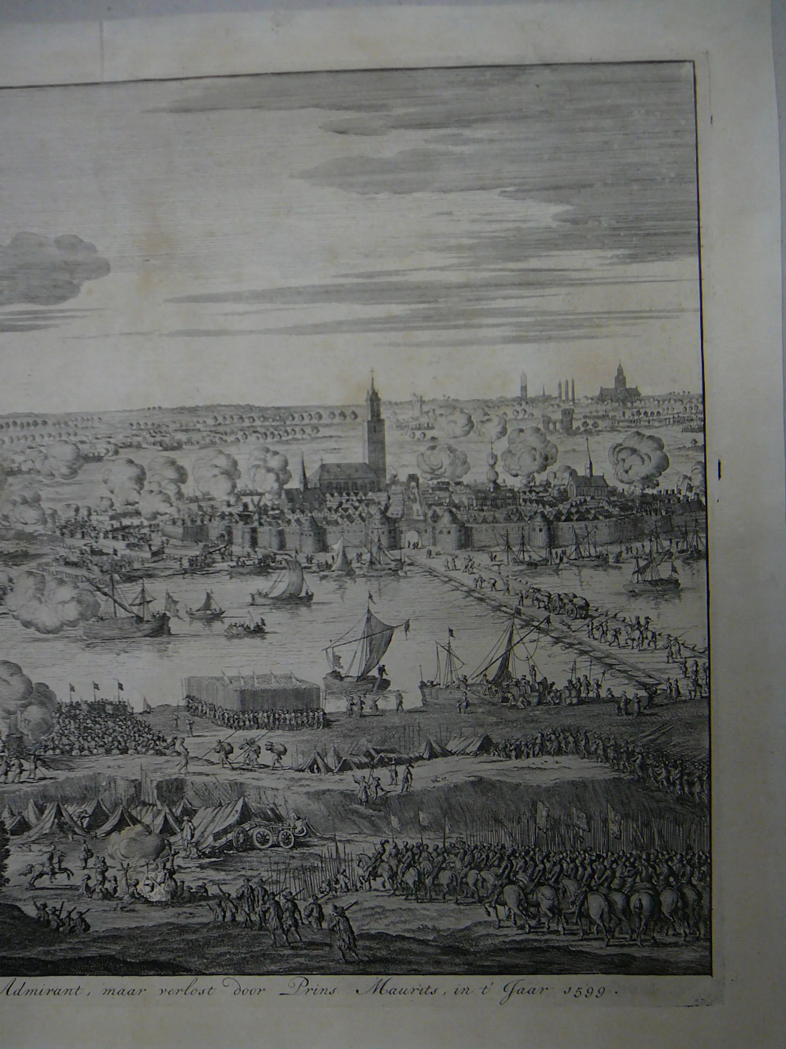 Beleg beleg van Zaltbommel door Mendoza in 1599 Vervaardigd door Jan Luyken Uitgever Zacharias Chatelan Gravure in mooie staat afm papier 30 x 38 cm