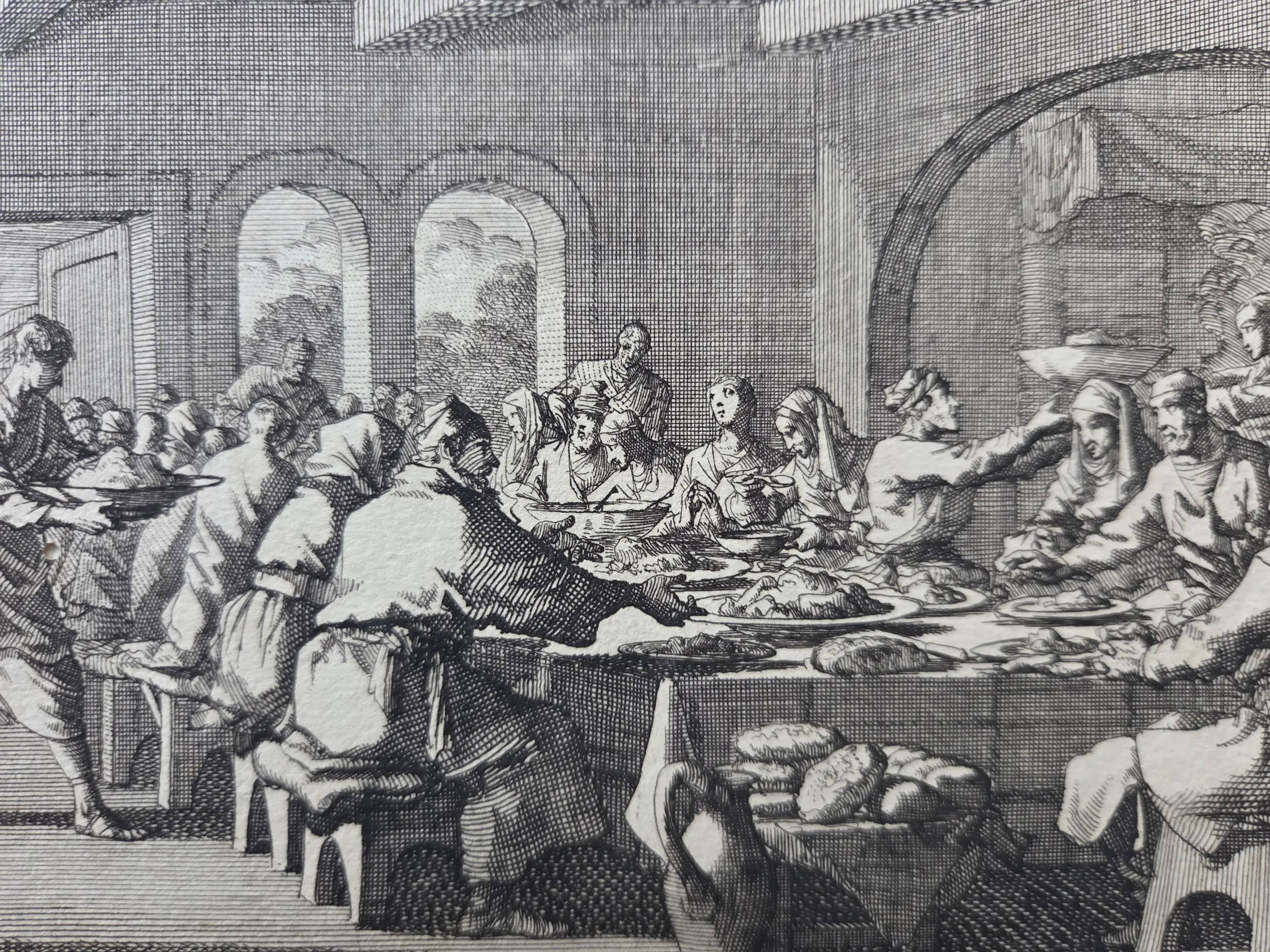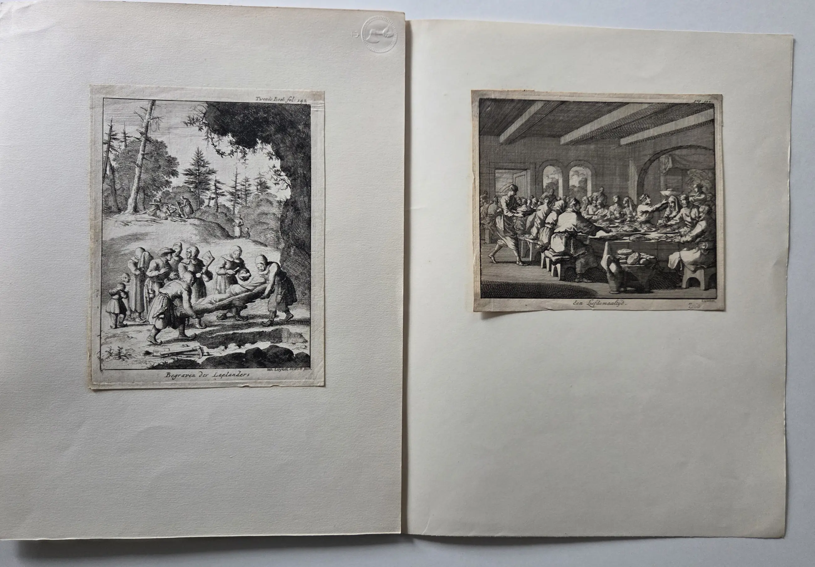 Jan Luyken - Twee gravures. Liefdesmaaltijd. Begraven der Laplanders..