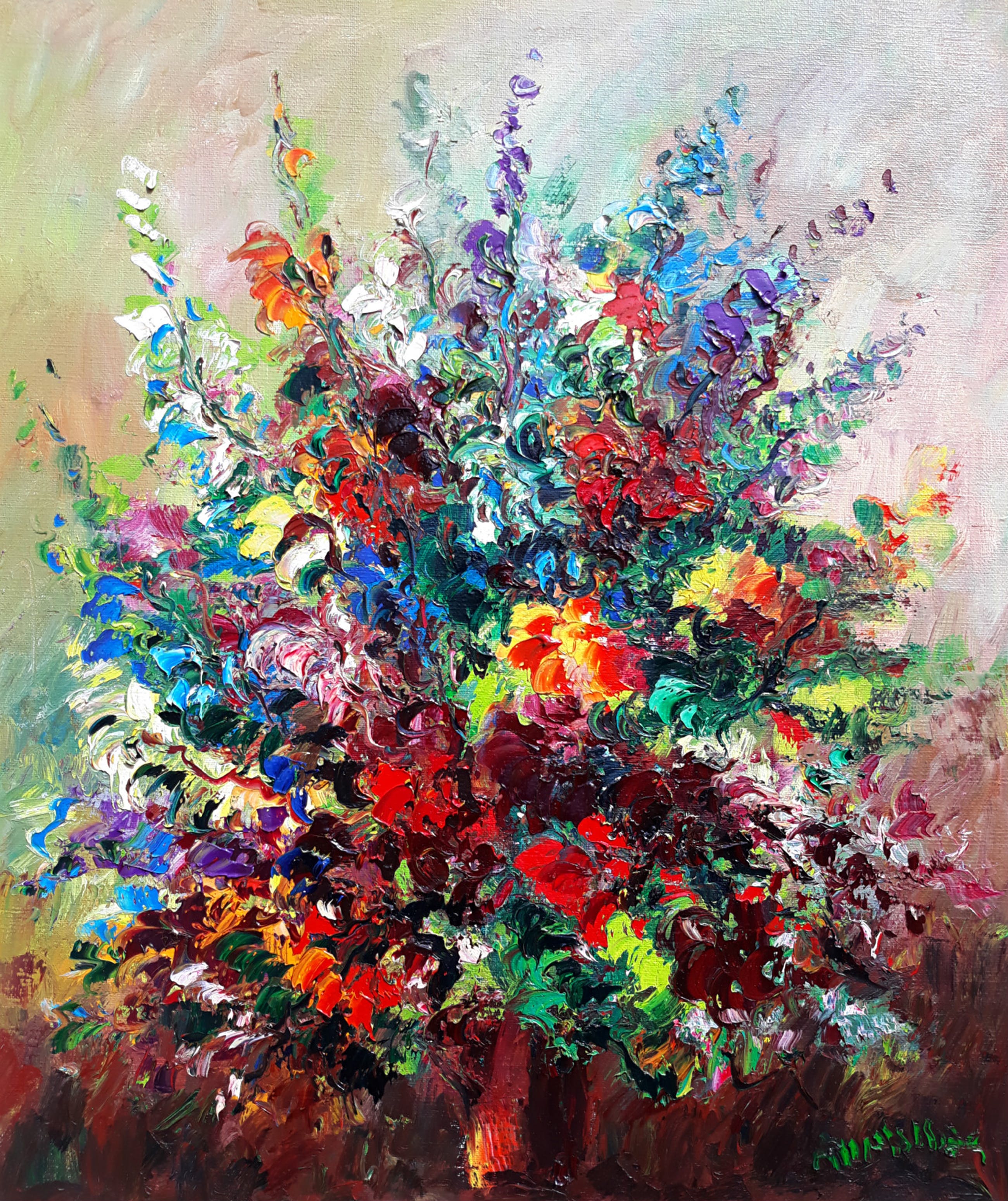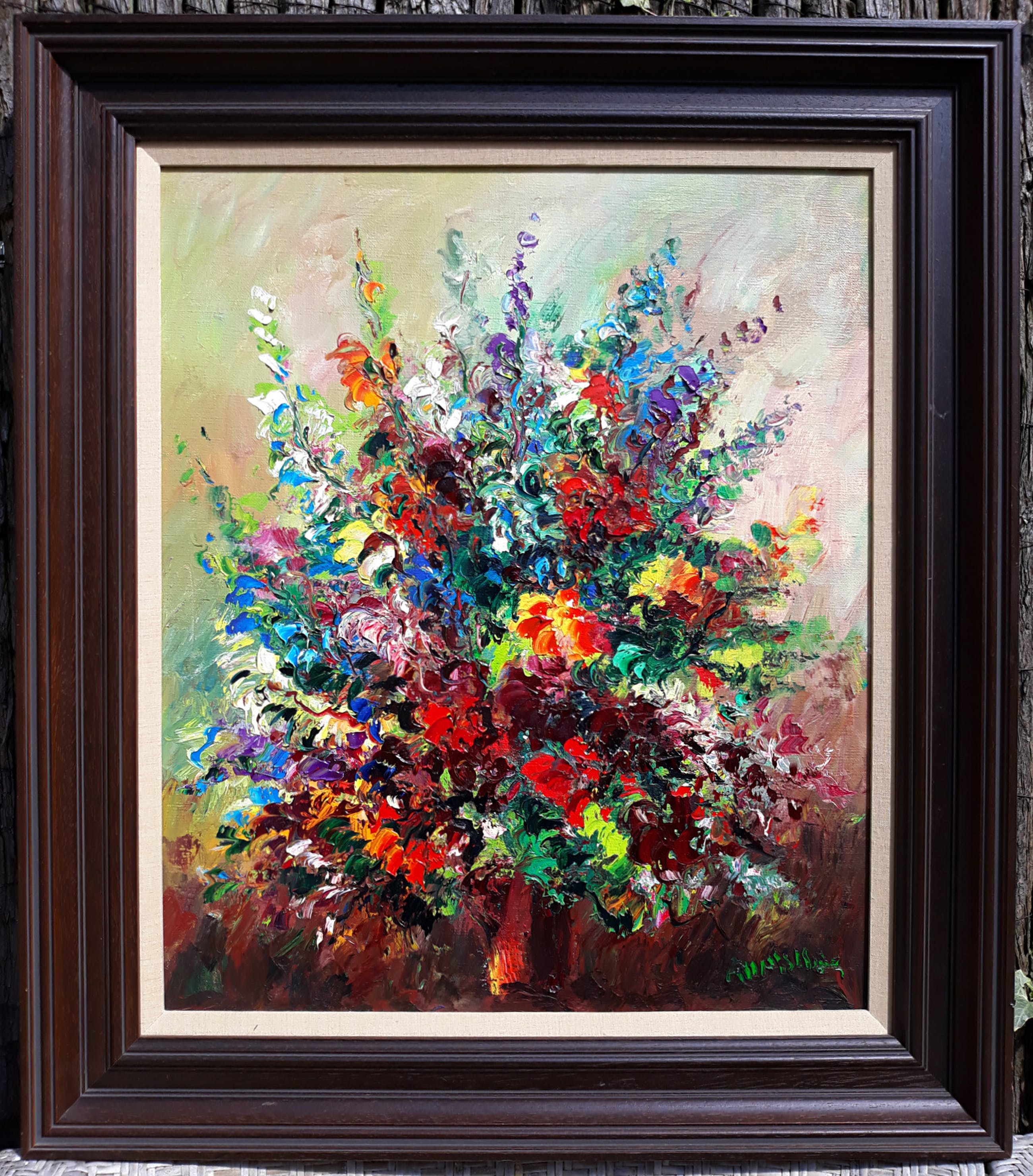 Karakteristiek, pasteus geschilderd stilleven van Jan Makkes. Olieverf op doek, gesigneerd rechtsonder, in complementerende houten lijst. In zeer goede conditie.