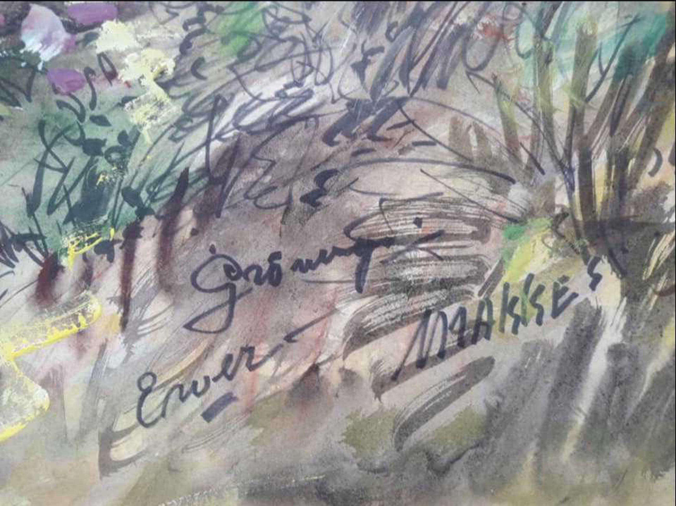 Groot werk van Jan Makkes in zijn karakteristieke stijl geschilderd. Door zeer grote formaat en ontspiegelde glasplaat kan dit werk alleen worden opgehaald of gebracht.