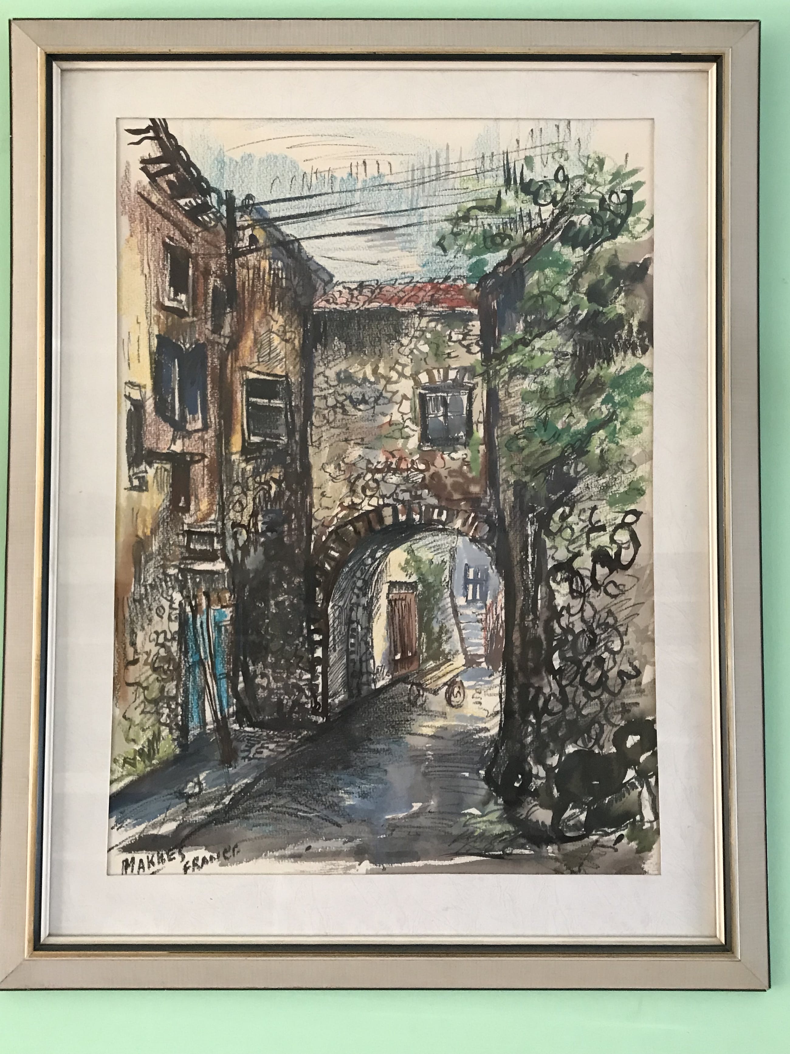 Ziet er uit als een aquarel, weet niet zeker of het op canvas is geschilderd.