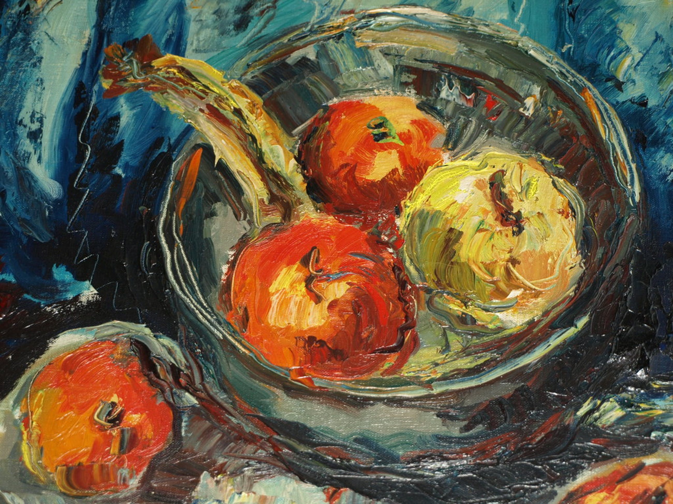 Een groot en pasteus opgezet schilderij uit 1968 van de Nederlandse kunstenaar Jan Makkes.