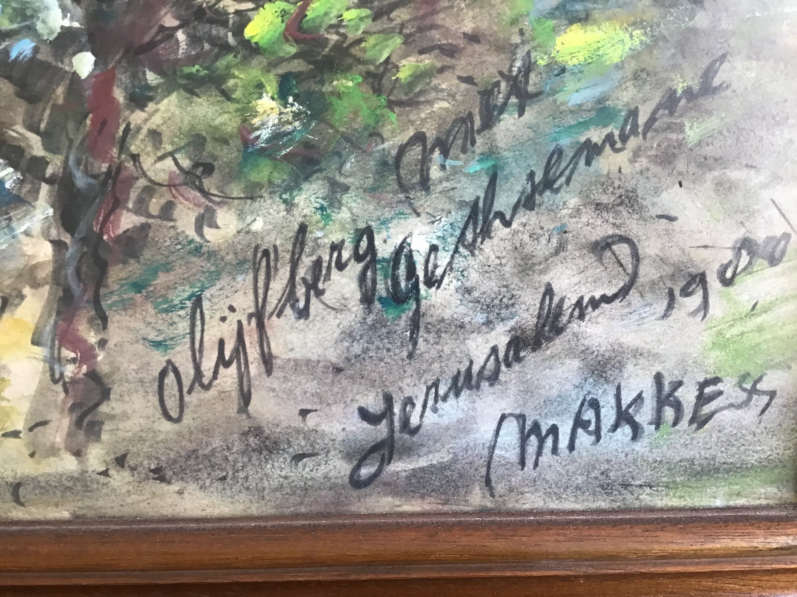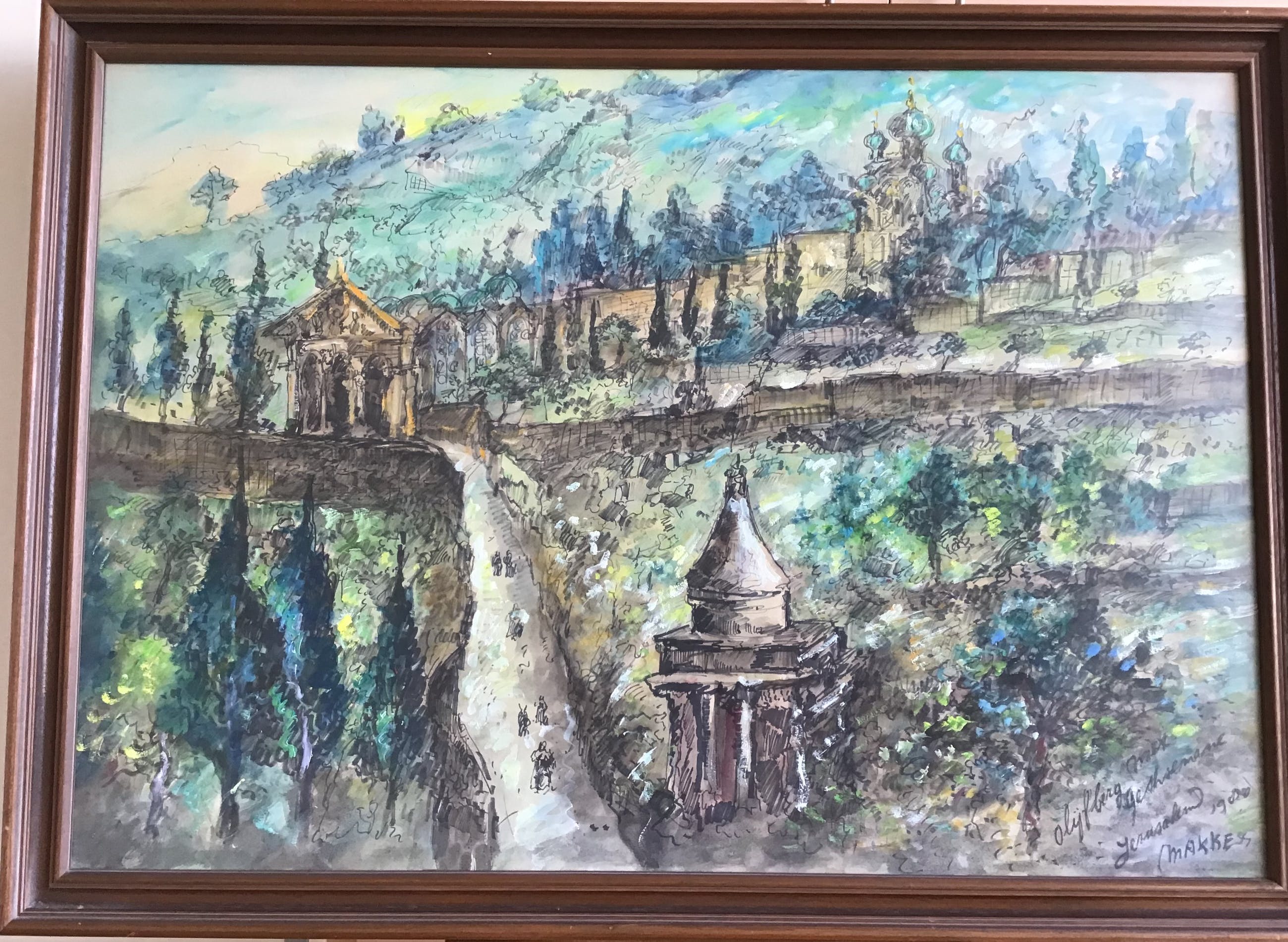 Mooi geschilderd beeld van de Olijfberg met Getsemané in Jerusalem.