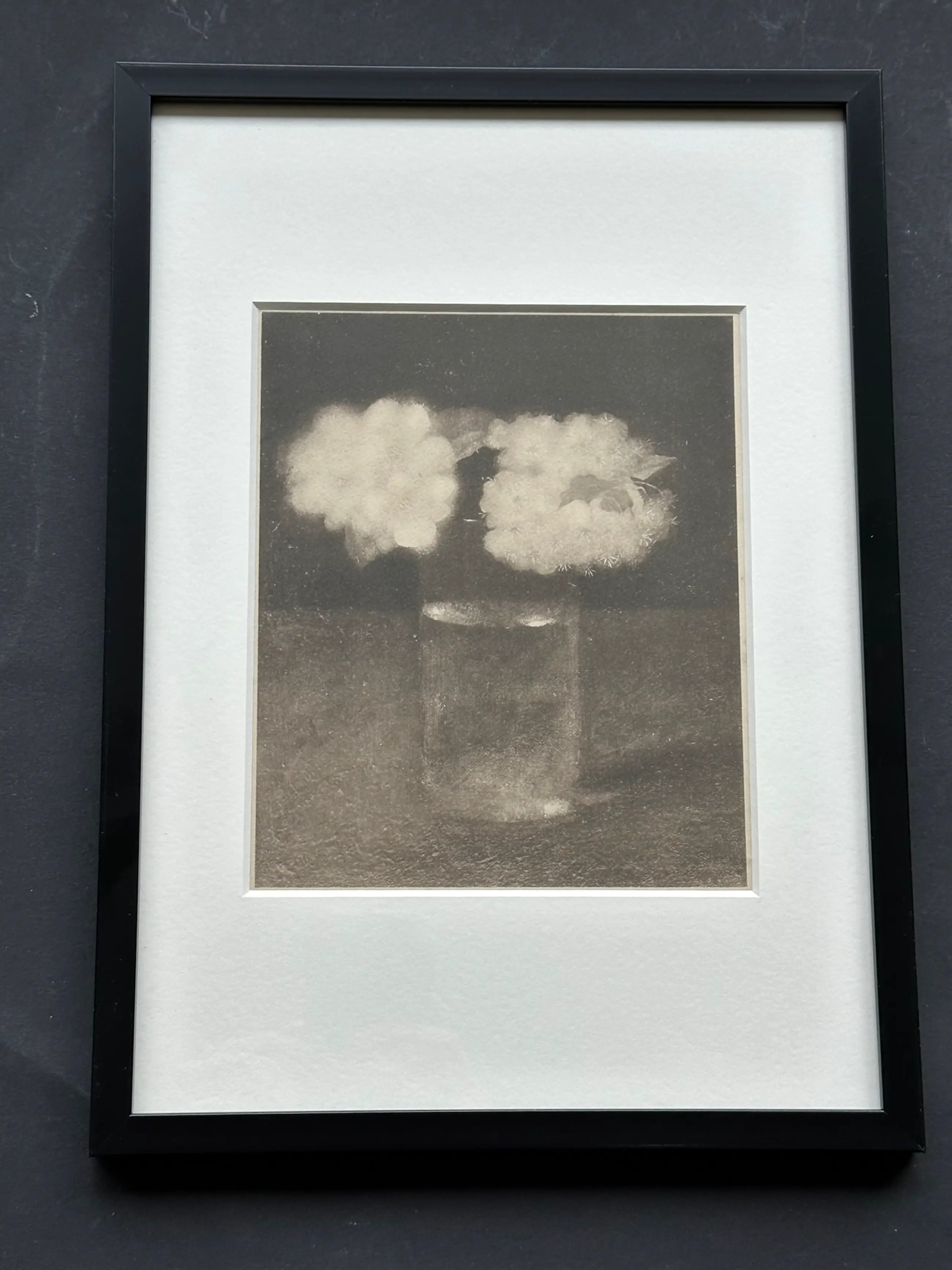 De heliogravure is in perfecte staat, in een passe-partout en ingelijst.