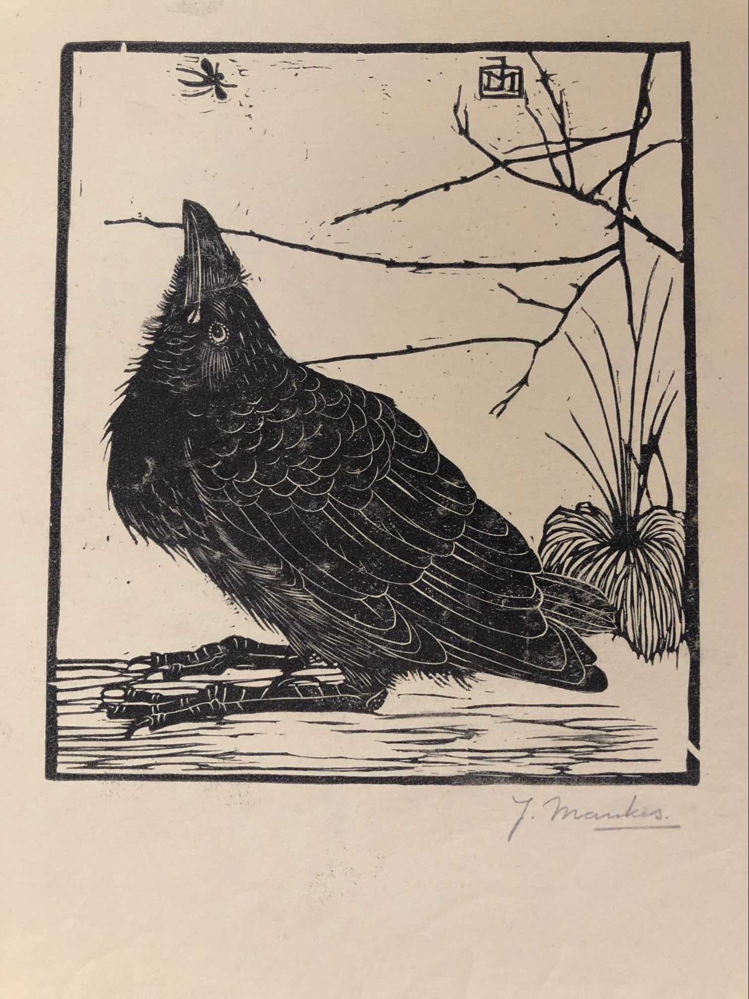 Een mooie houtsnede ( 1918 ) van Jan Mankes , gesigneerd met potlood rechtsonder en monogram in de plaat.