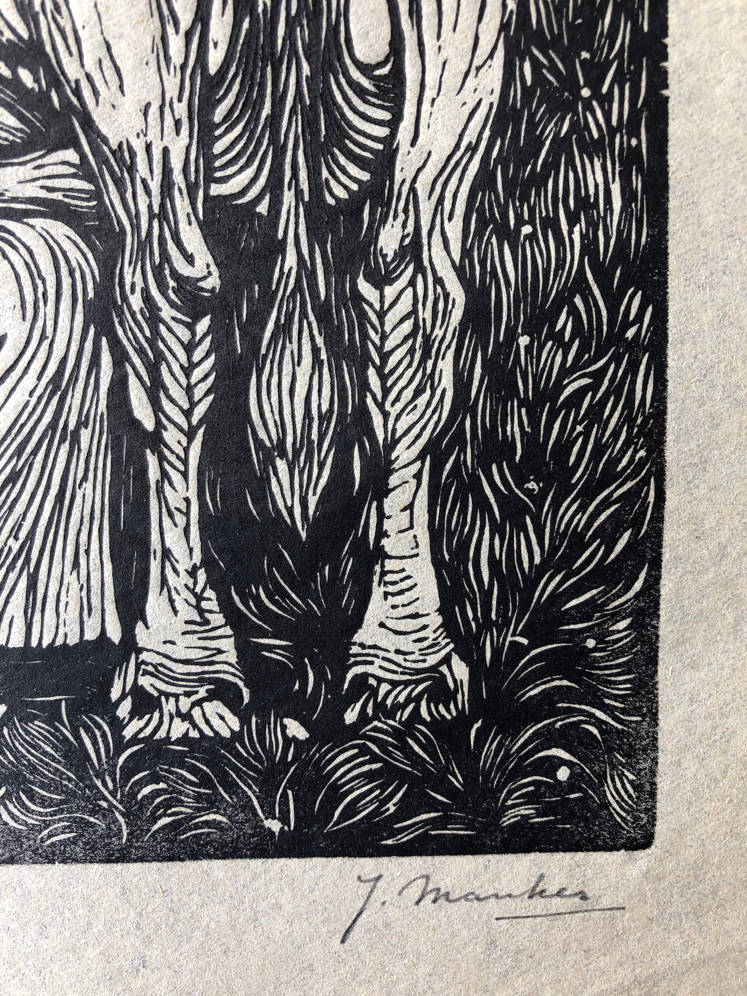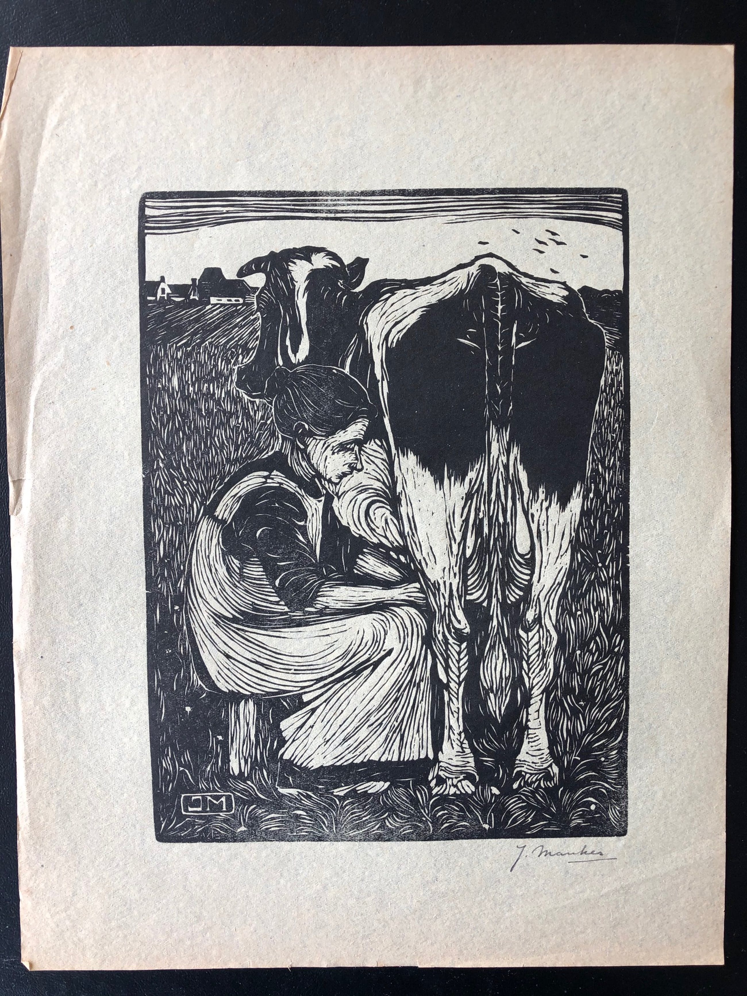 Een mooie houtsnede van Jan Mankes 1914 , gesigneerd met potlood rechtsonder en monogram in de plaat. Op dun licht bruin/geel papier.