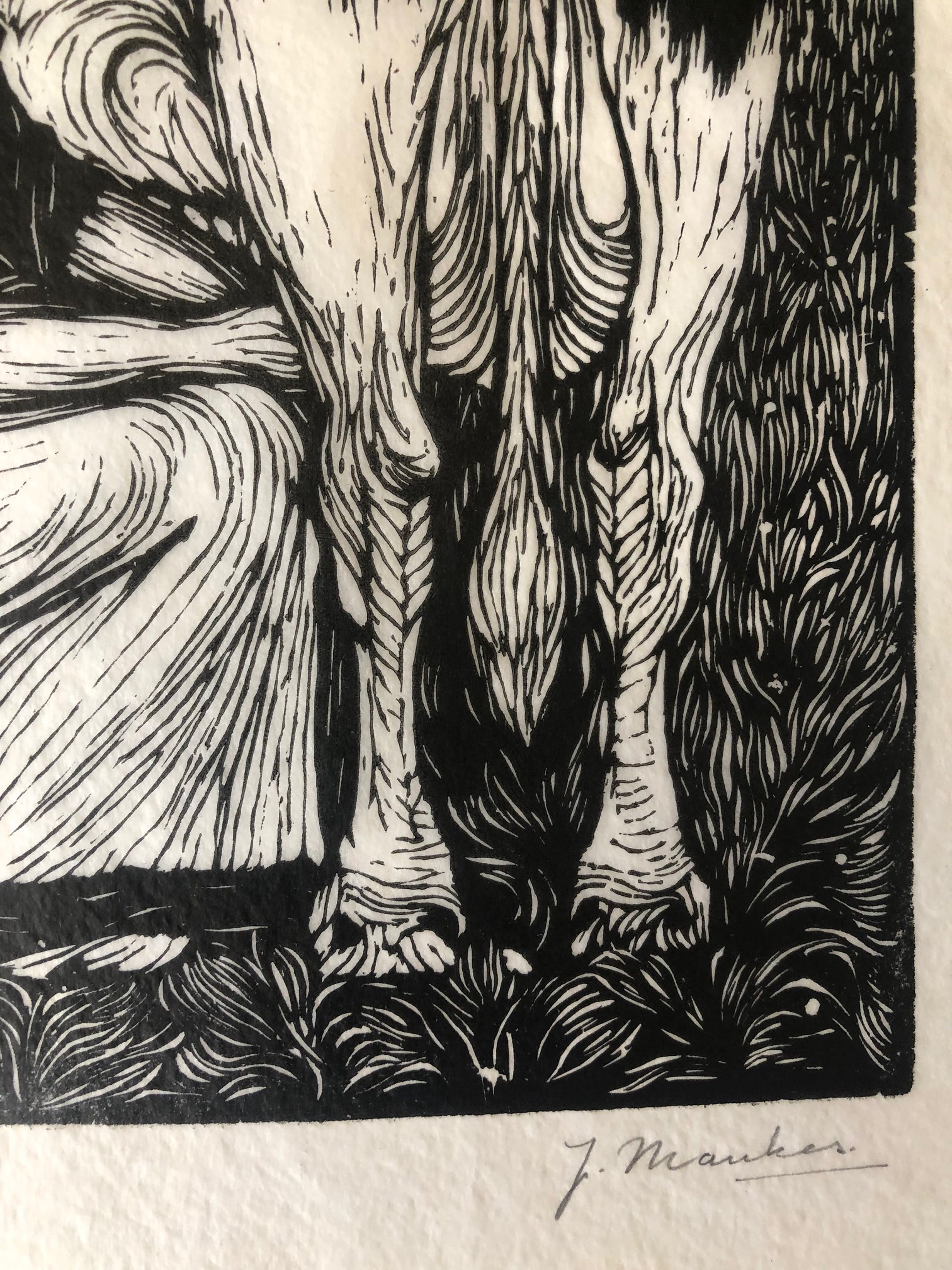 Een mooie houtsnede van Jan Mankes 1914 , gesigneerd met potlood rechtsonder en monogram in de plaat. Op dun papier.