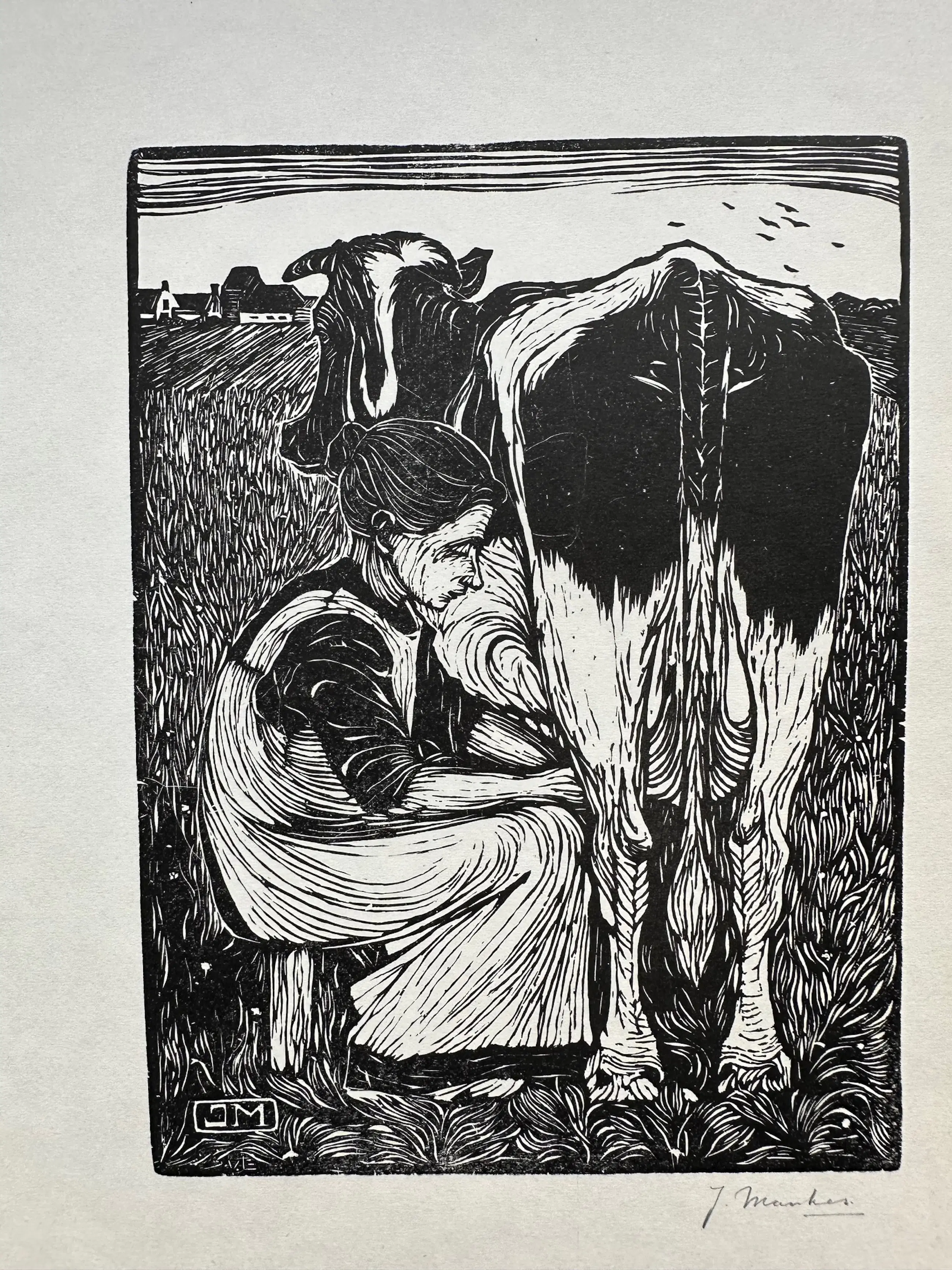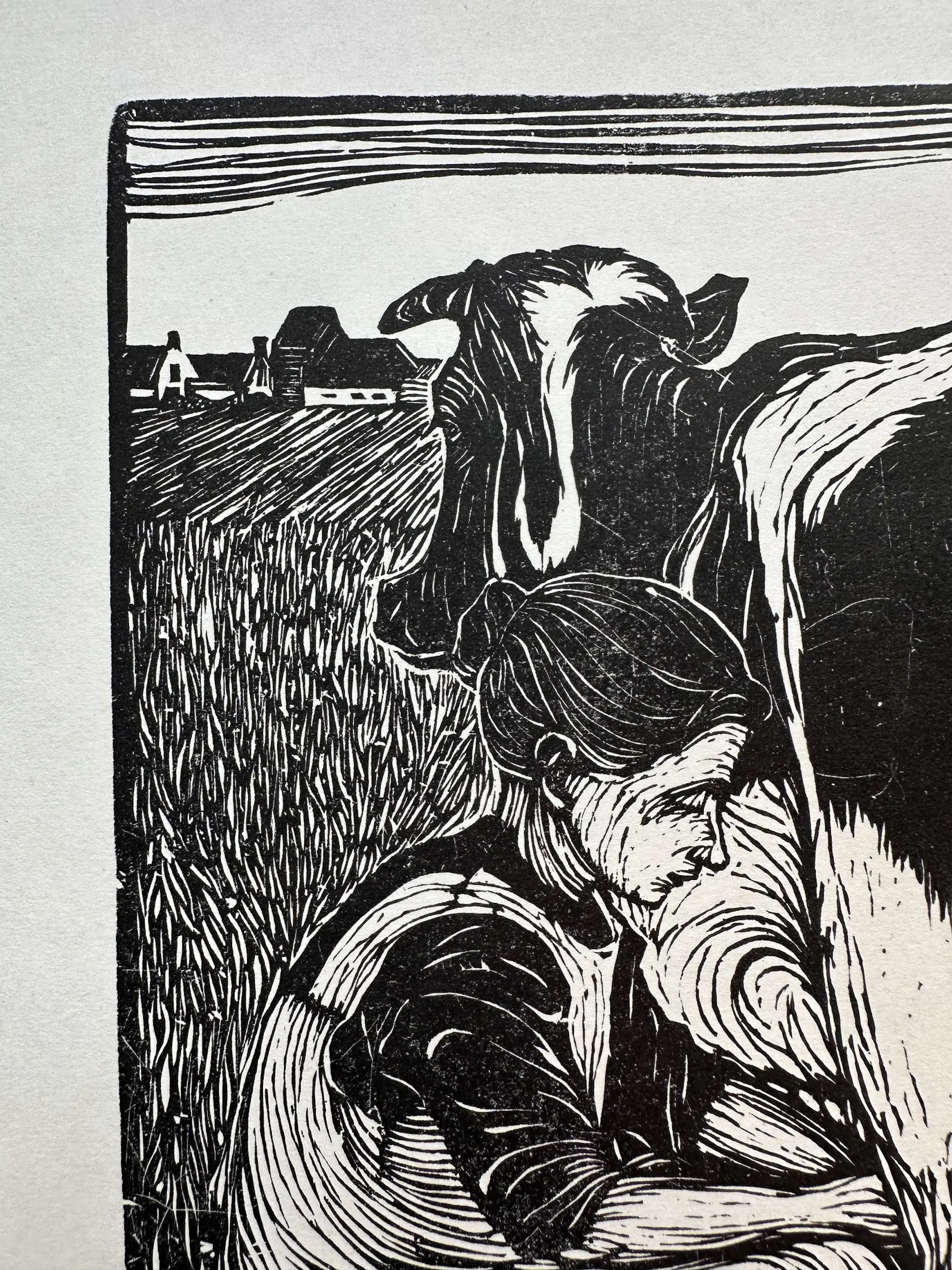 Jan Mankes - Houtsnede Koemelkster - Verkocht