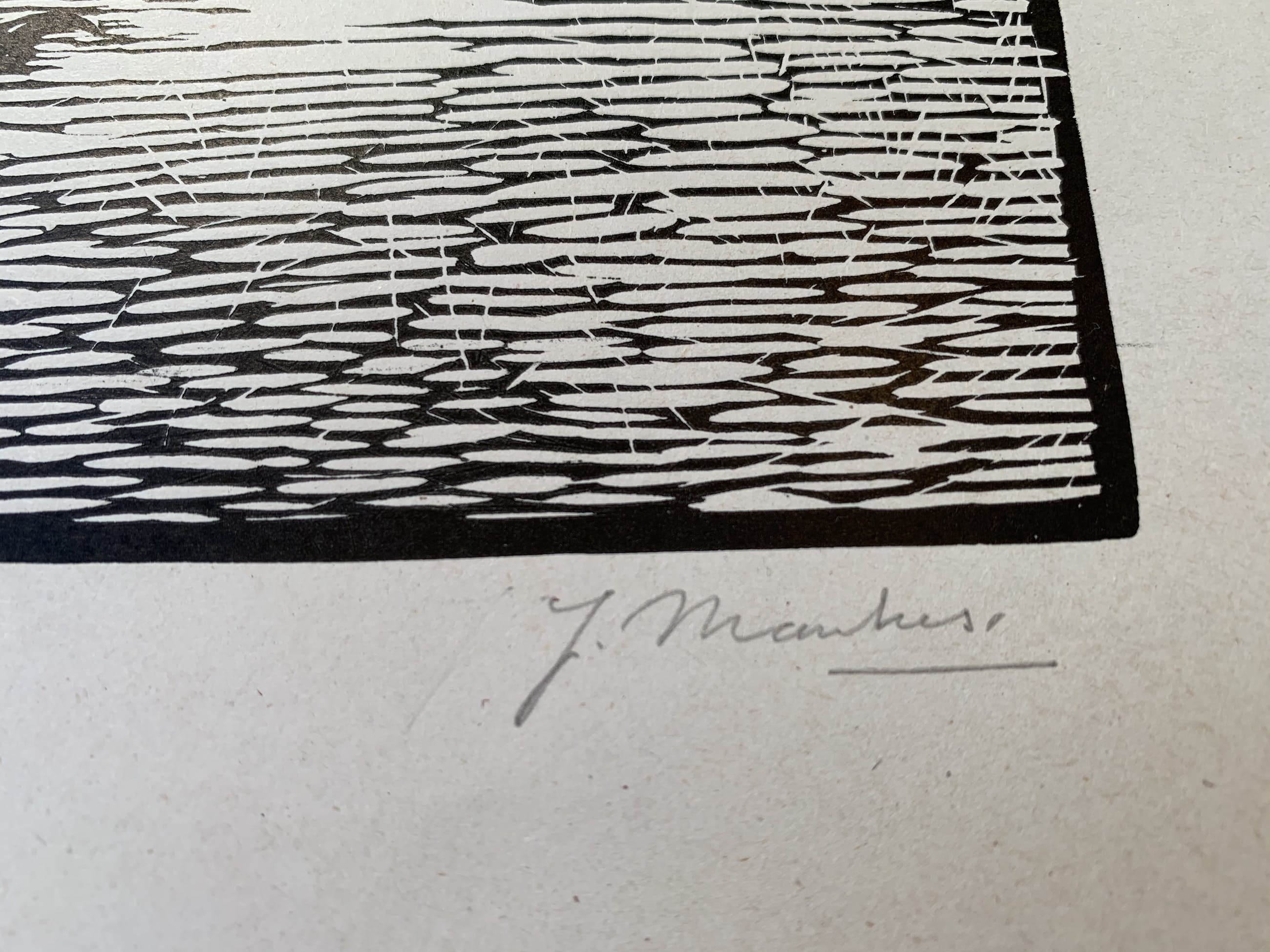 De houtsnede is met zwarte inkt gedrukt op stevig crème wit papier. De houtsnede is in zeer goede staat.