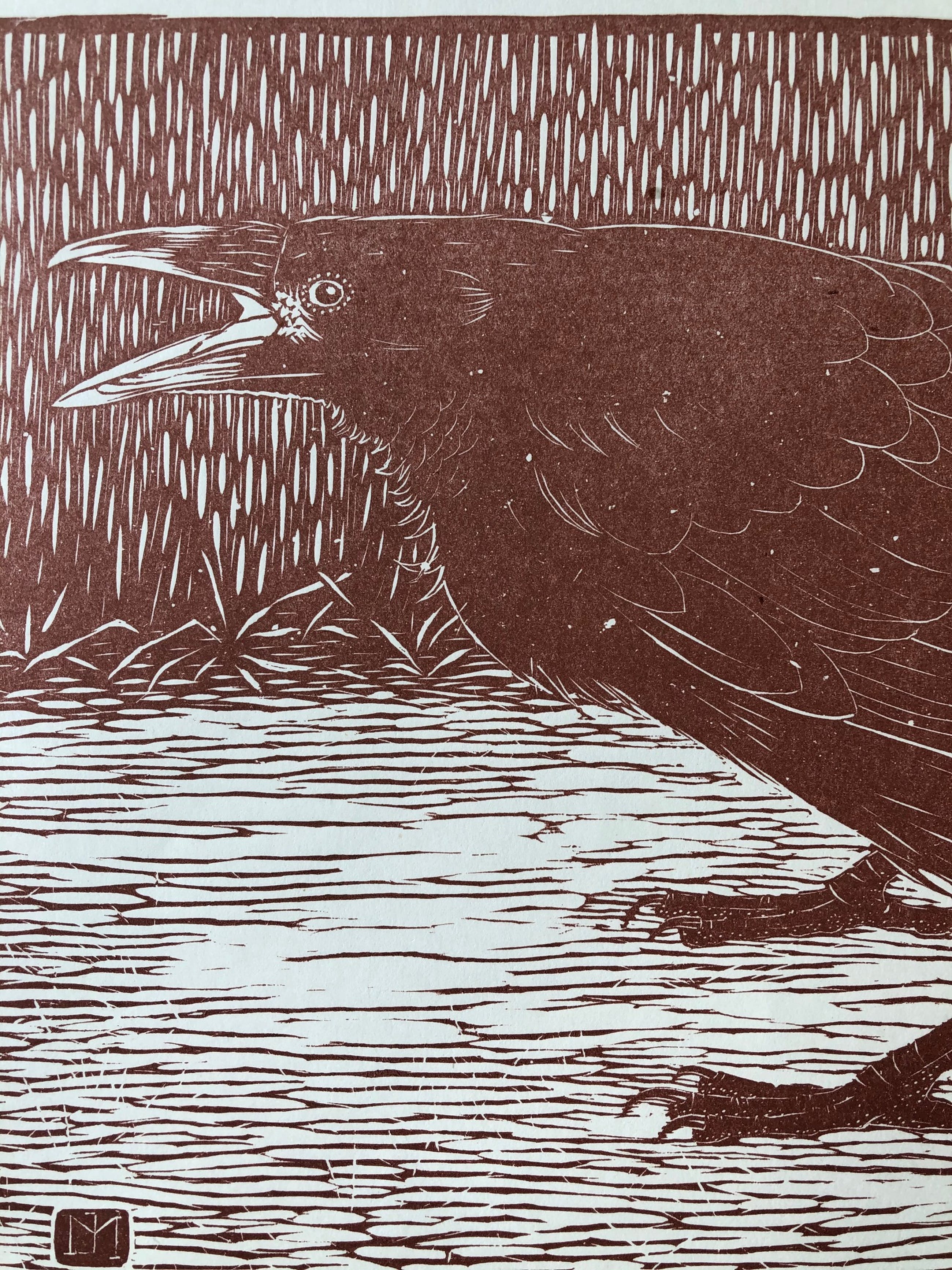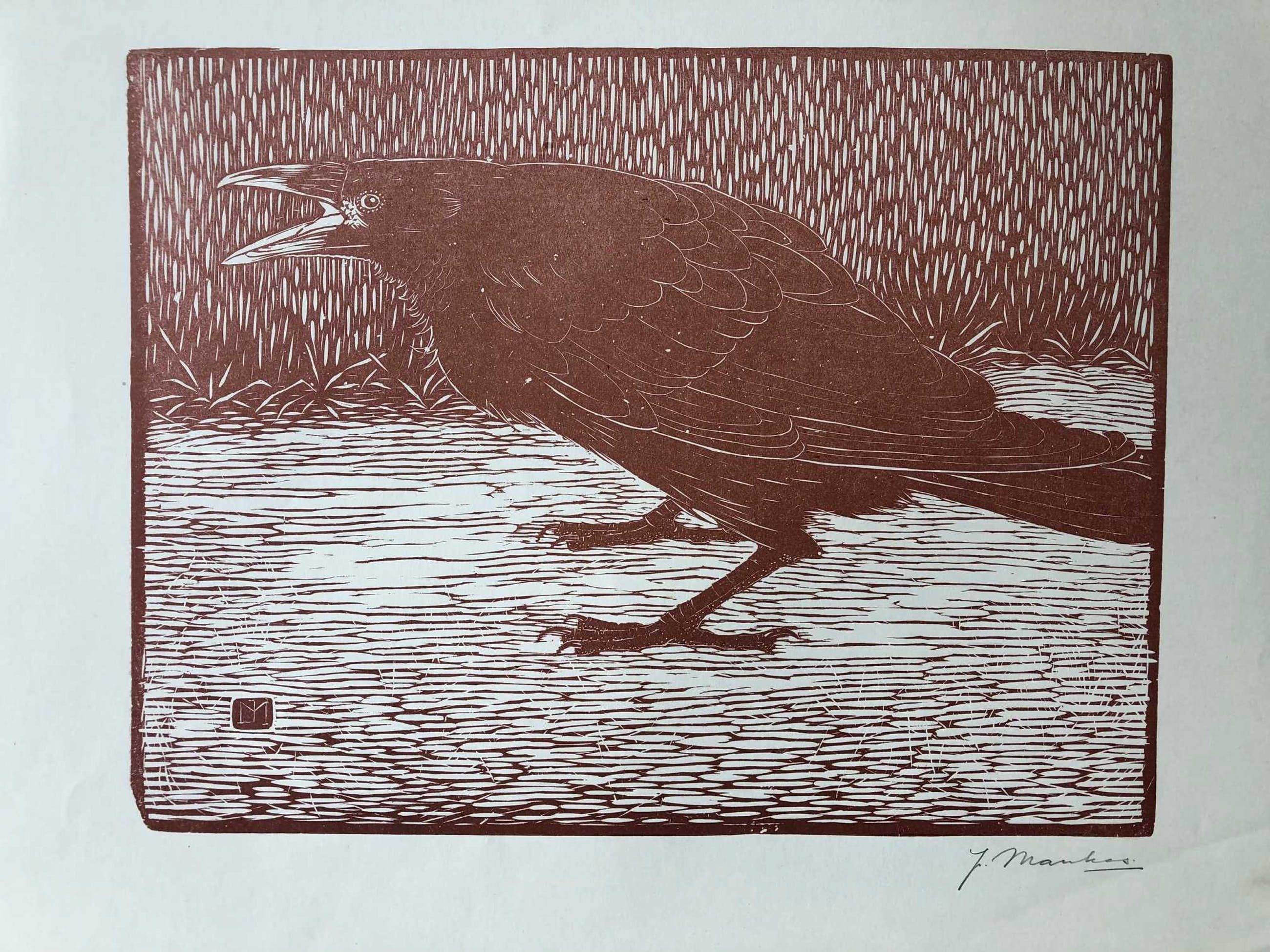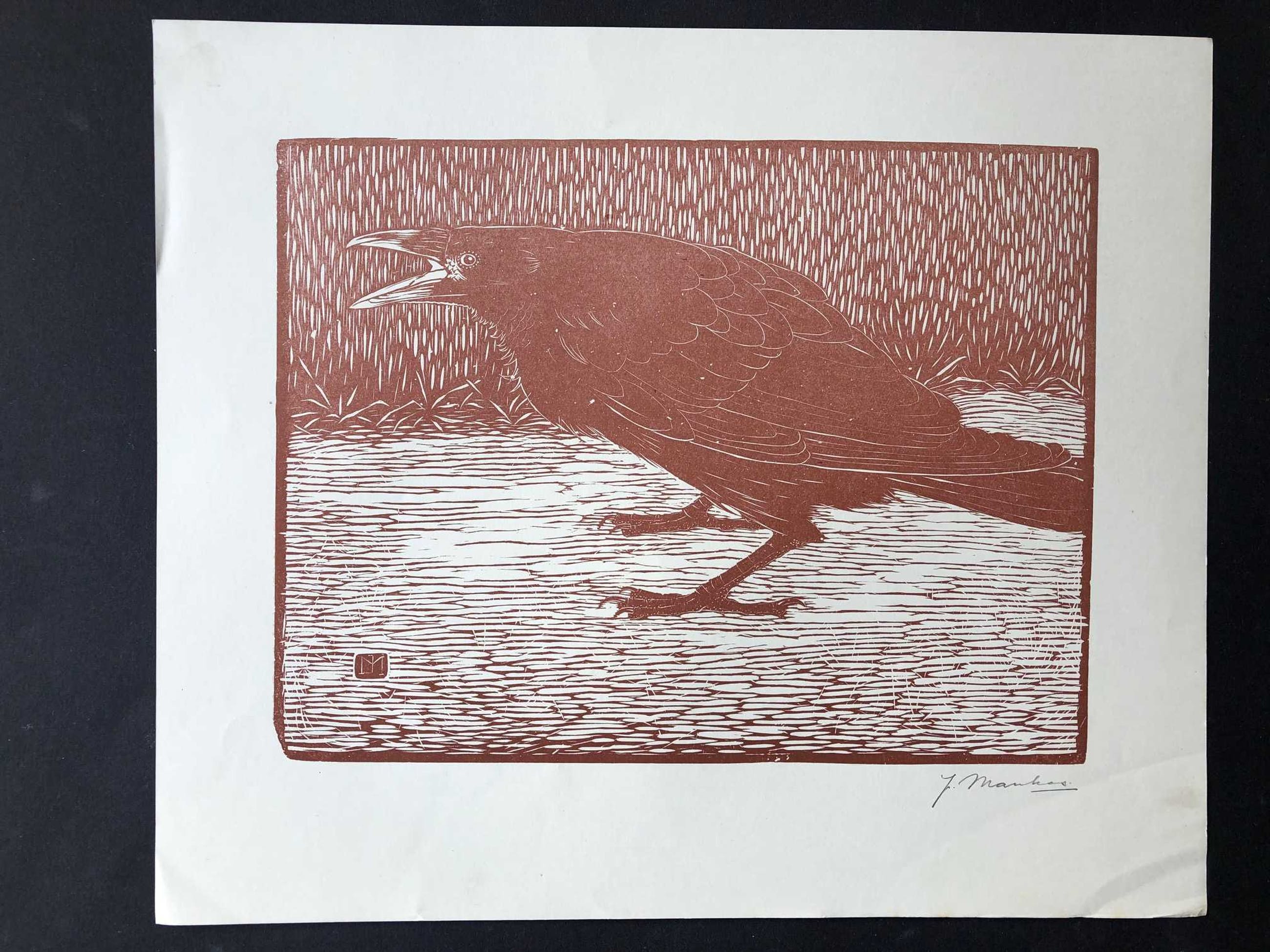 Afdruk van de kraai is bruin/zwart en in perfecte staat.