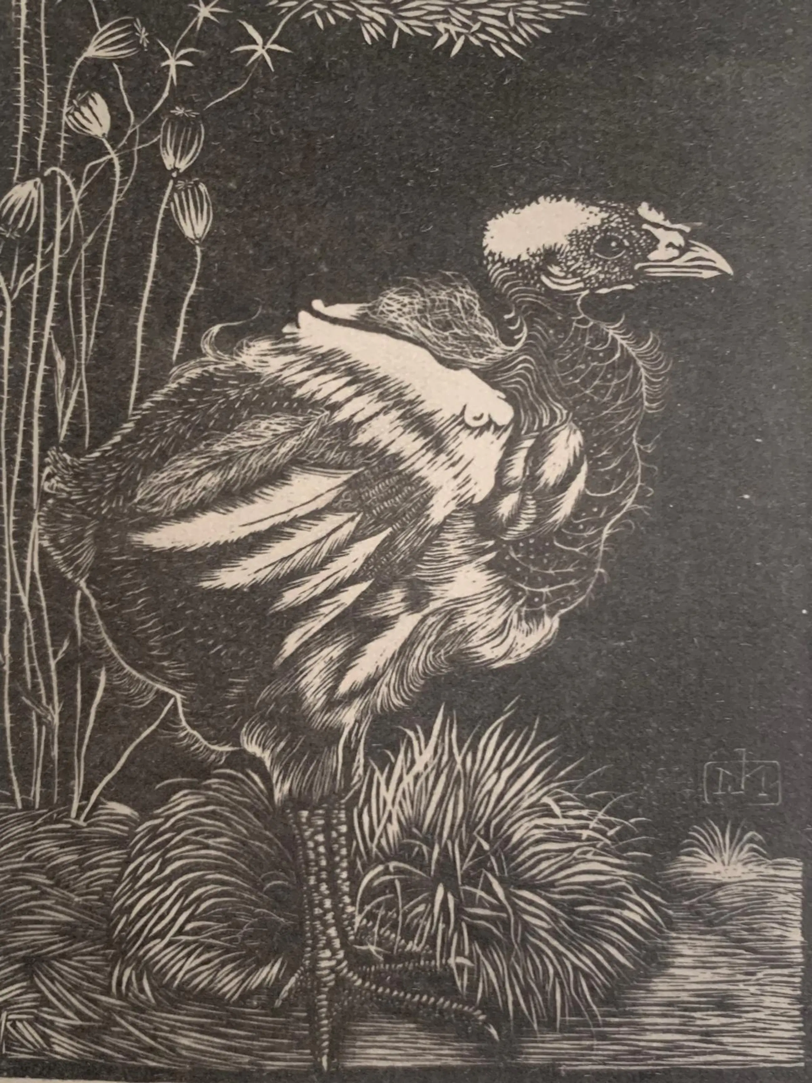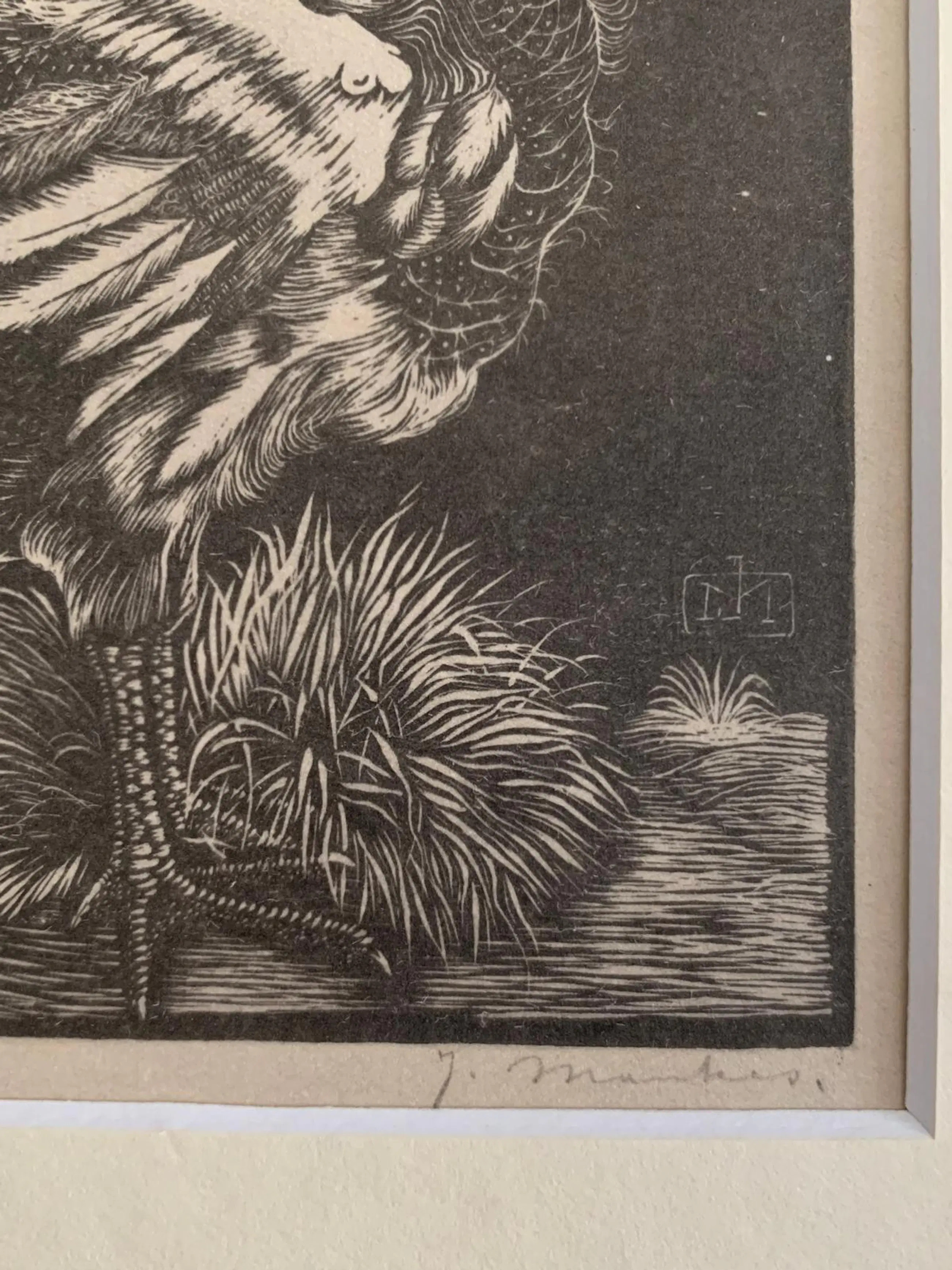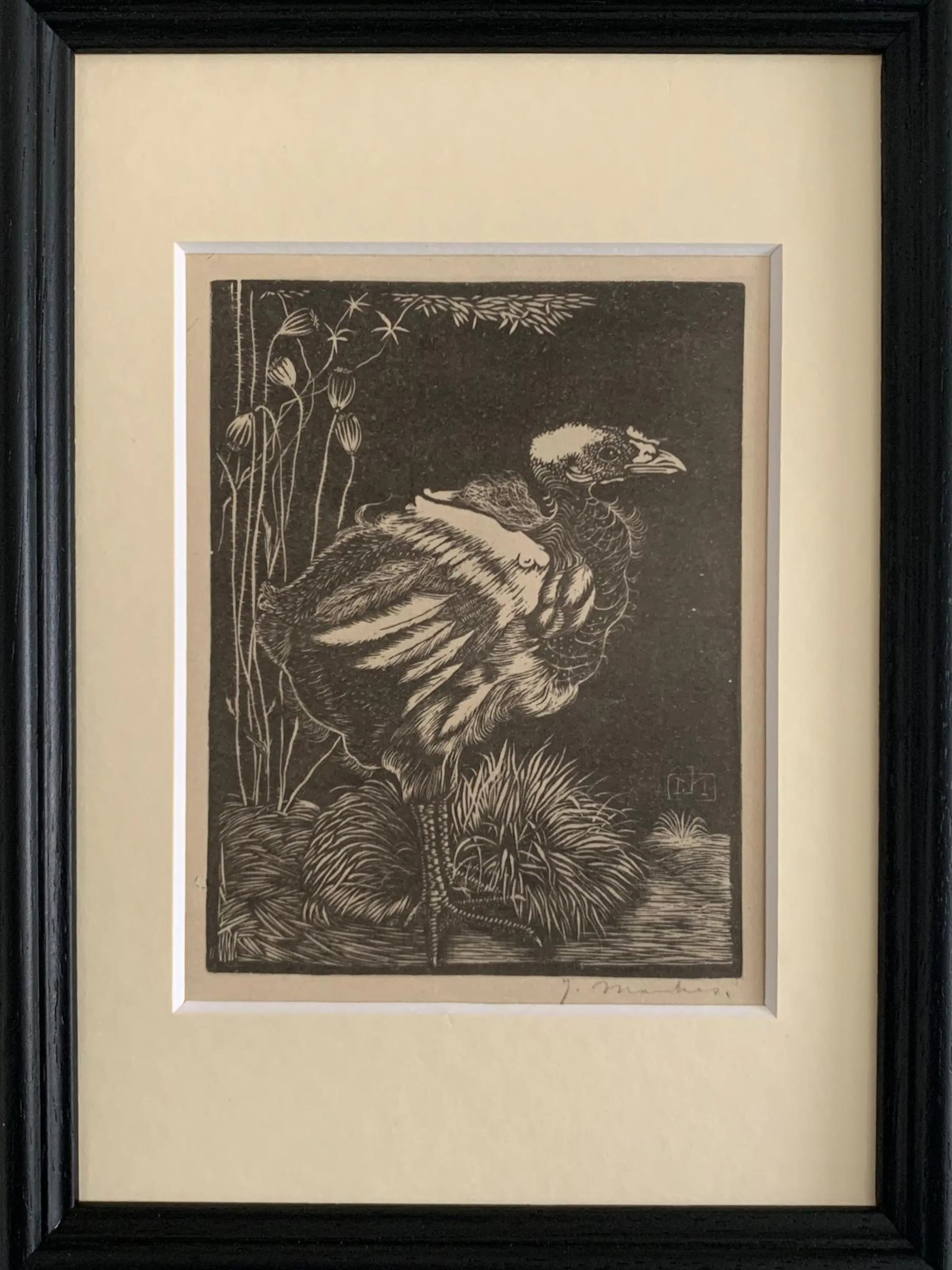 Originele heliogravure naar houtsnede van Jan Mankes: “Nestkuiken” uit 1917.
