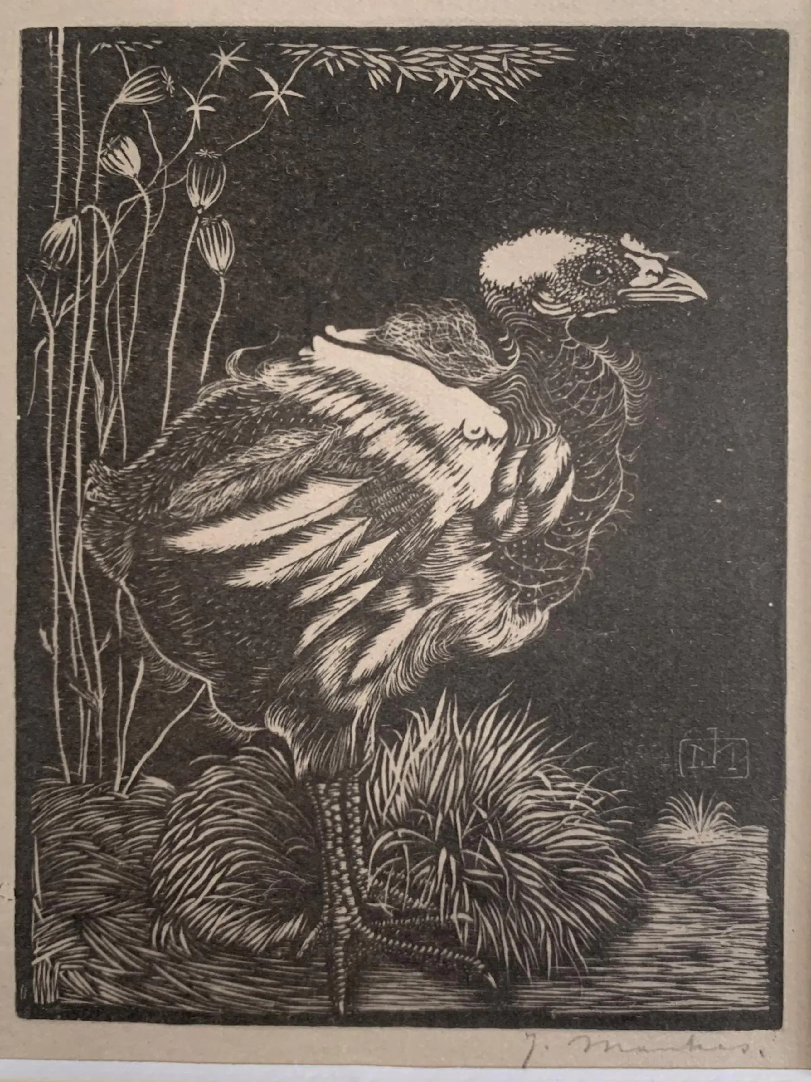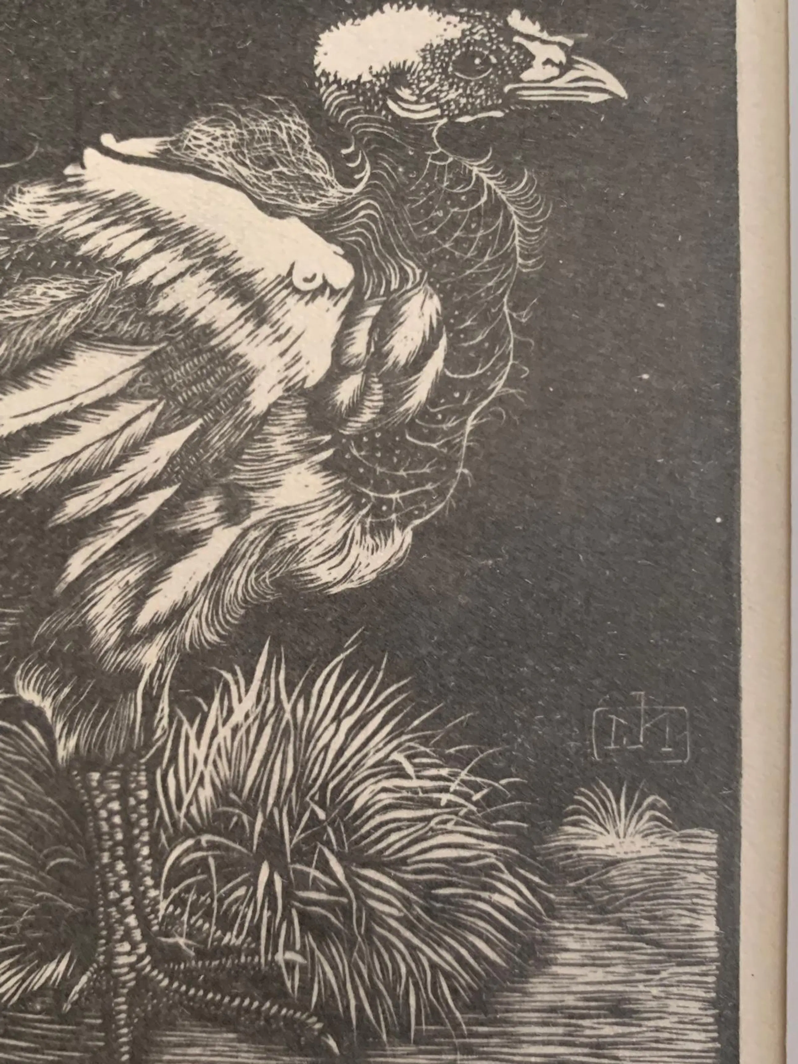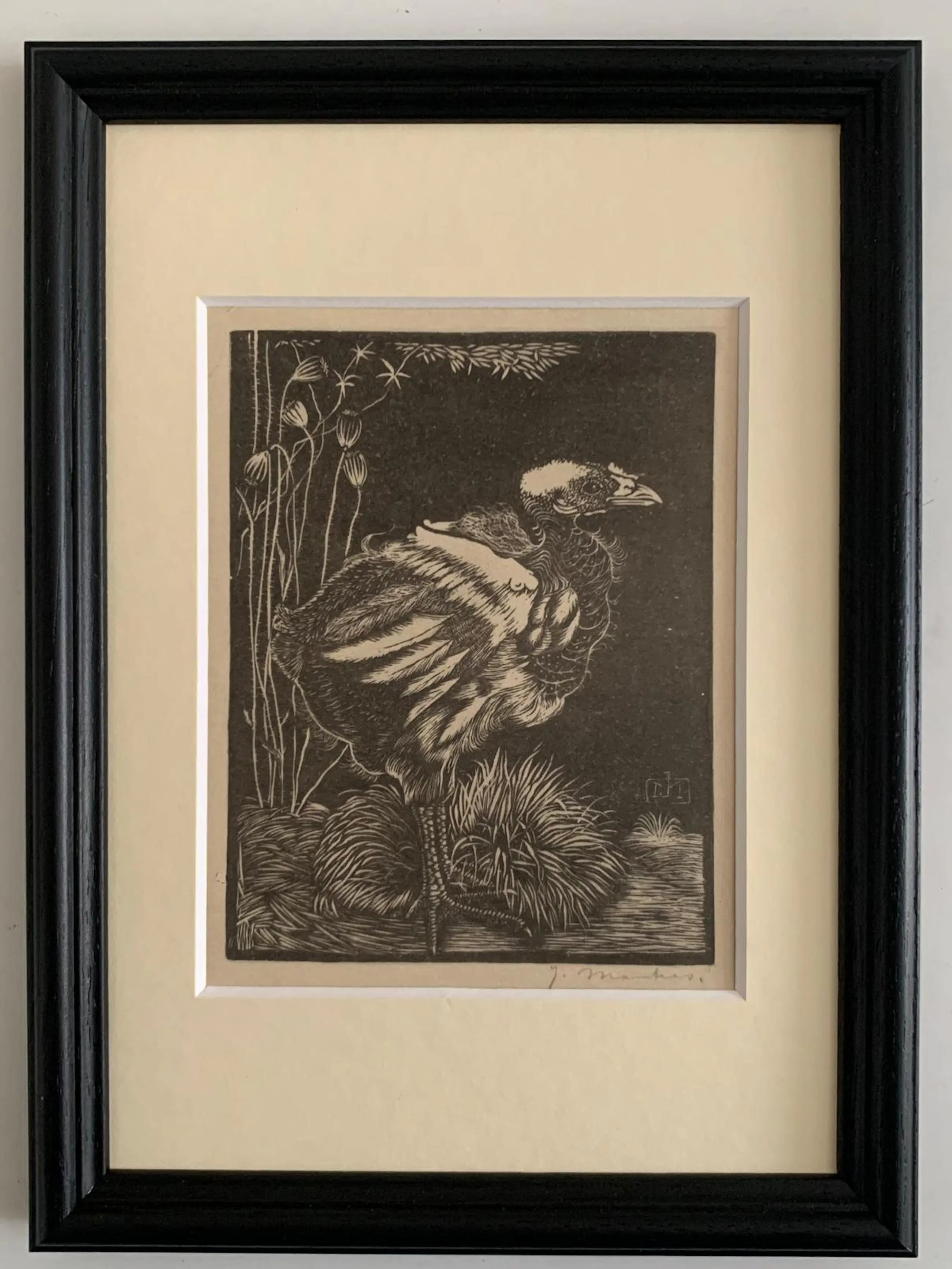 Originele heliogravure naar houtsnede van Jan Mankes: “Nestkuiken” uit 1917.