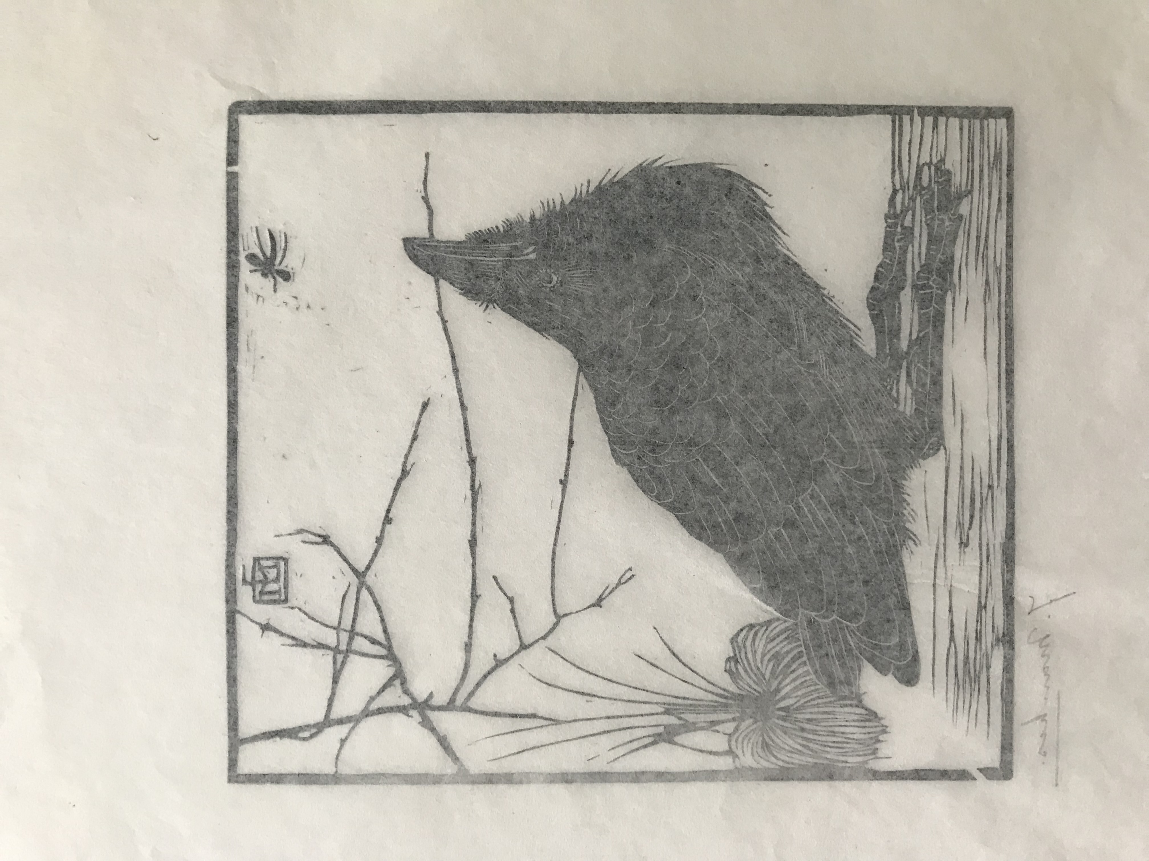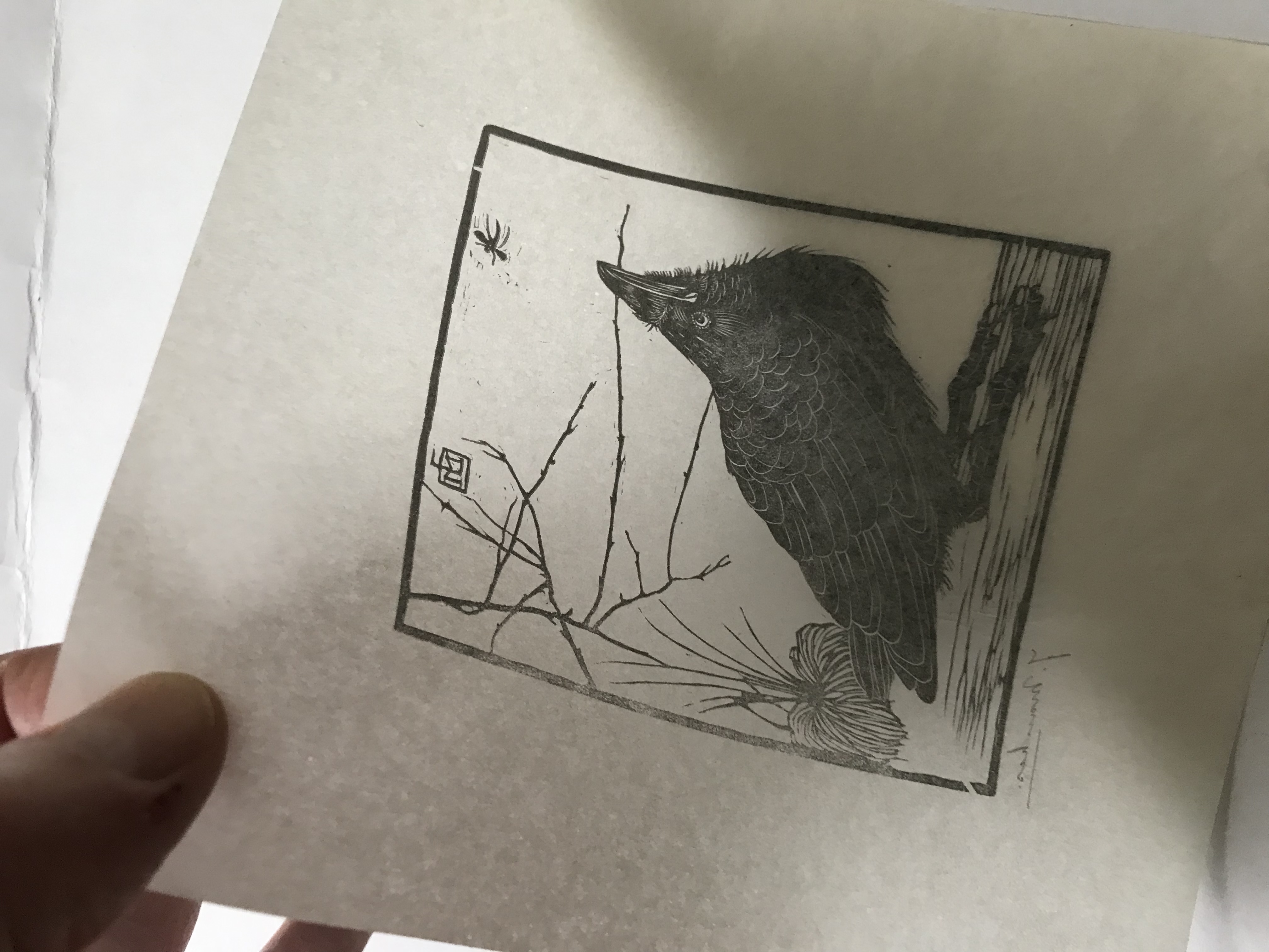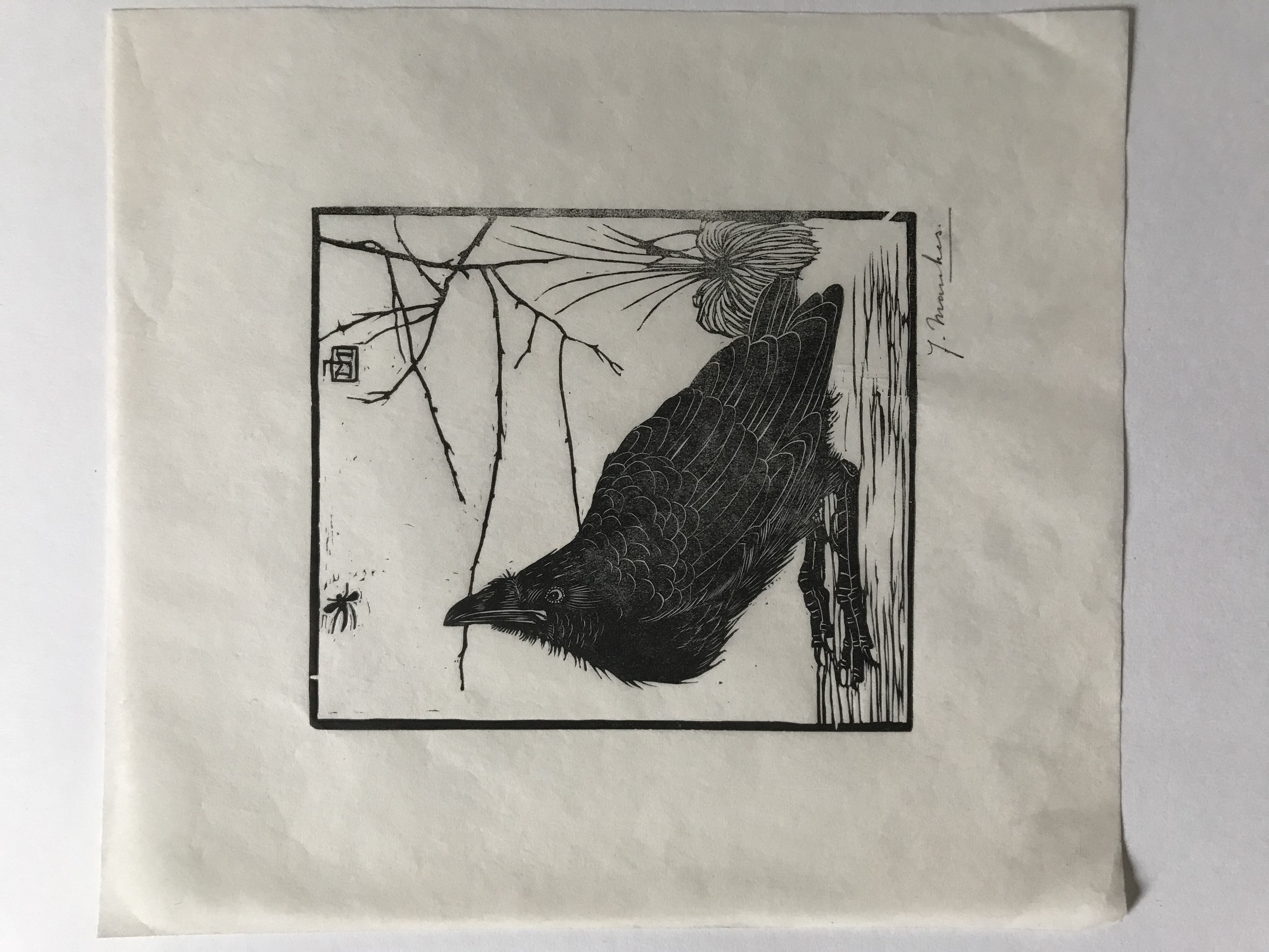 Op de achterzijde zie je de doordruk (verdikking) van het houtblok, dit garandeert de echtheid van het werk.