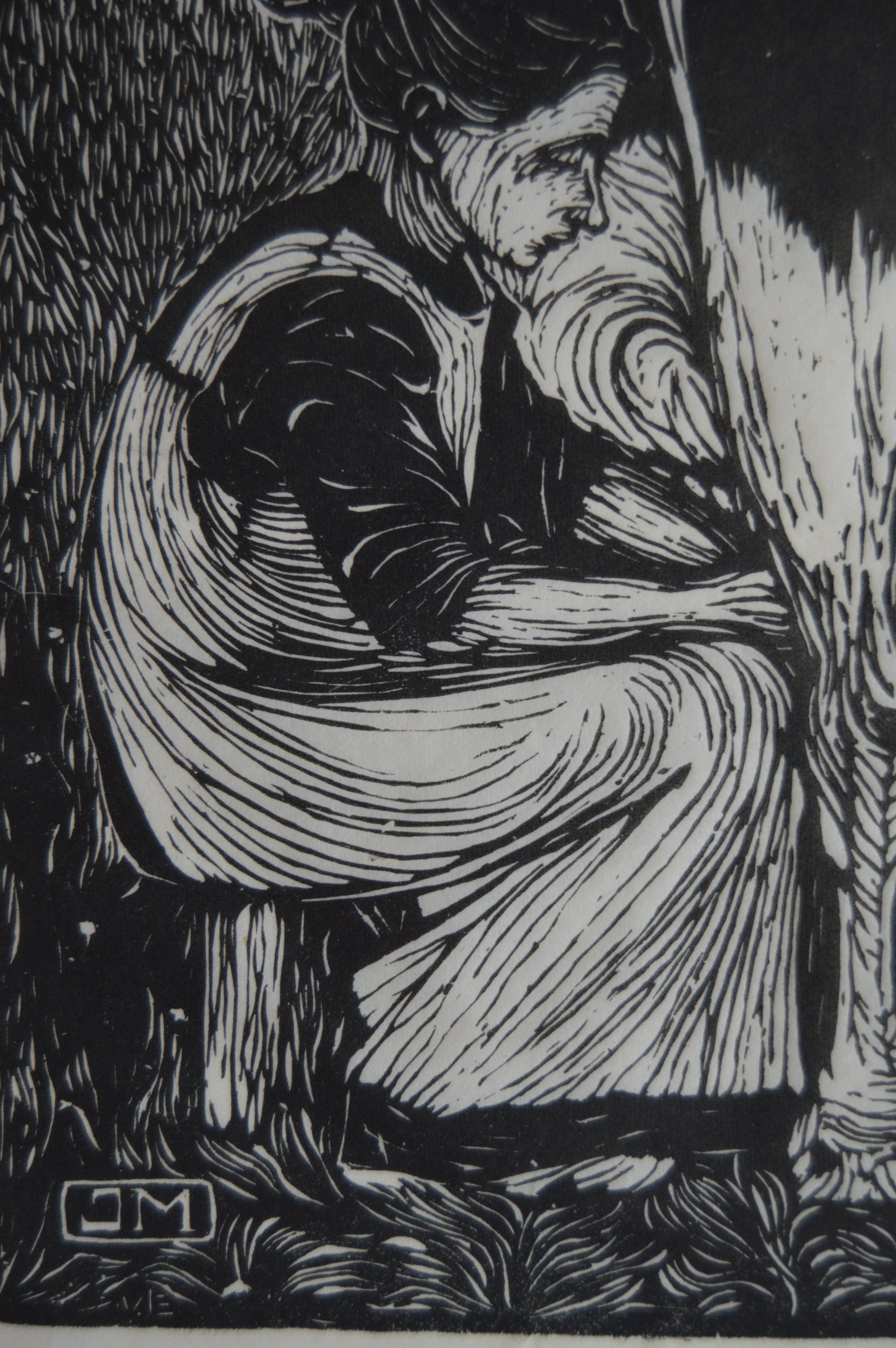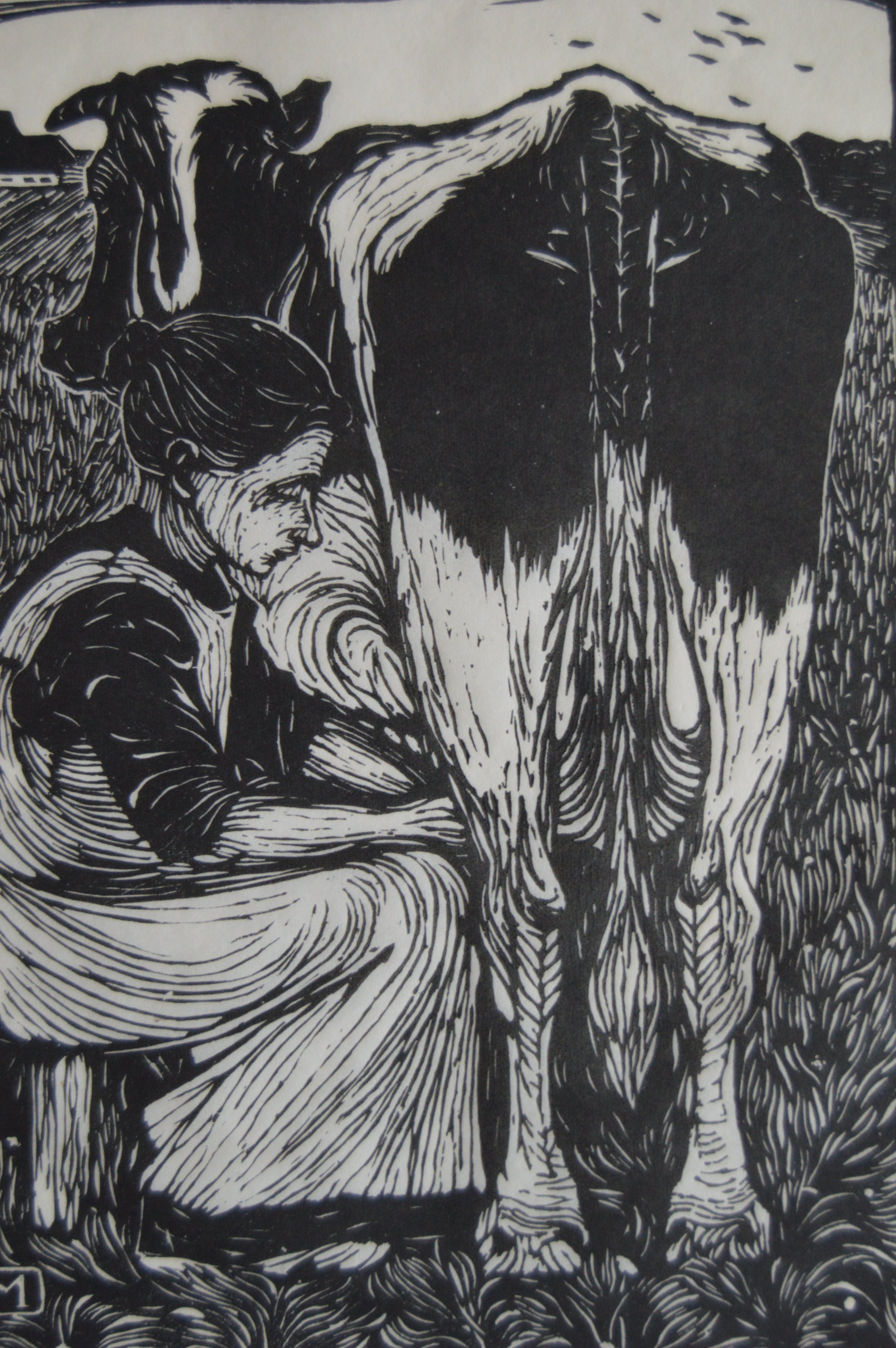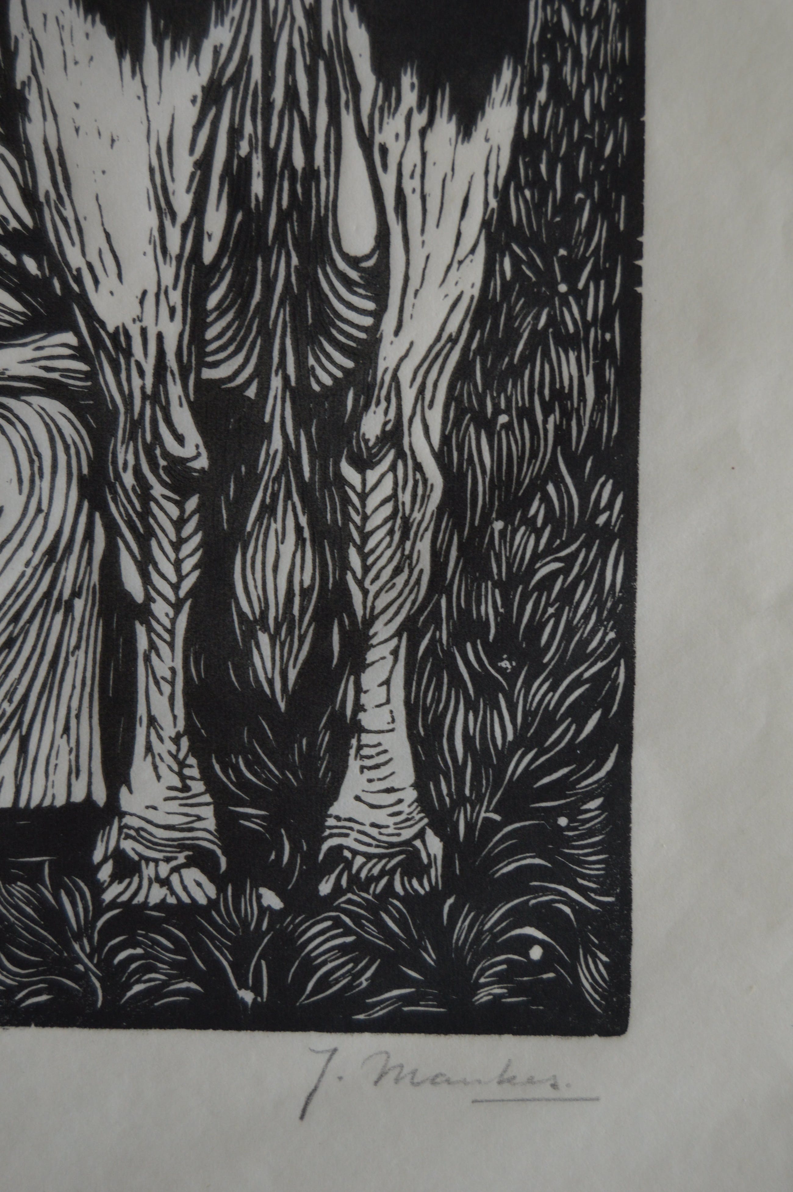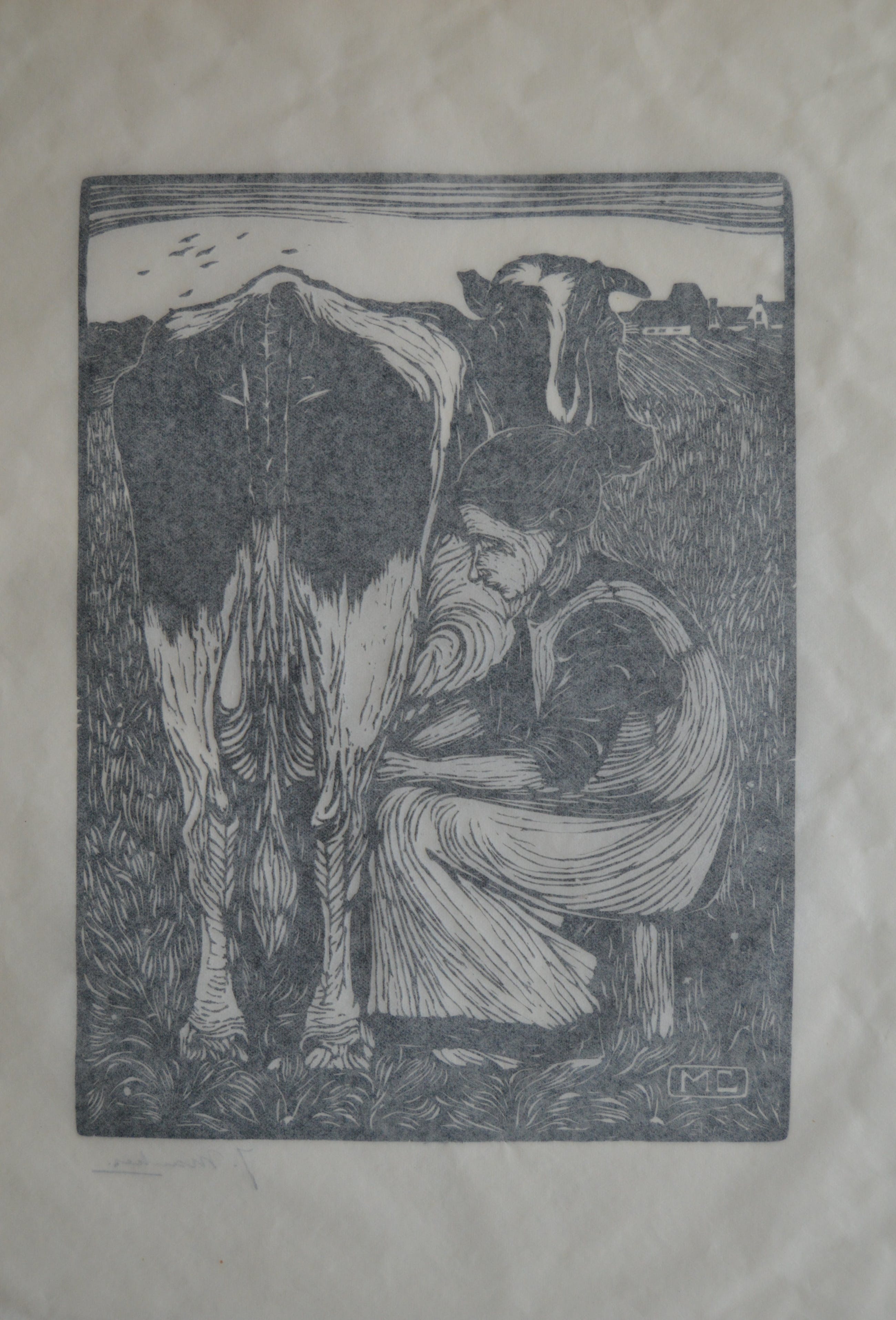 Een mooie houtsnede van Jan Mankes. Jaar; 1914. Gesigneerd met potlood rechtsonder en monogram in de plaat. Op Japans papier. Titel " Koemelkster ". Een zeer mooie afdruk . Afmeting totaal 22 * 27 cm