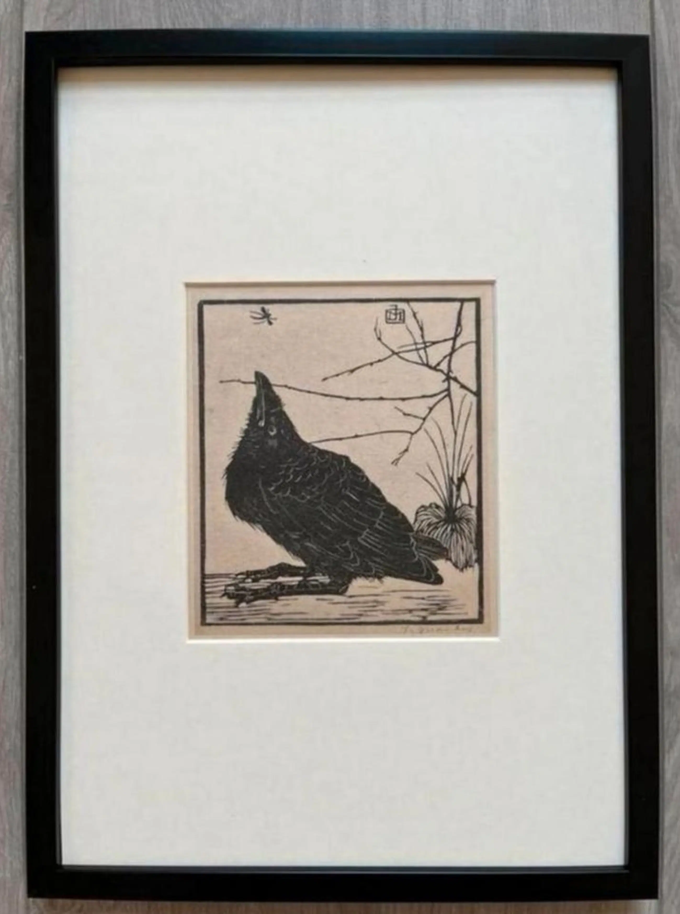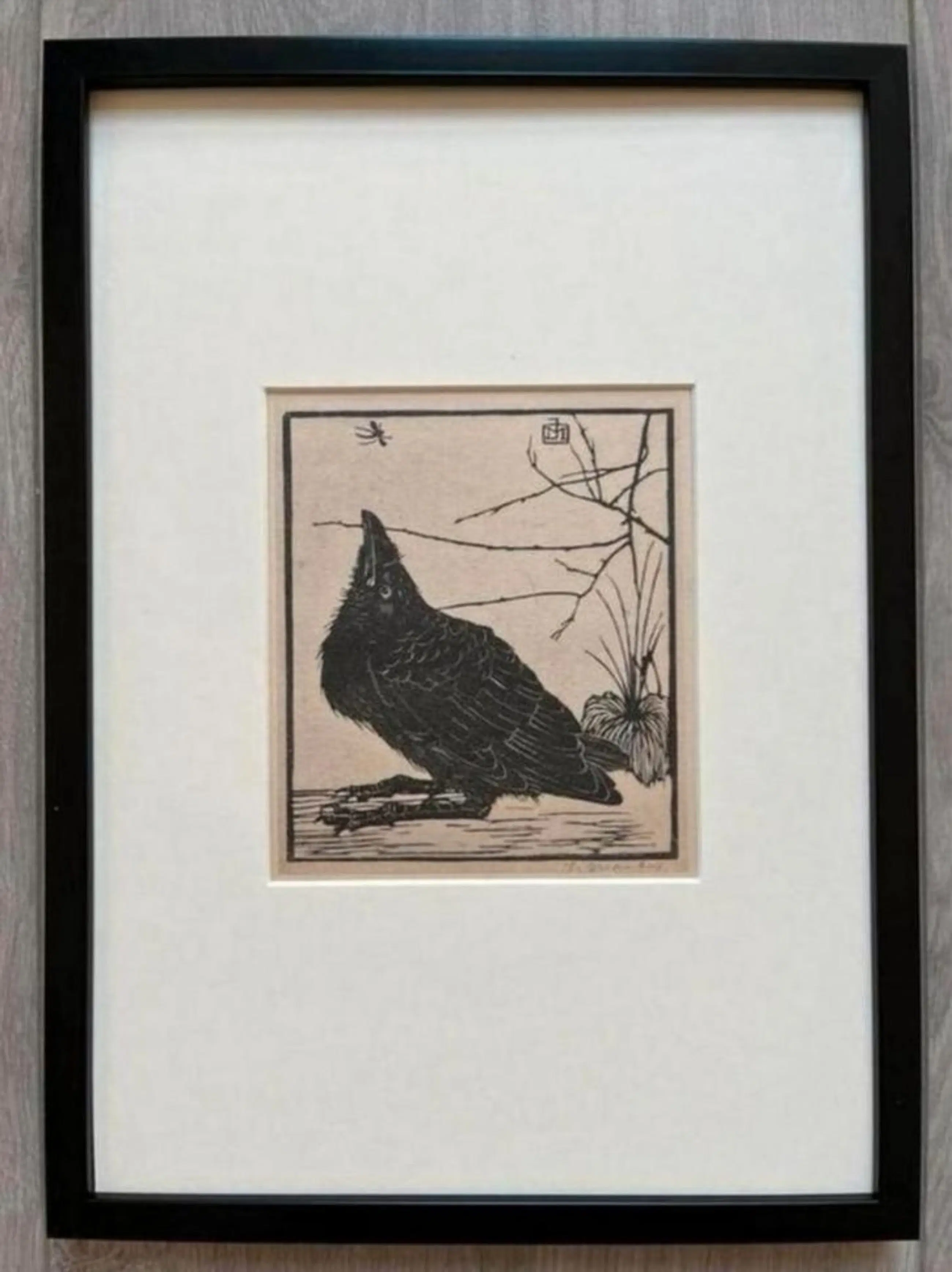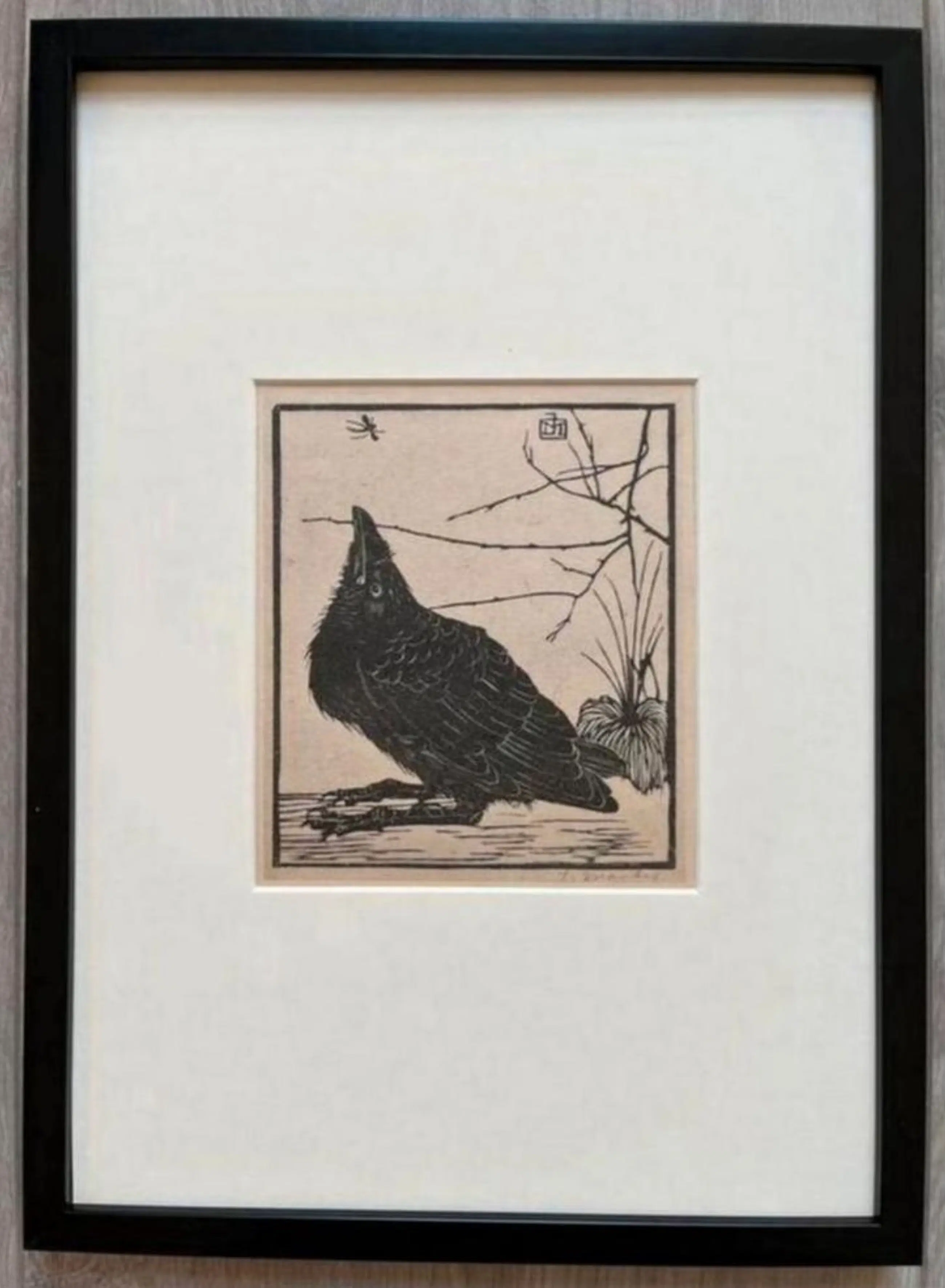 Originele Heliogravure Kleine Kraai omhoog Kijkend naar Mugje 1923