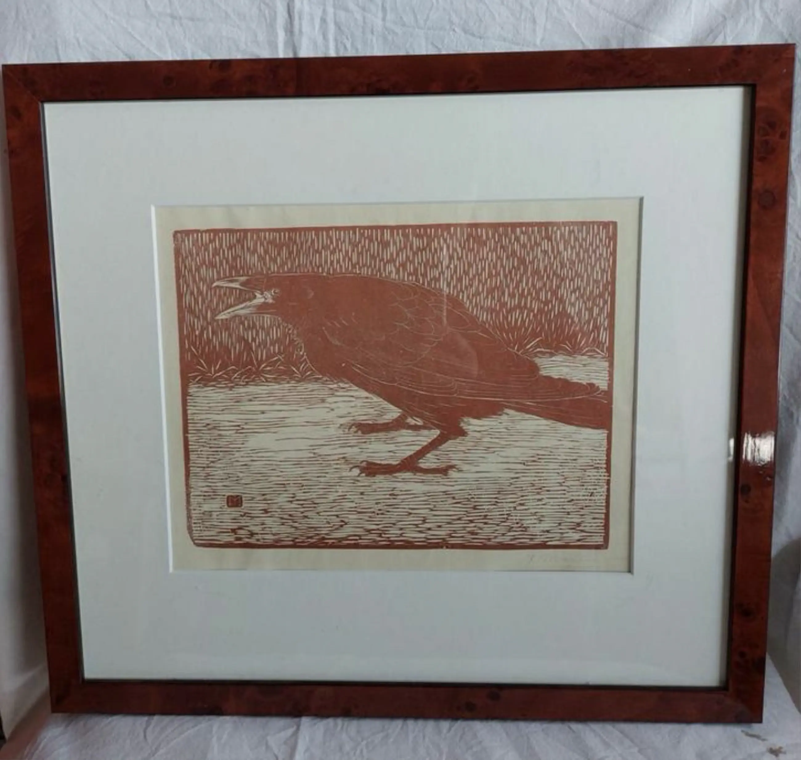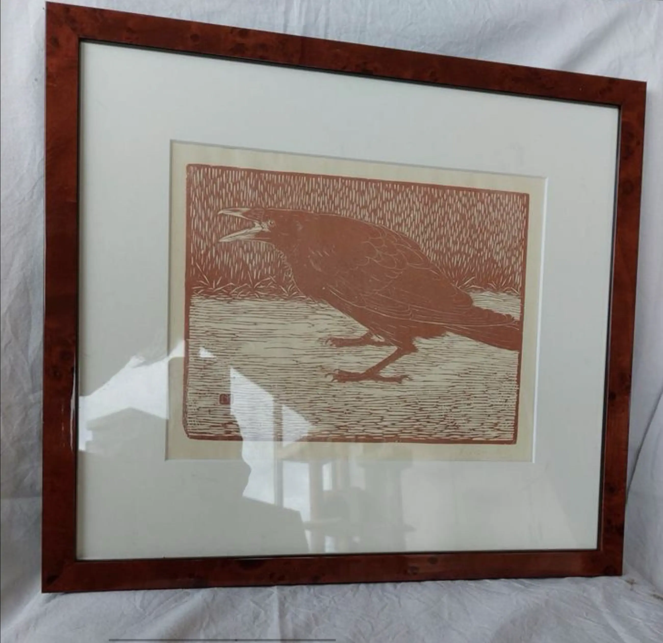 Originele houtsnede van de schreeuwende kraai, door Jan Mankes (1918)