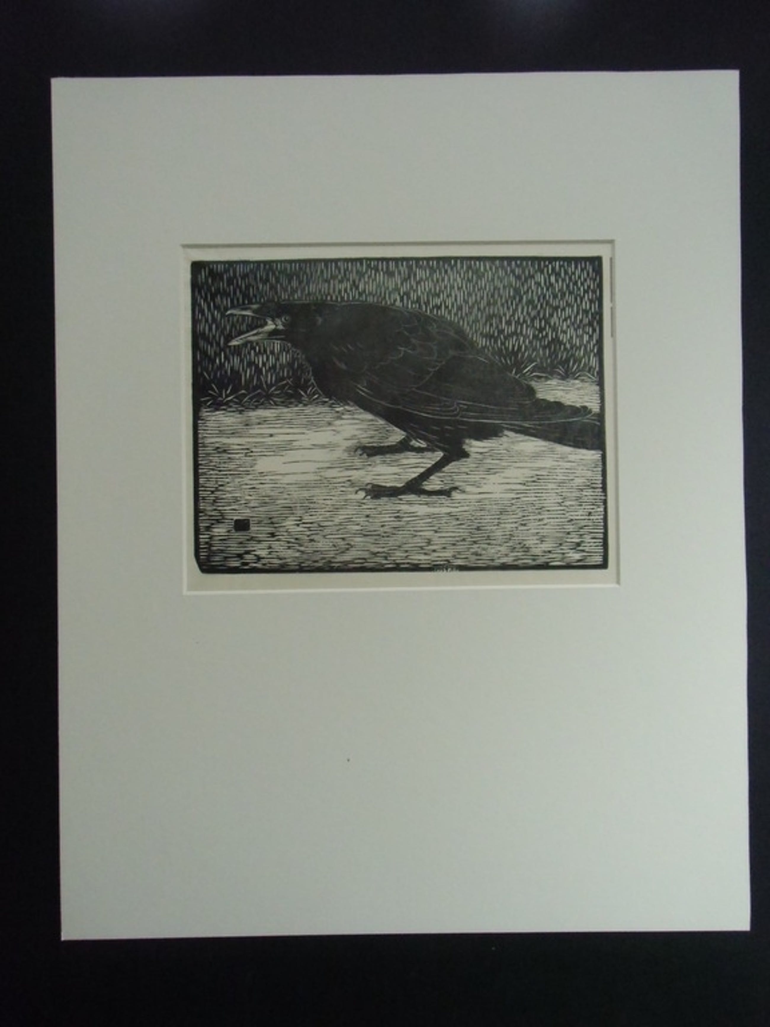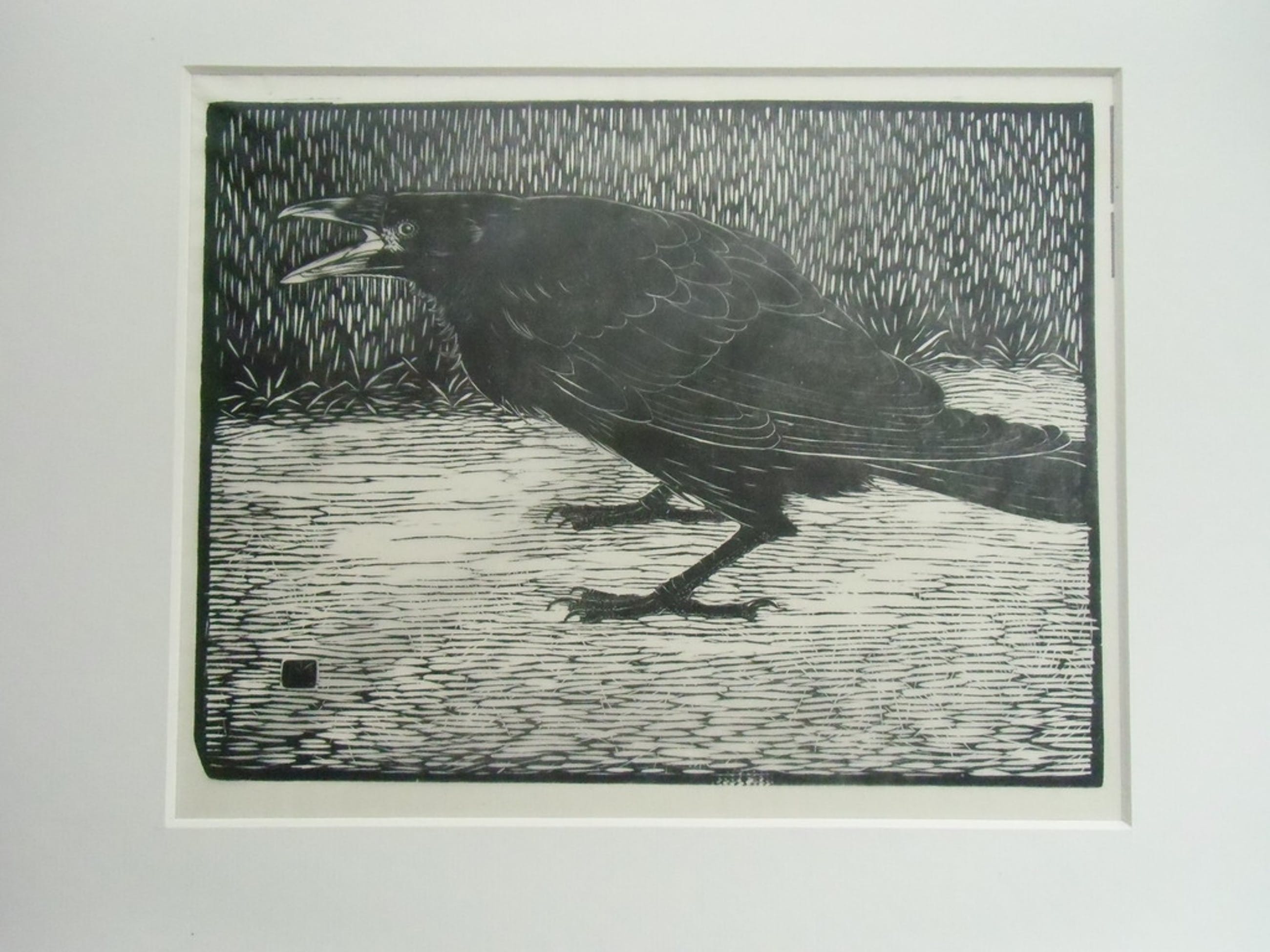 "Schreeuwende kraai " is een houtsnede in kops perenhout op dun Japans papier. Beeldafmeting 18.5 x 24.2 cm. Gemonogrammeerd in het hout. Gepubliceerd in het houtsnijdersnummer van Wendingen (1919). Onberispelijke staat. Los opgenomen in passepartout met achtervel. Authenticiteit volledig gewaarborgd.