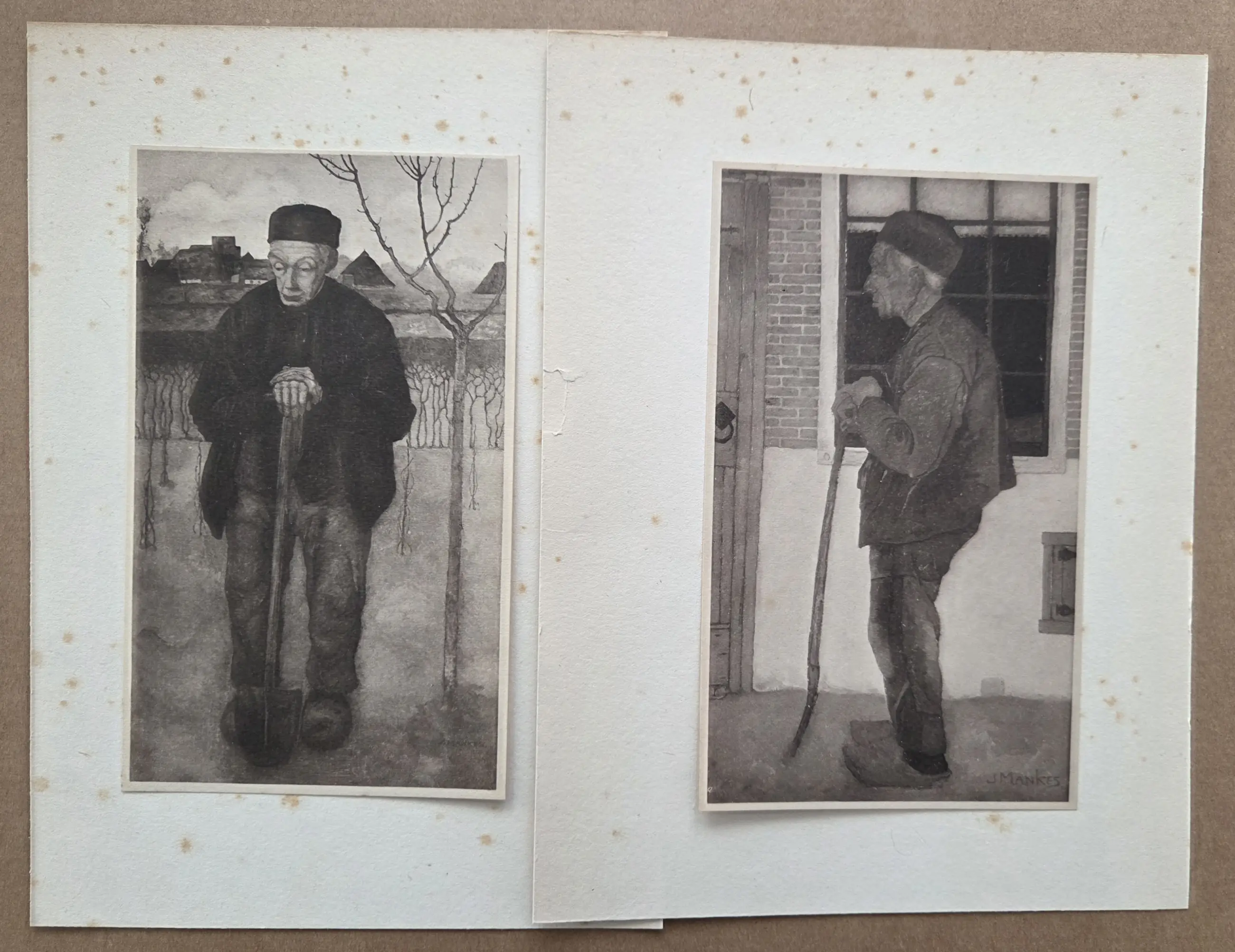 Twee mooie heliogravures. Monogram in druk. Beiden ca 12x20cm Gravures in goede staat. Zie foto's voor eigen oordeel kwaliteit.
