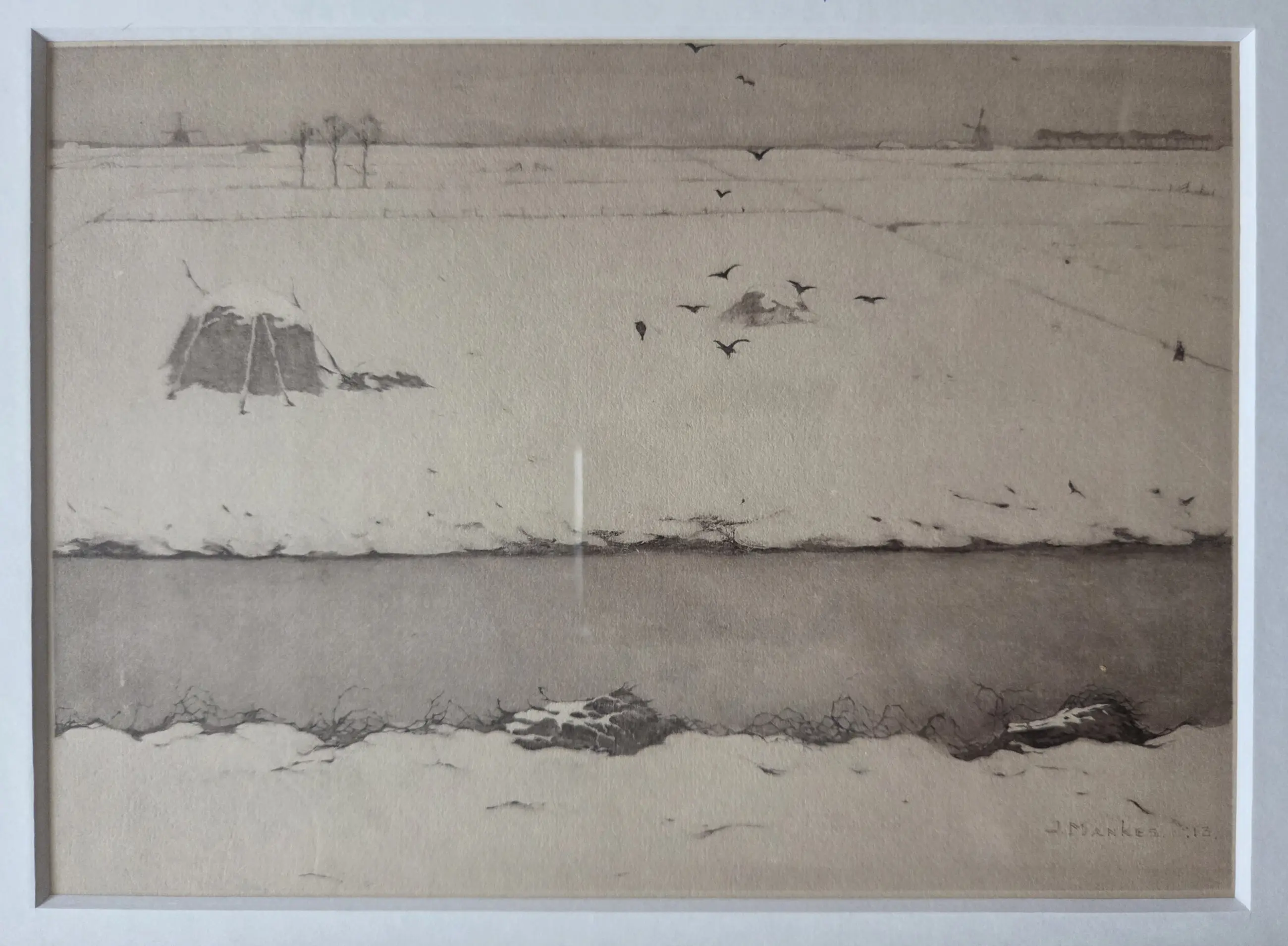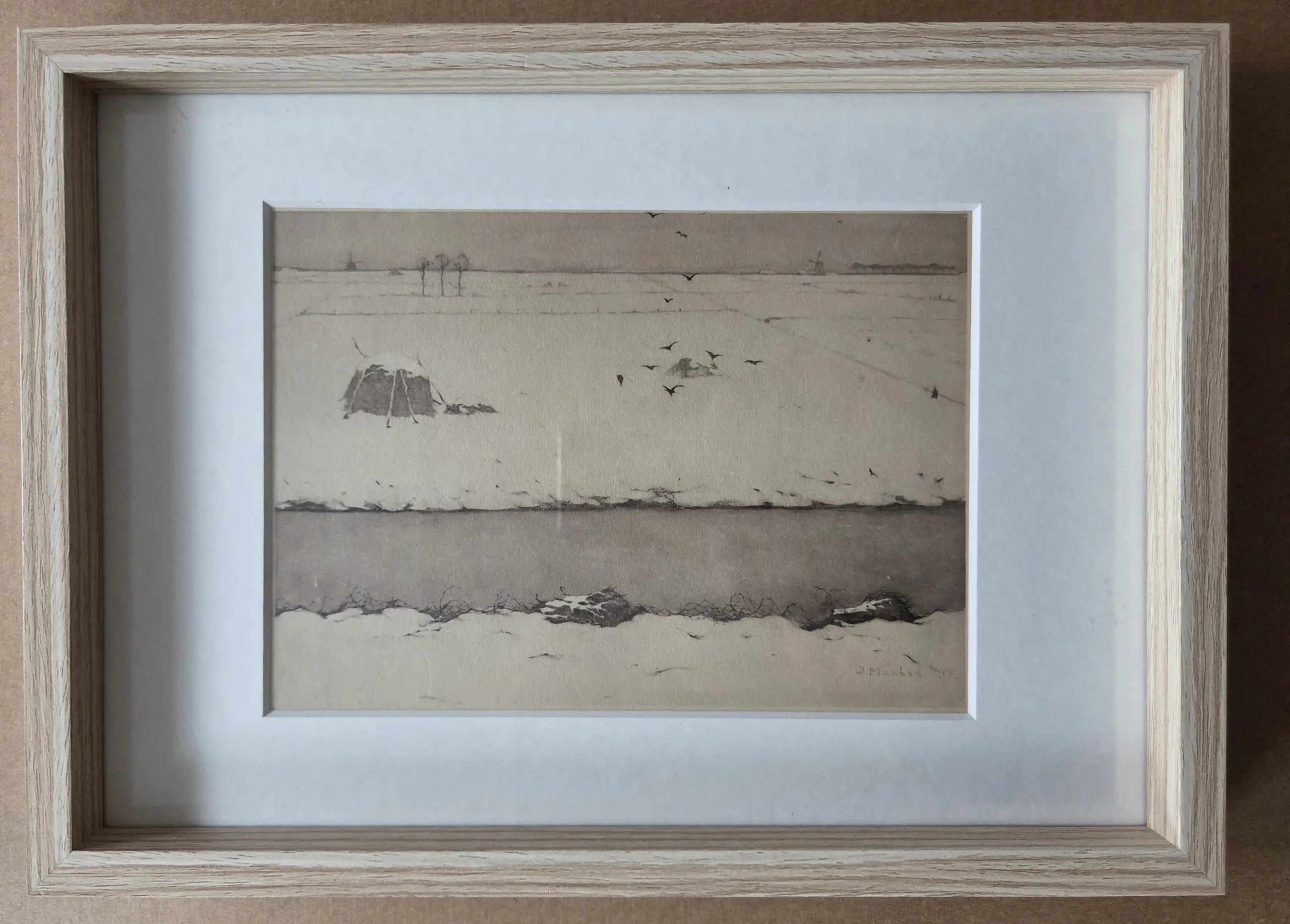 Jan Mankes - Winterlandschap. Heliogravure. Ingelijst.