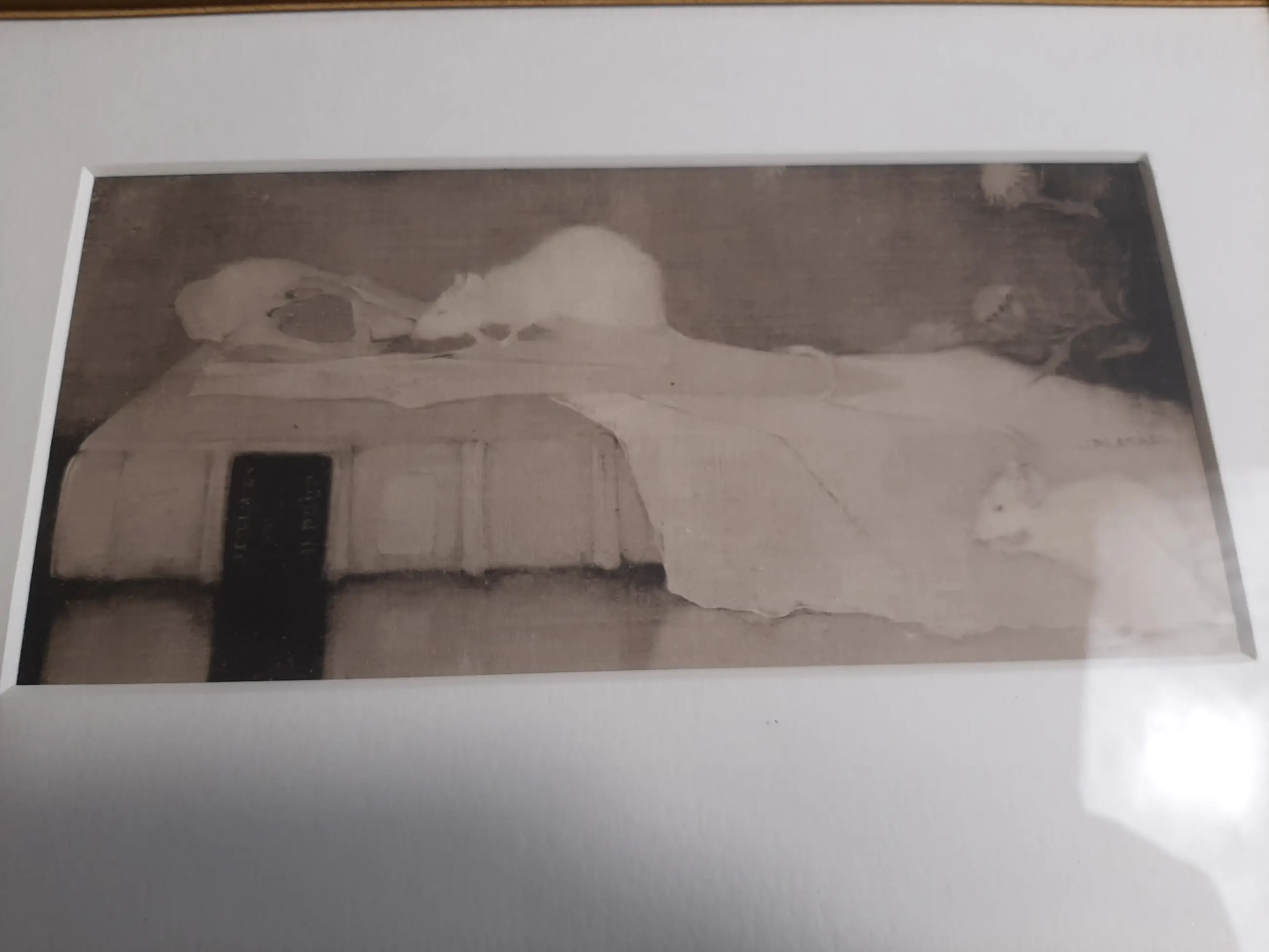 Jan Mankes - Heliogravure " Witte muizen op perkamenten boek " - Verkocht