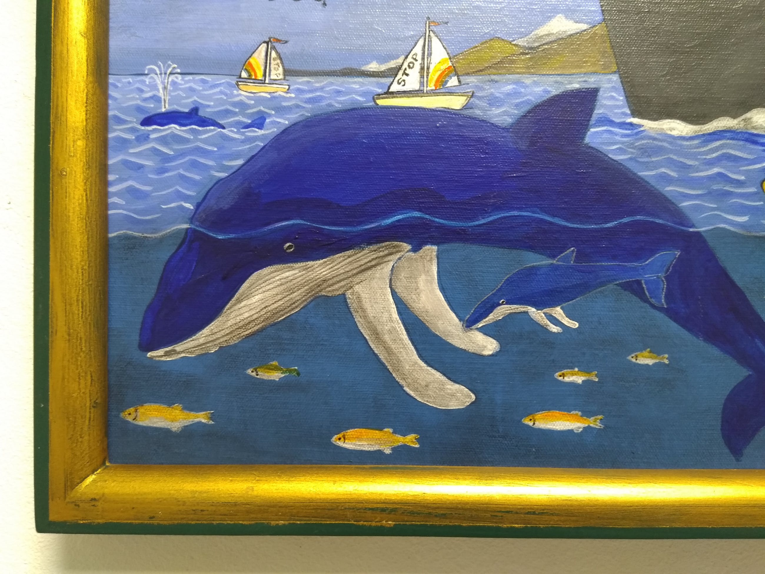 zijn eigen herkenbare naïeve stijl. In primaire kleuren schildert hij