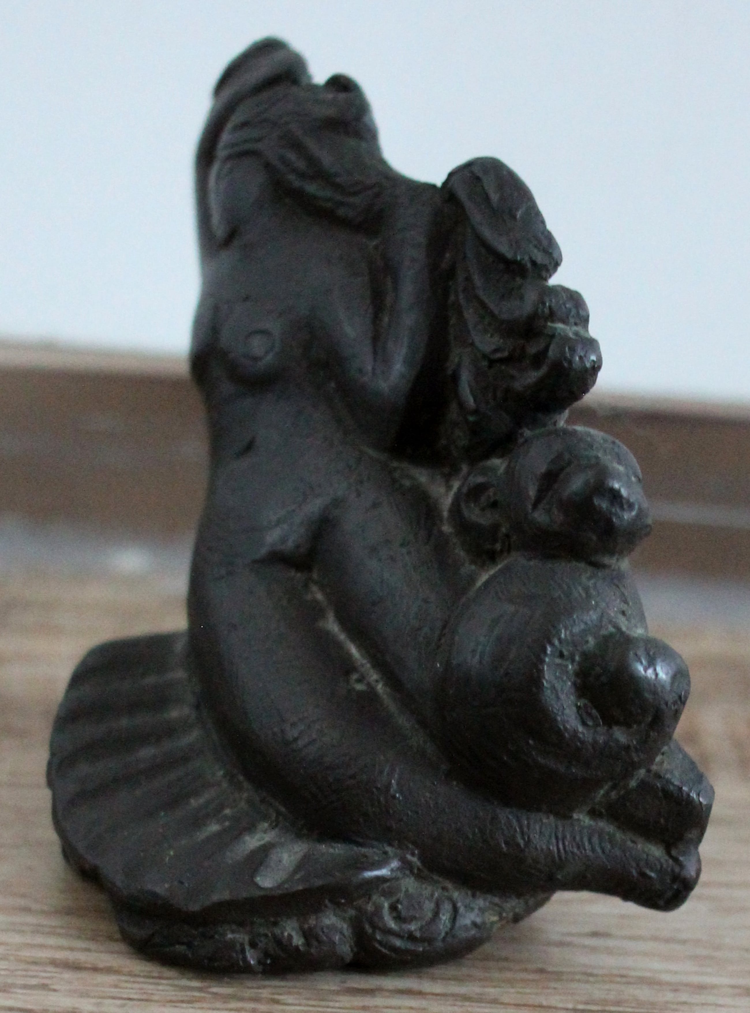 Bronzen beeldje van Jan Meefout, Zeemeermin. Afmetingen: H7 x b8 x d3cm. Het werk is ongesigneerd.