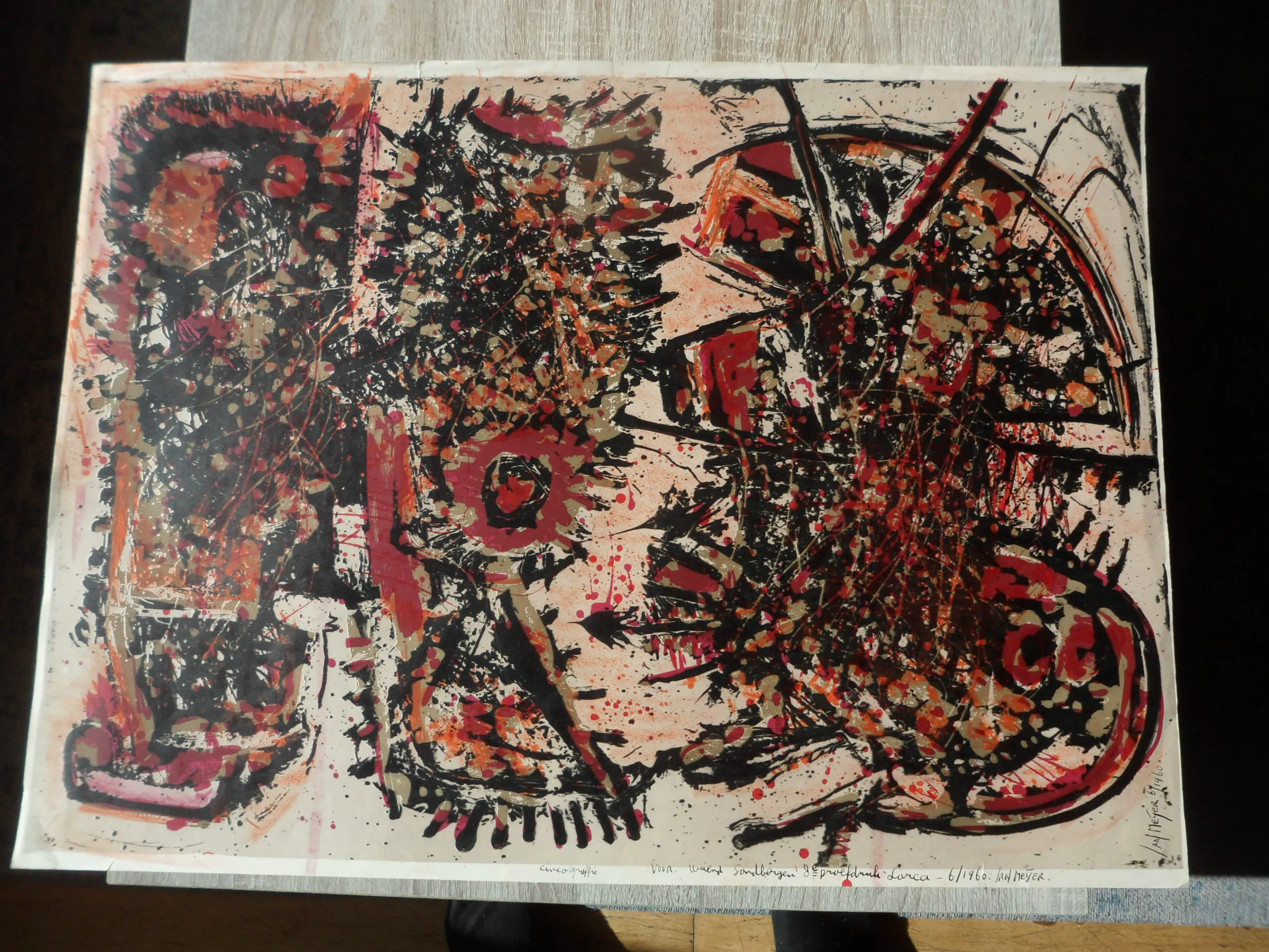 Het werk heeft aan de witte randen wat schuurtje en vouwen zie de foto's. | |||||||||