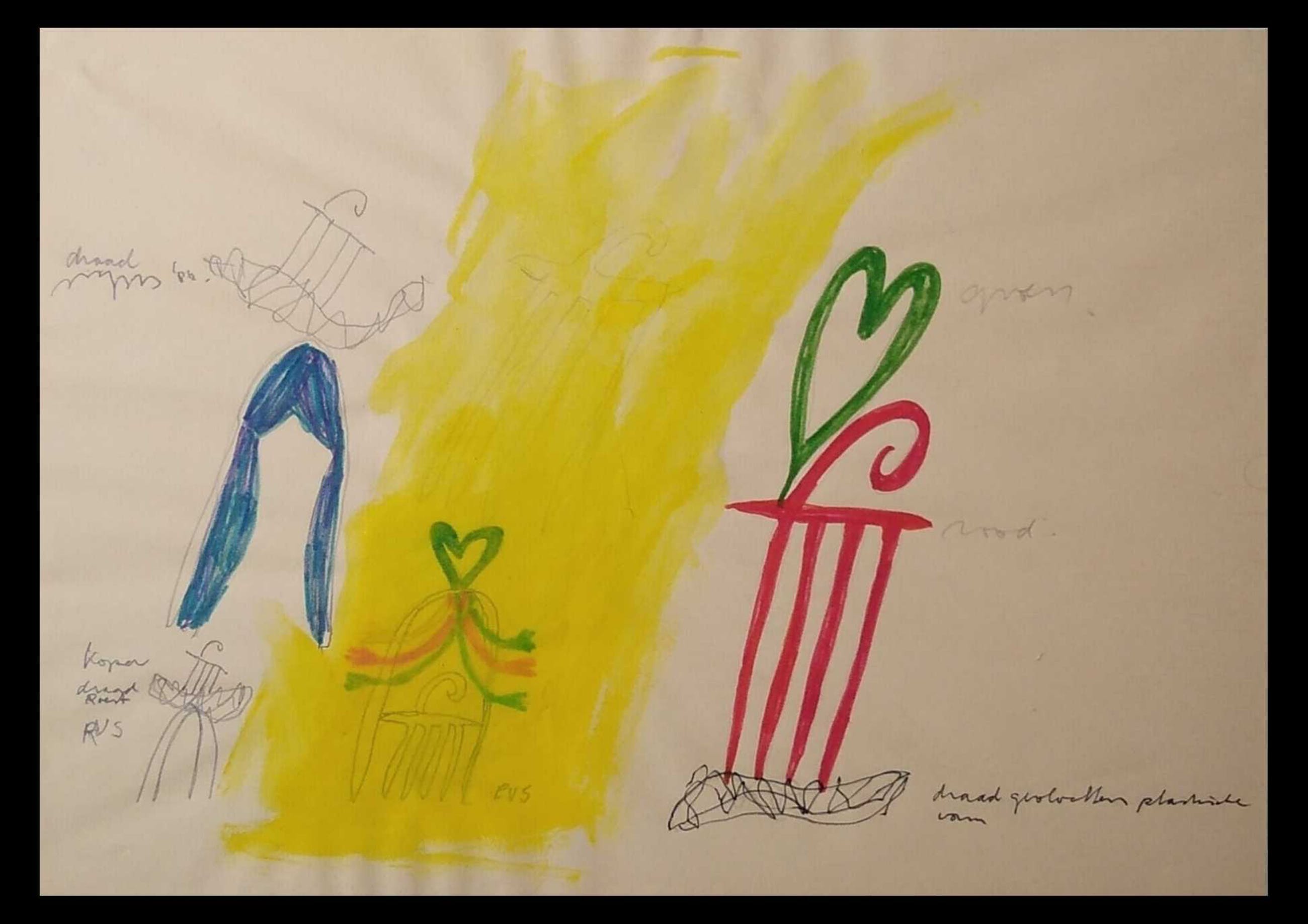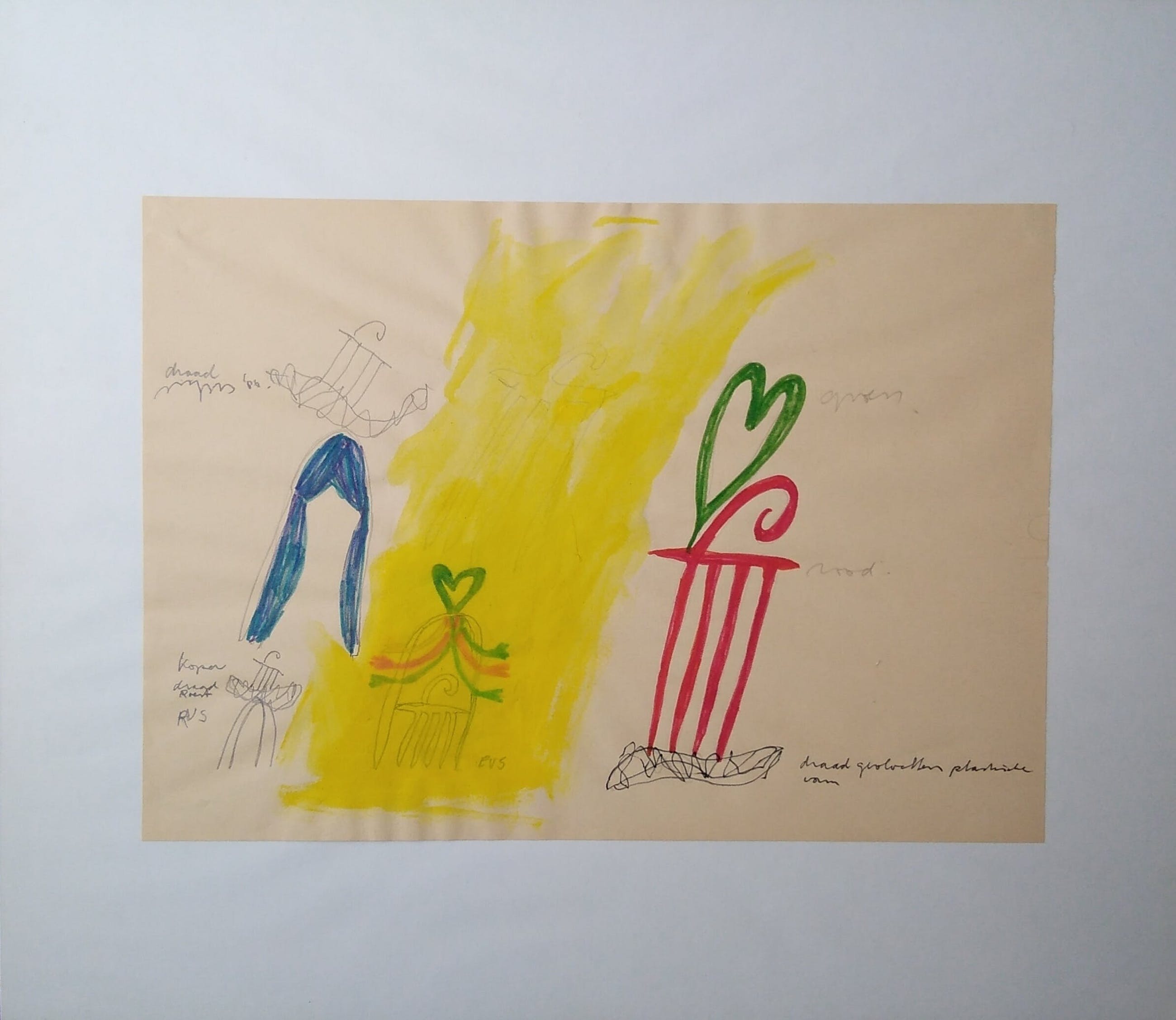 Jan Meijer gemengde techniek met aquarel, stift, potlood. 1986.Afmetingen 30 x 42 cm. Bevestigd op papier 48 x 55 cm. Herkomst galerie Jurka.