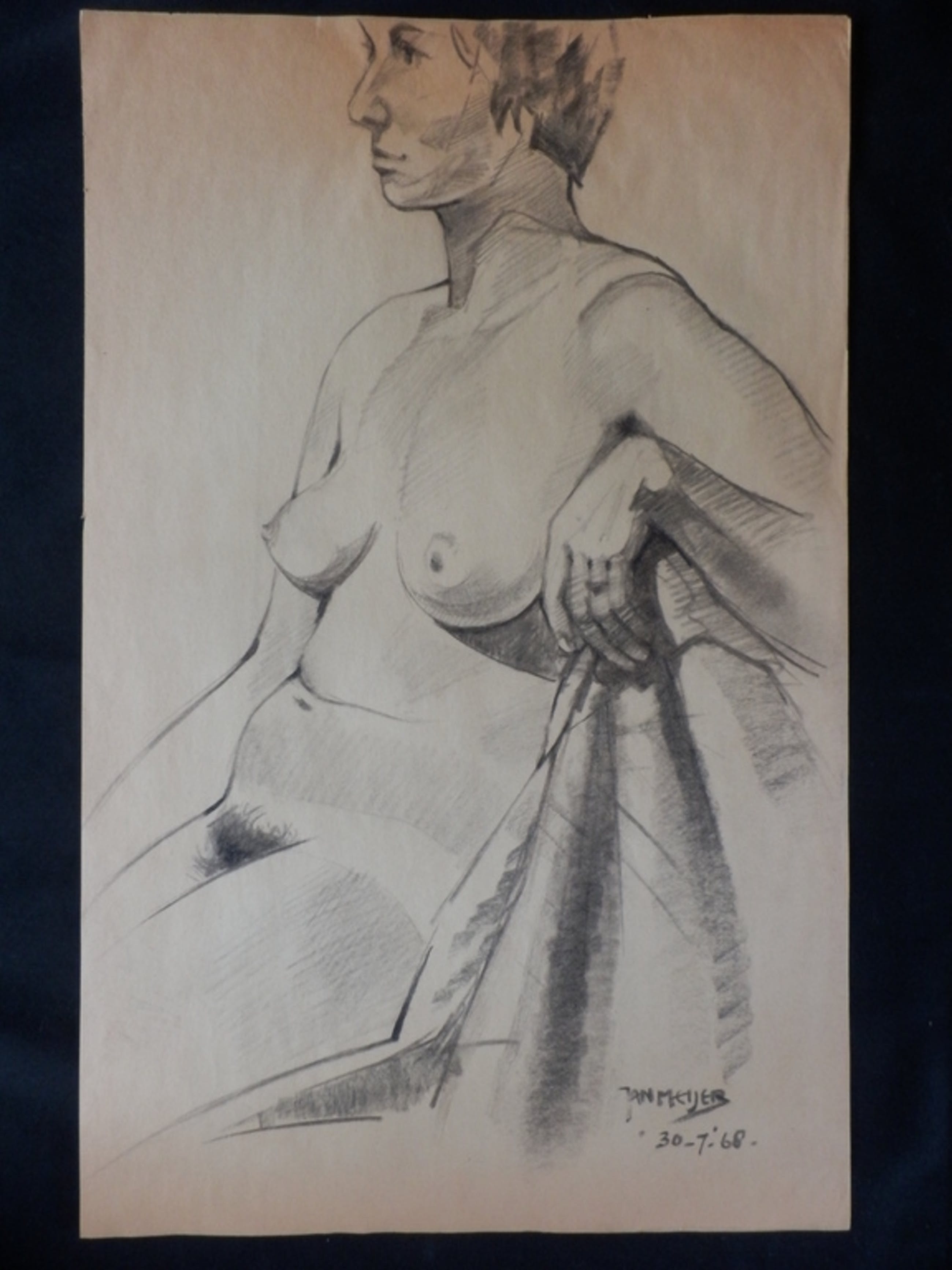 Fraaie potloodtekening van Jan Meijer uit 1968