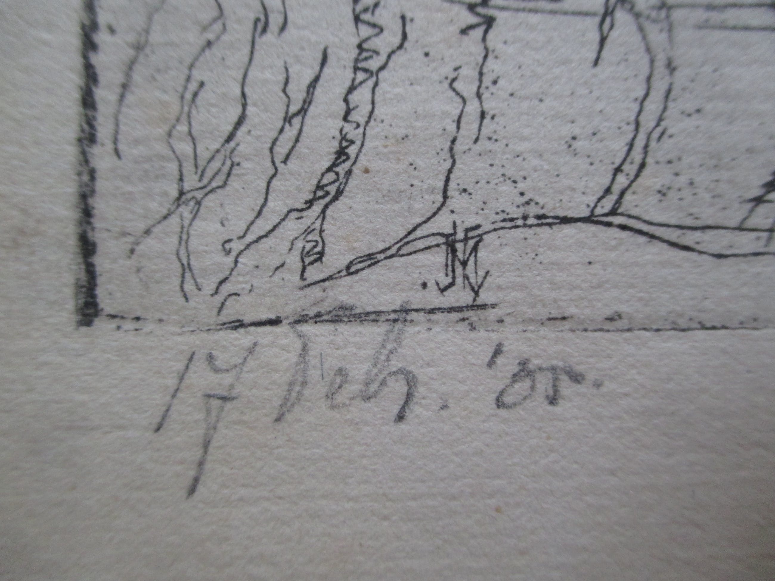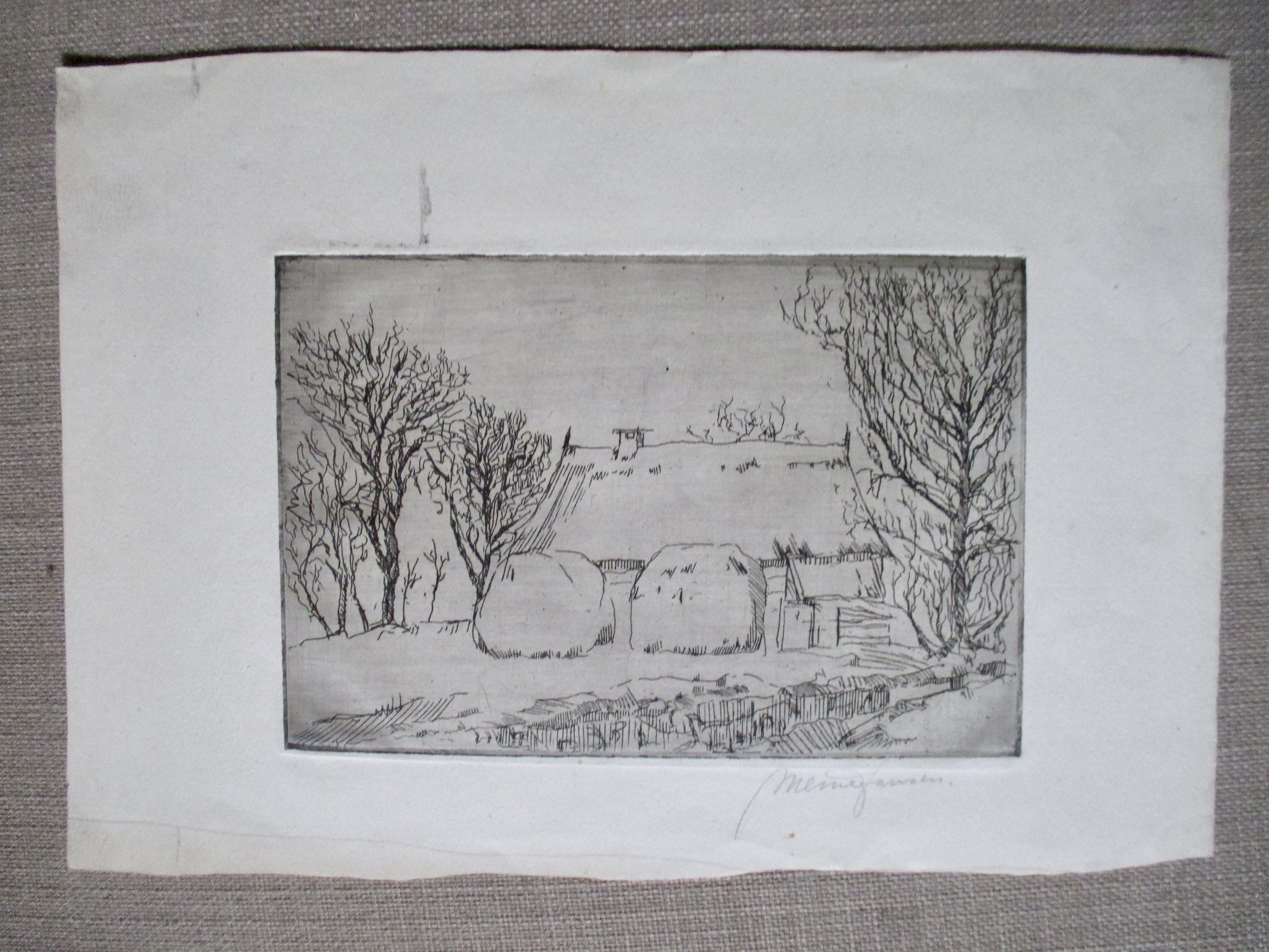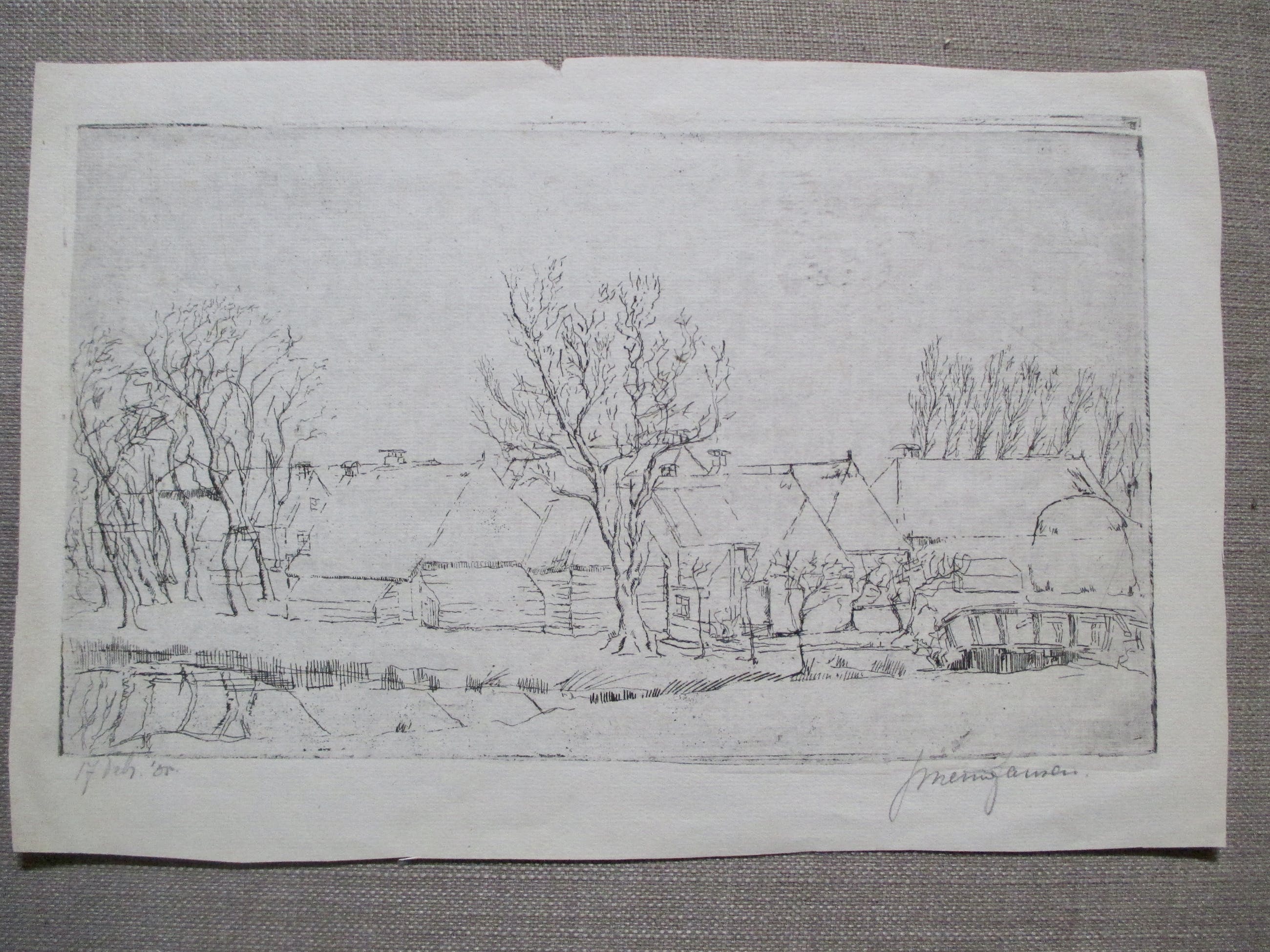 Twee etsen van Jan Meine Jansen, de tweede ets meet 19,7x28,2 (blad). Beide gesigneerd in potlood. De eerste ets is gedateerd in potlood 17 febr. 05. Verzending tussen twee plaatjes, 5,10