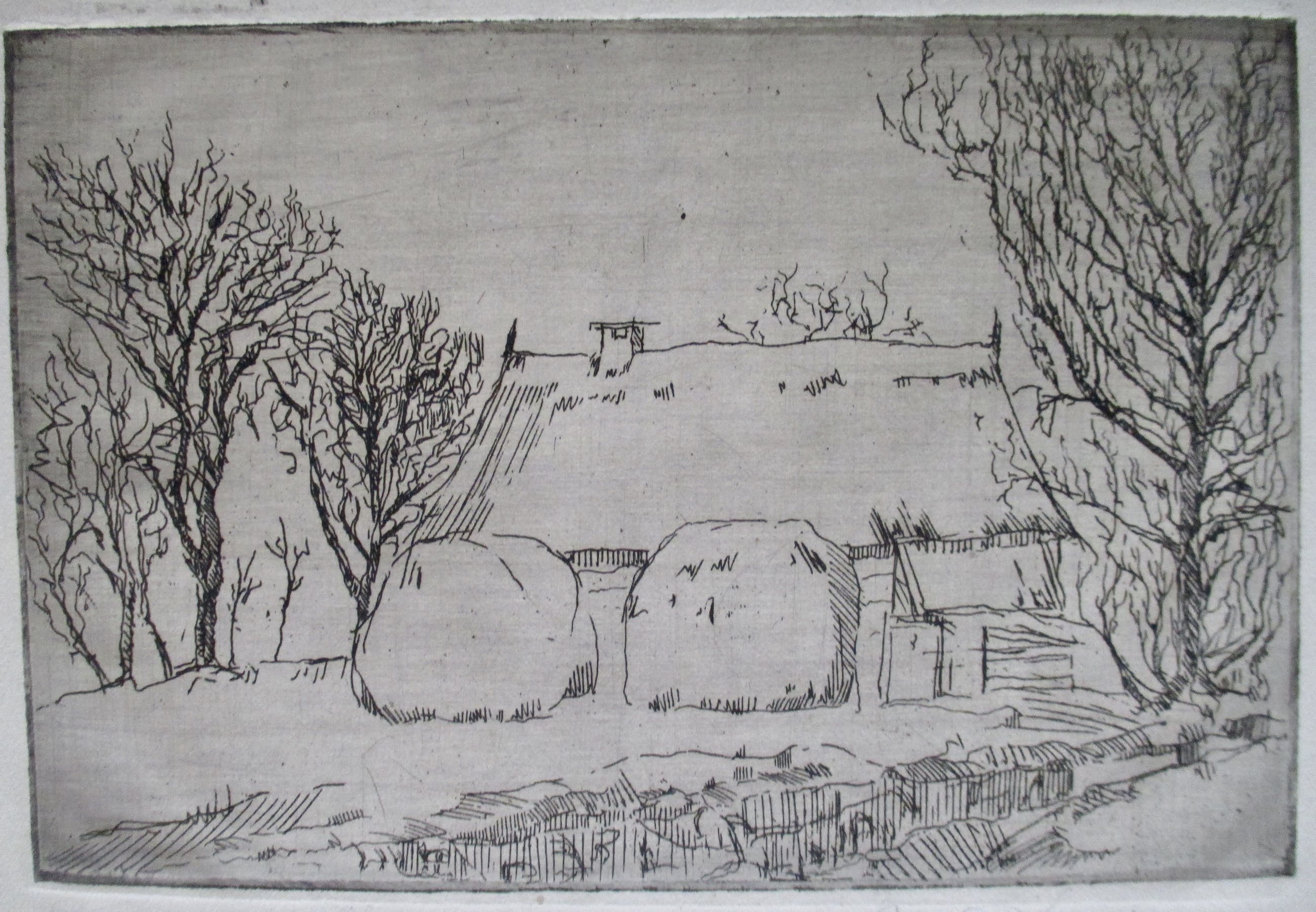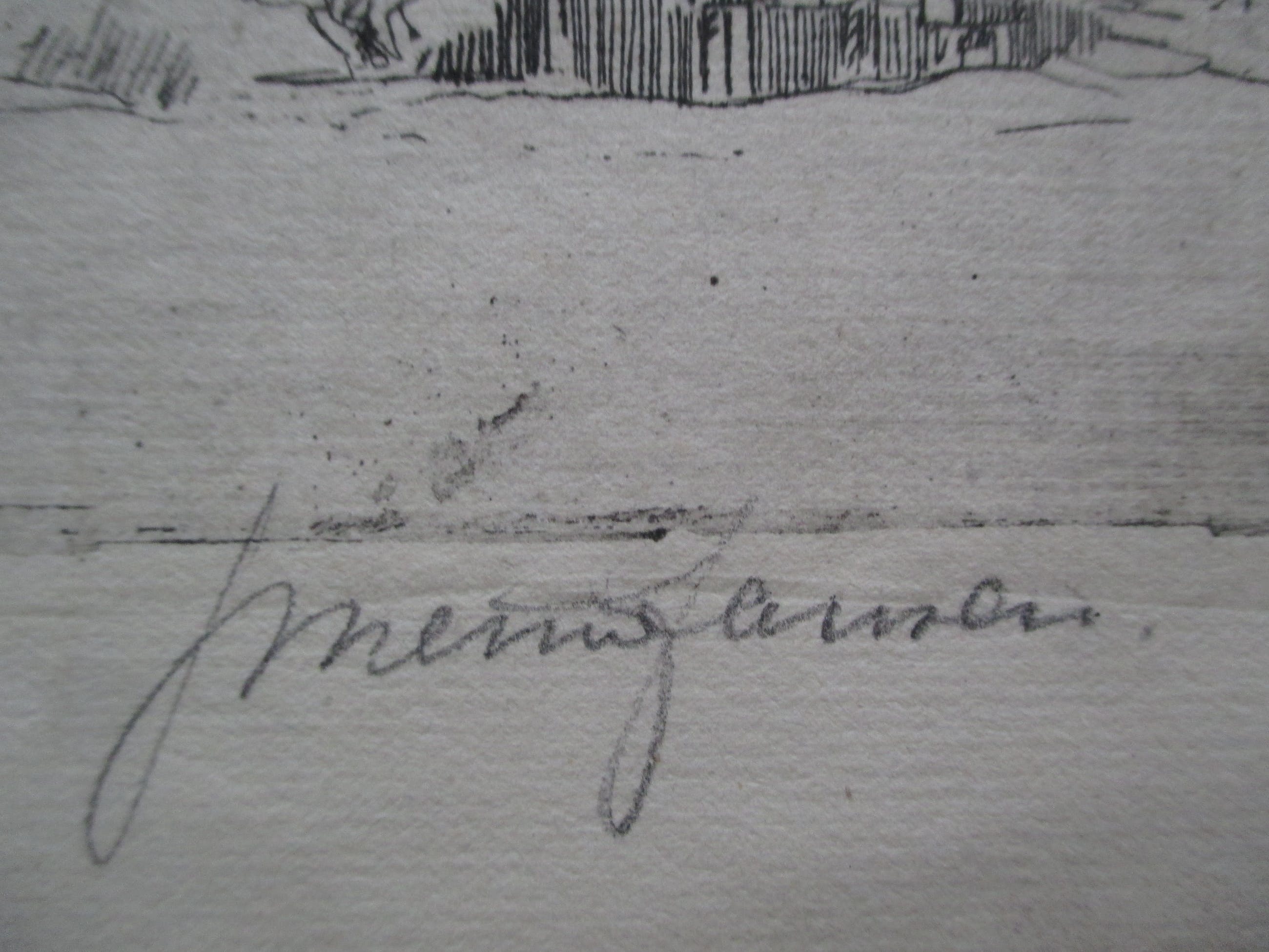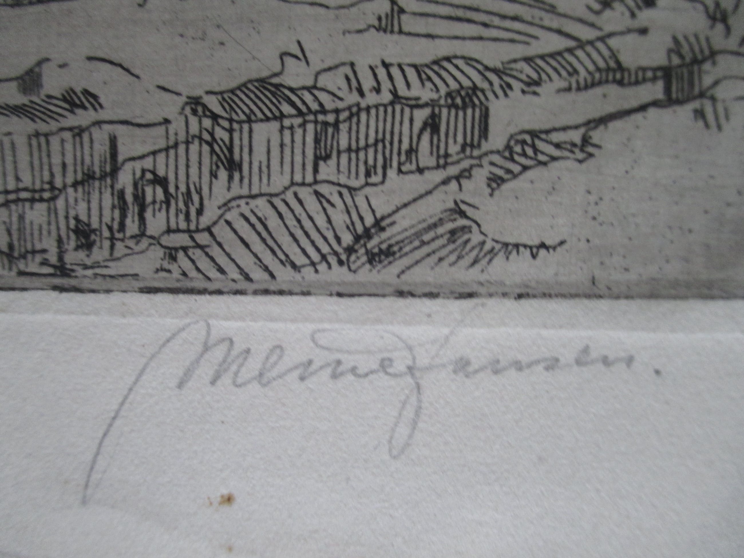 Twee etsen van Jan Meine Jansen, de tweede ets meet 19,7x28,2 (blad). Beide gesigneerd in potlood. De eerste ets is gedateerd in potlood 17 febr. 05. Verzending tussen twee plaatjes, 5,10