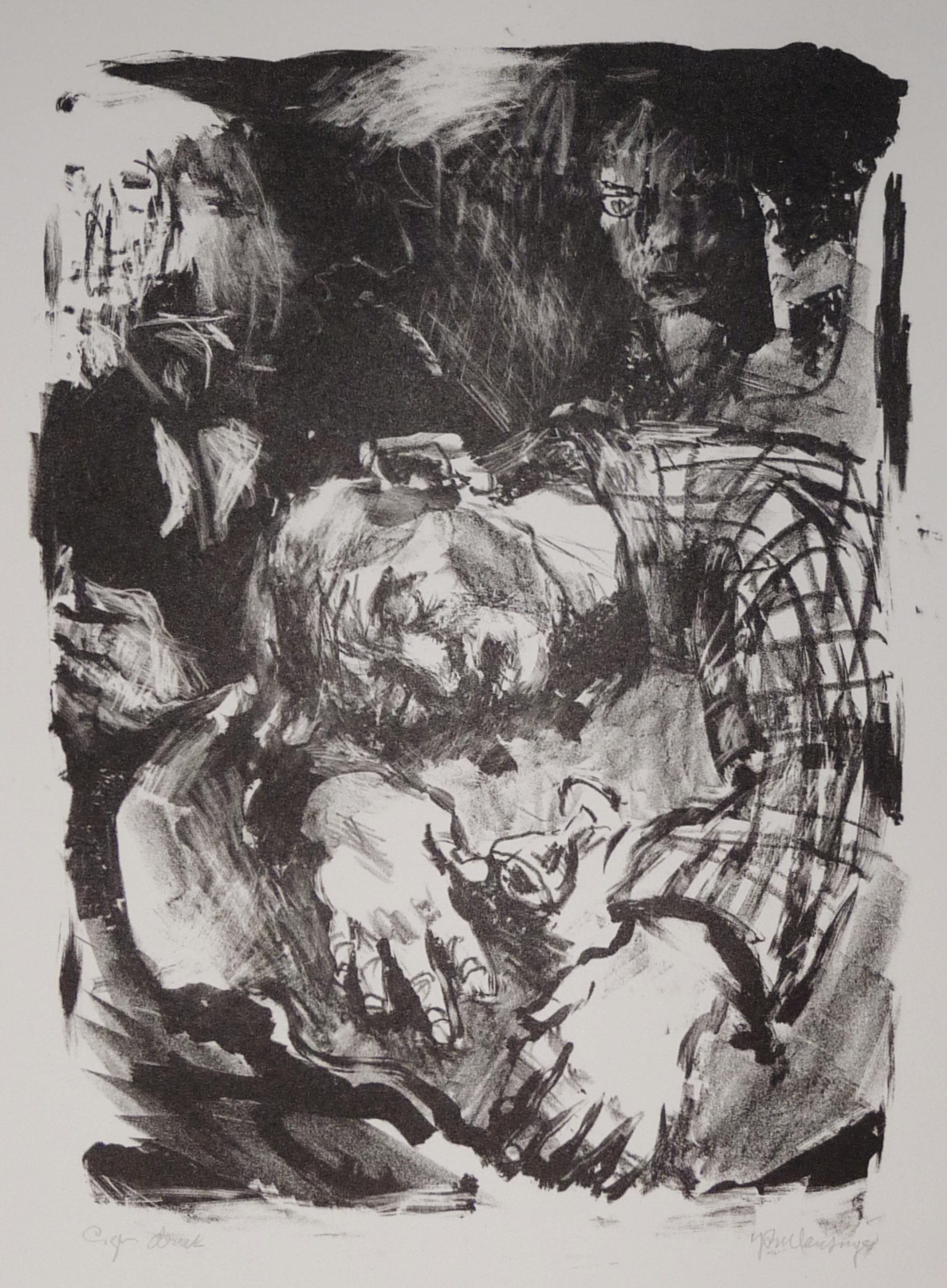 *Fraaie litho in eigen druk uit de serie met cafescenes. *Papiermaat 50 x 40 cm. Beeldmaat is kleiner, ong. 35 x 25 cm. *Prent is waarschijnlijk in/rond 1982 gemaakt. *Prent zit in dik cremekleurig papieren passe-partout met de maten 61 x 46 cm en voor de prent zit een beschermend transparant folie van goede kwaliteit. Netjes allemaal. *Verzending is aangetekend, verzekerd en goed verpakt.