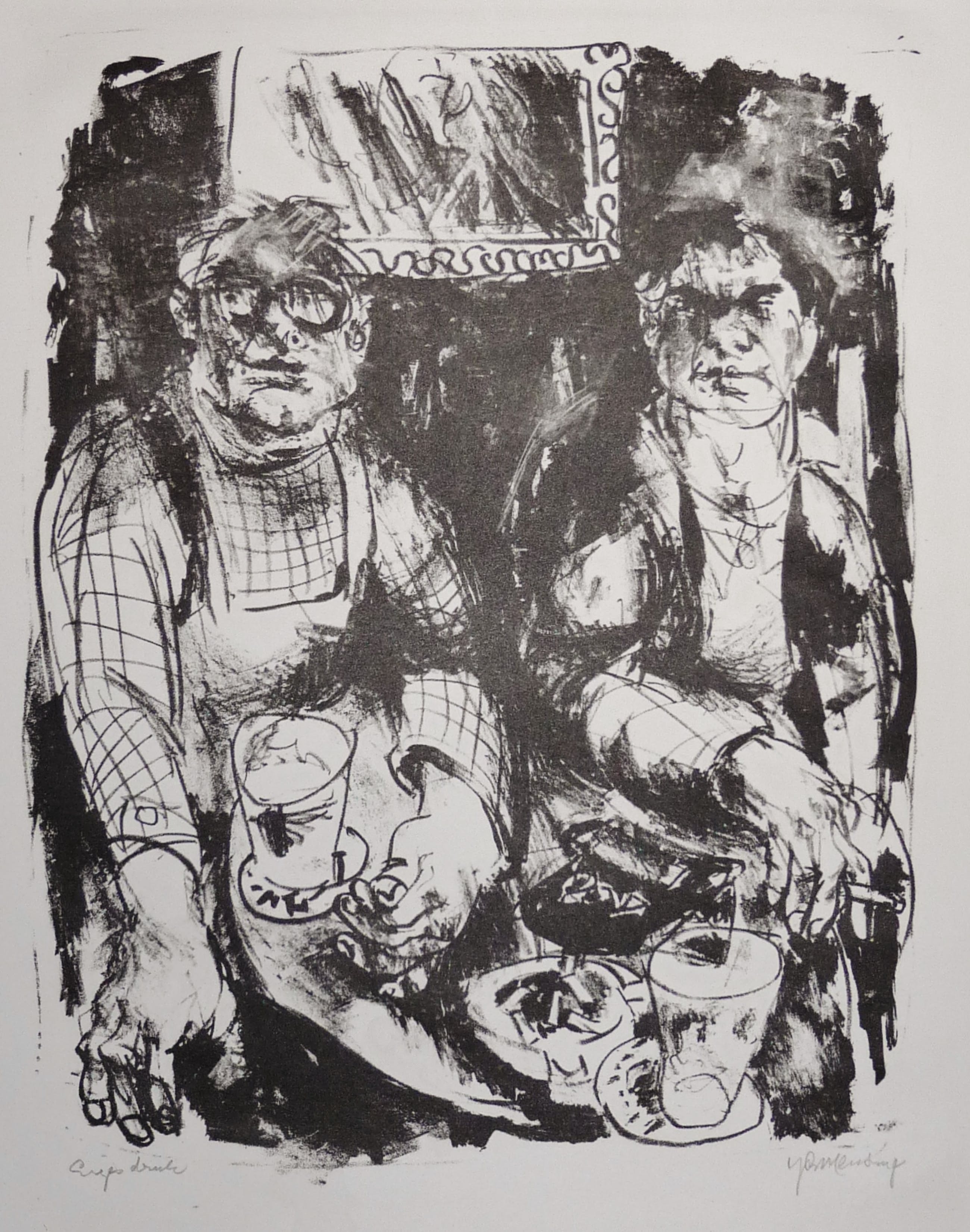 *Fraaie litho in eigen druk uit serie met cafescenes. *Papiermaat 50 x 40 cm. Beeldmaat is kleiner, ong. 35 x 25 cm. *Prent is waarschijnlijk in/rond 1982 gemaakt. *Prent zit in dik cremekleurig papieren passe-partout met de maten 61 x 46 cm en voor de prent zit een beschermend transparant folie van goede kwaliteit. Netjes allemaal. *Verzending is aangetekend, verzekerd en goed verpakt.