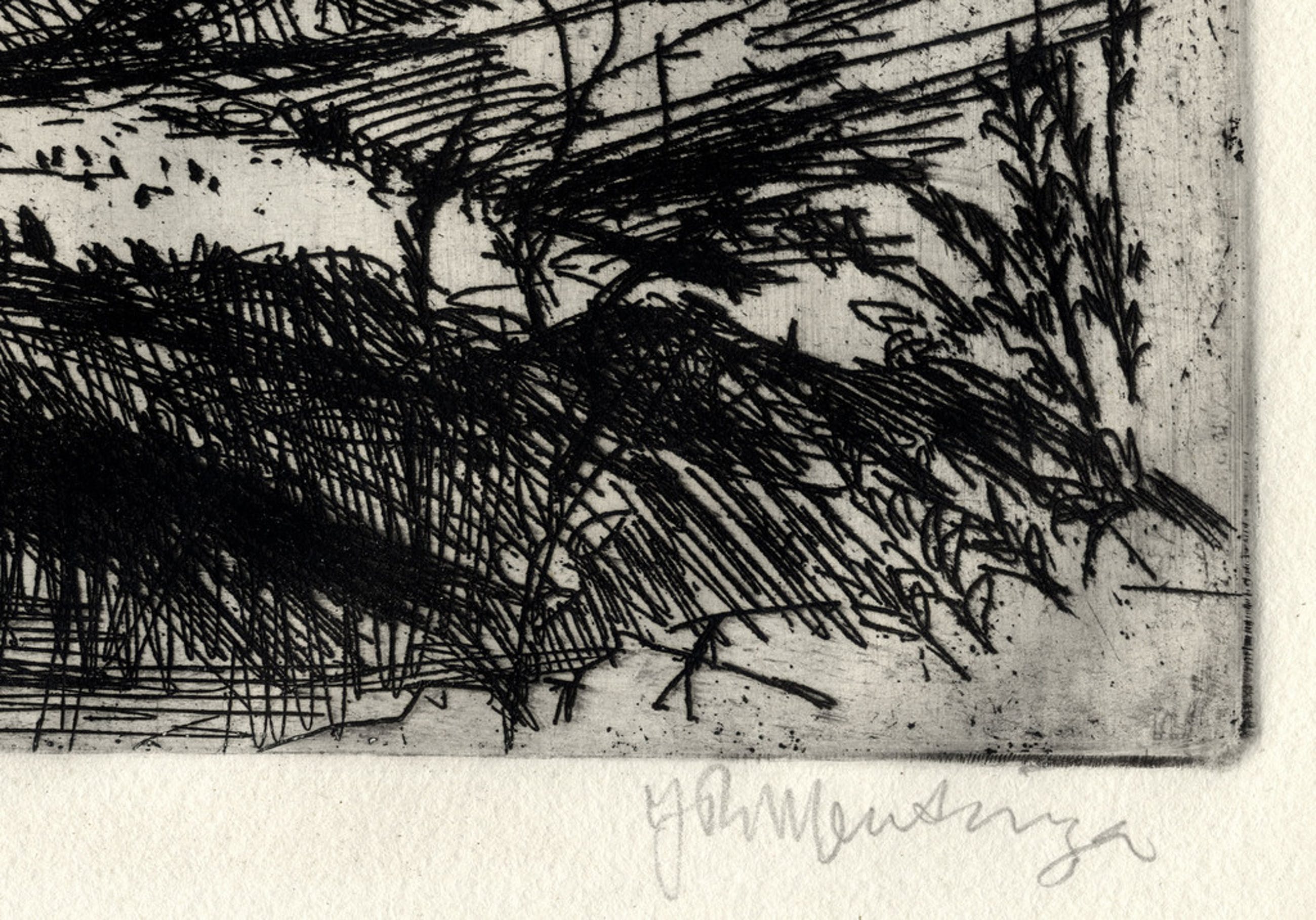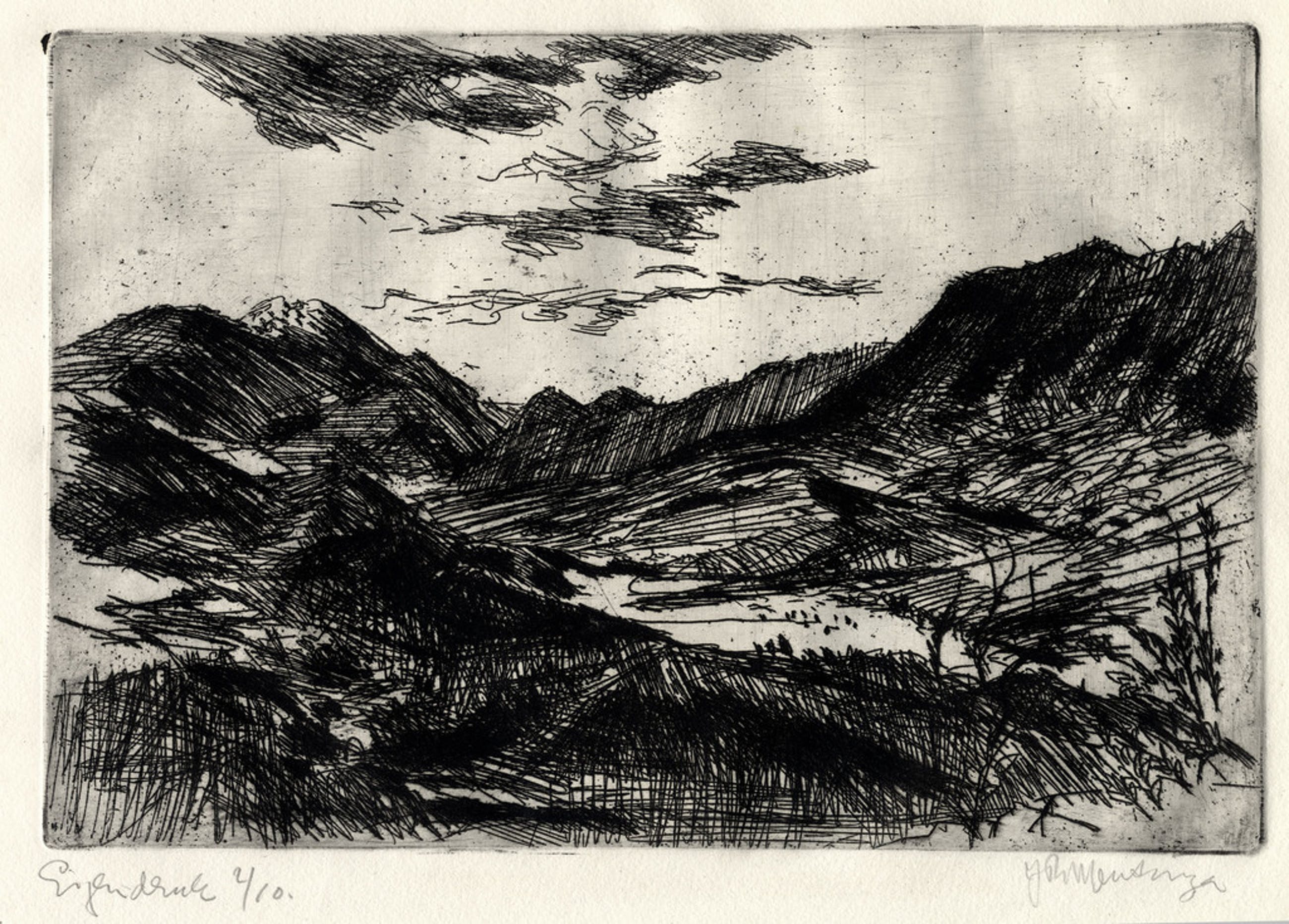 Jan Mensinga (Leeuwarden 1924 -1998 Amsterdam) - Berglandschao I - Italië ca. 1962 - ets 185x275mm Gesigneerd in potlood en geannoteerd "eigen druk" en "2/10". Gedrukt op een blad stevig diepdrukpapier van 31x39cm in perfecte staat, wordt geleverd in zuurvrijdmuseumkarton. Wordt aangetekend verzodnden.