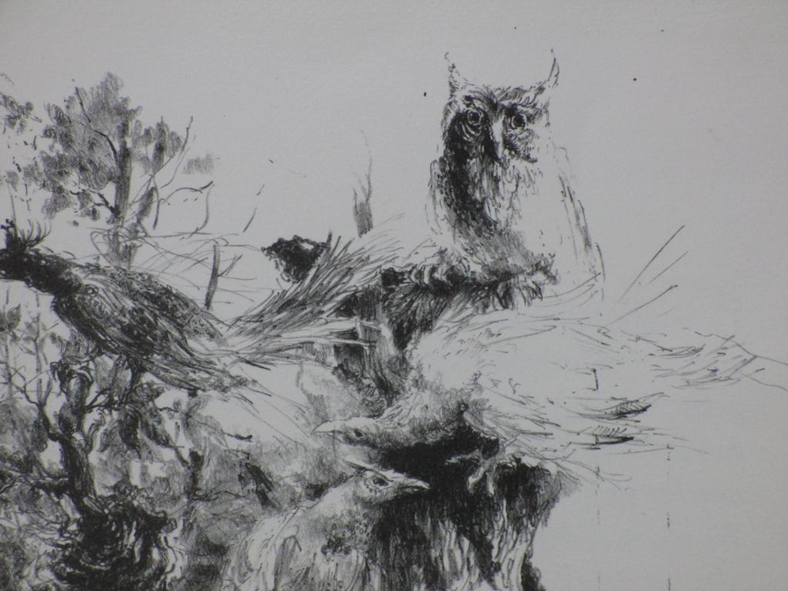 Voorstelling van een viertal vogels en een uil
