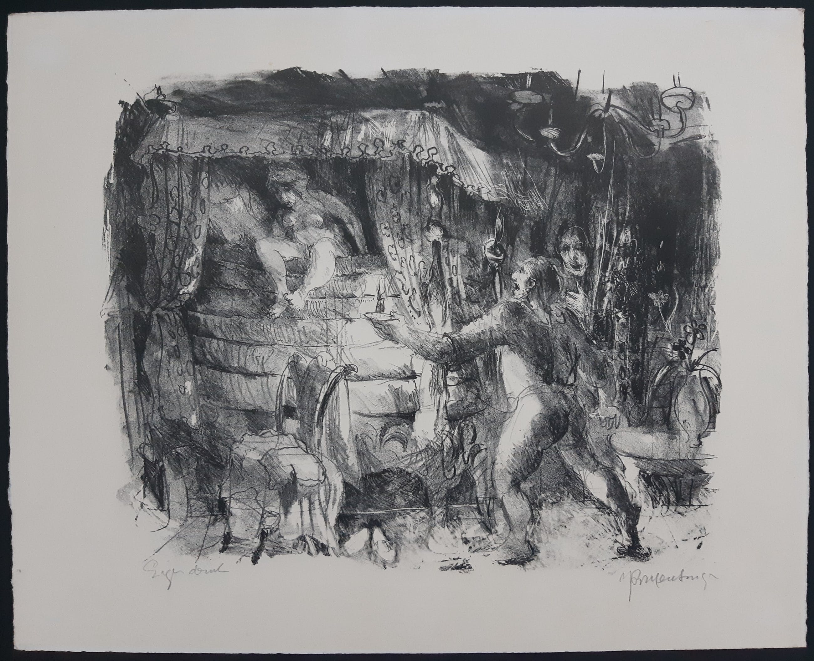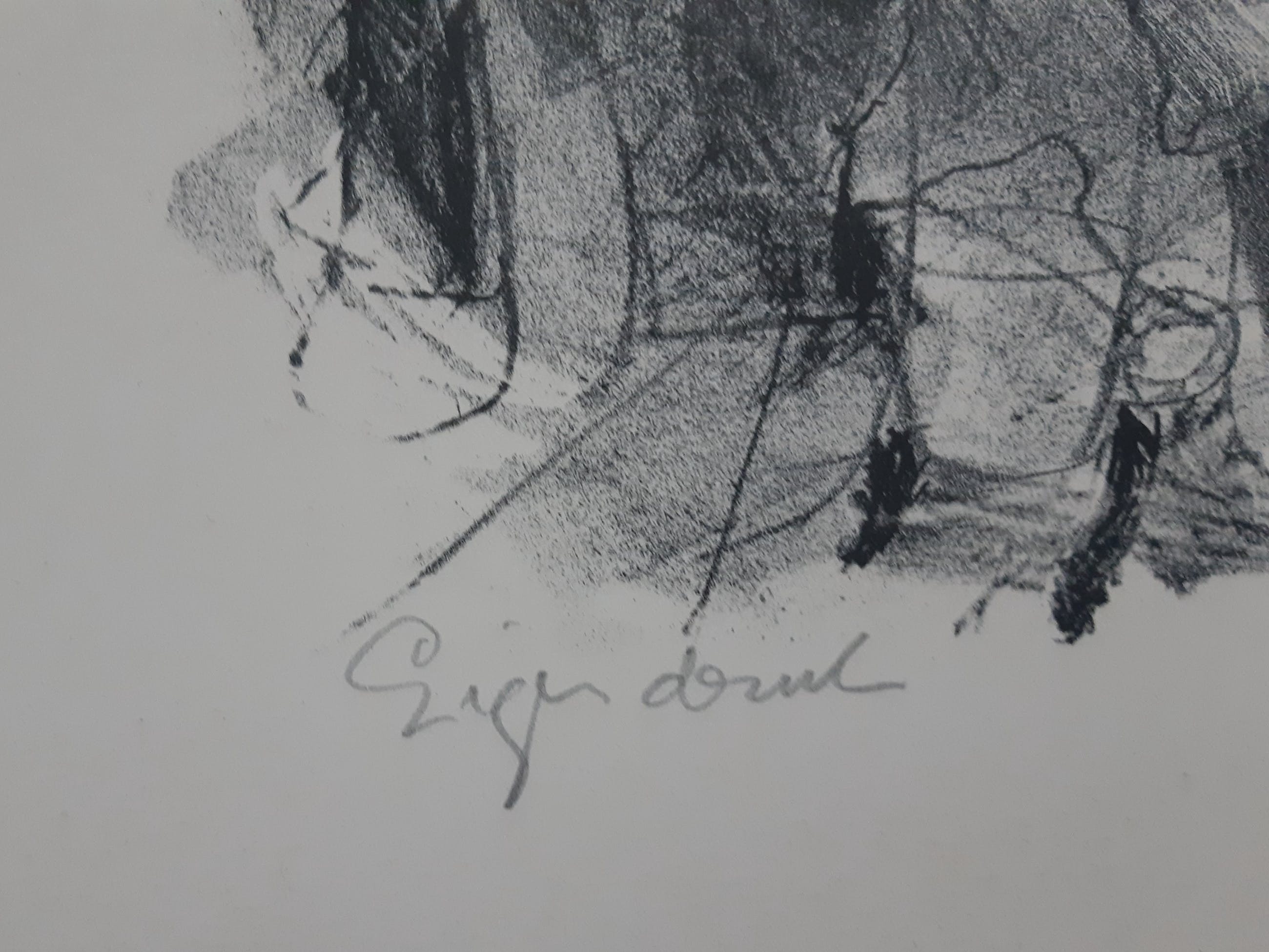 Litho van Jan Mensinga. De afbeelding is 30 x 40 cm. Met potlood gesigneerd. Het betreft een eigen druk van de kunstenaar. De conditie is uitstekend.
