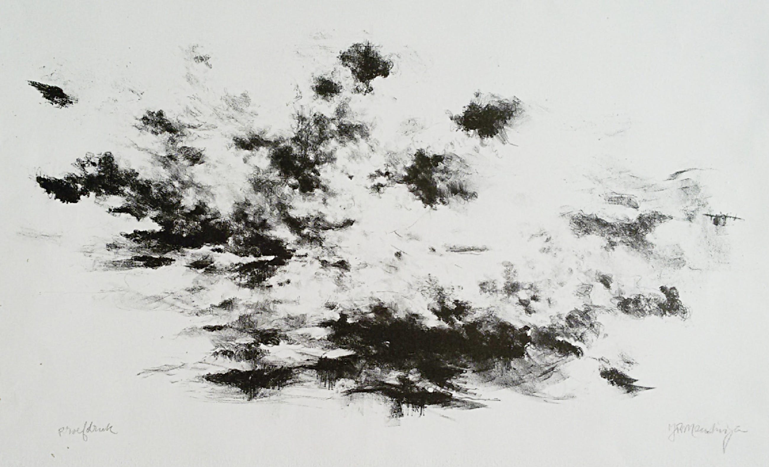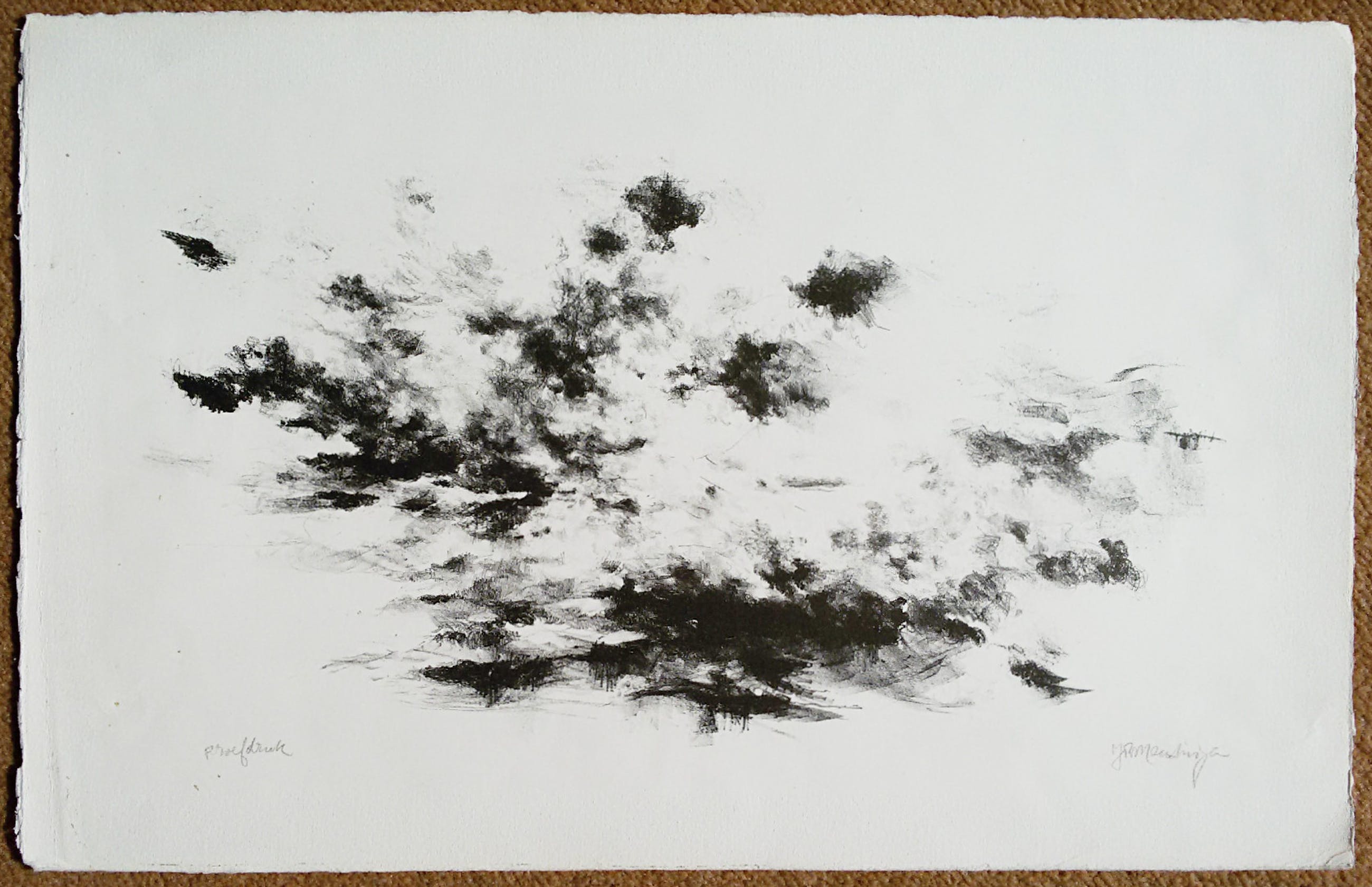 Bijna abstract werk van Jan Mensinga. Litho op geschept papier, met potlood gesigneerd, een proefdruk. In goede conditie, alleen wat minieme kreukjes, en kleine vlekjes linksonder (zie foto 4).