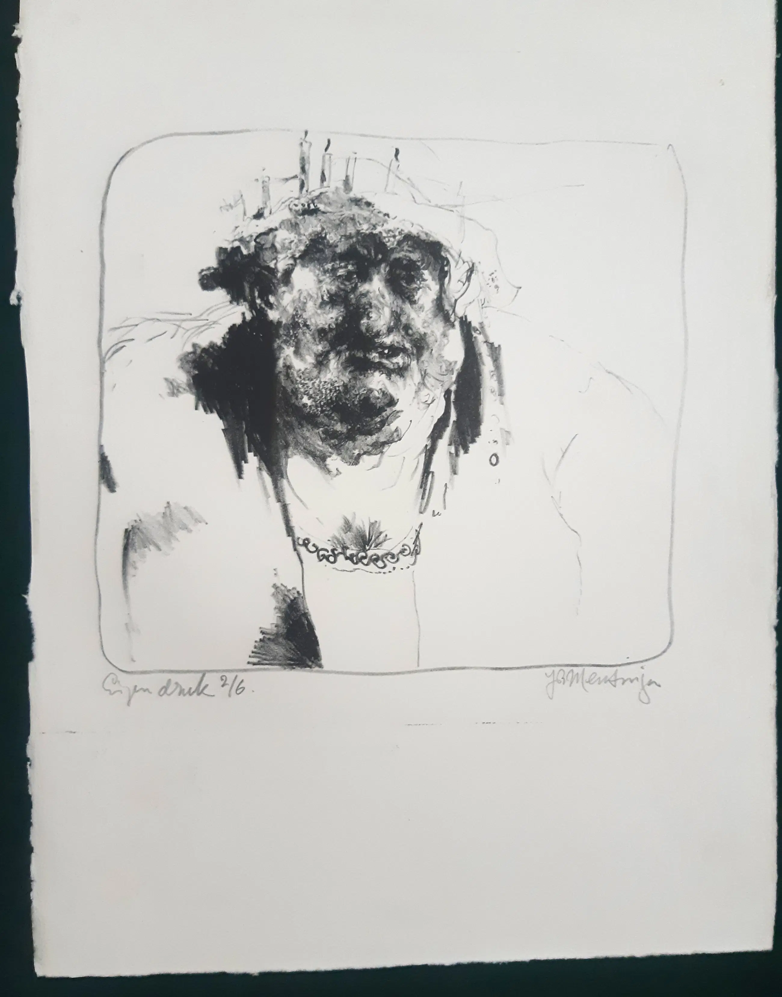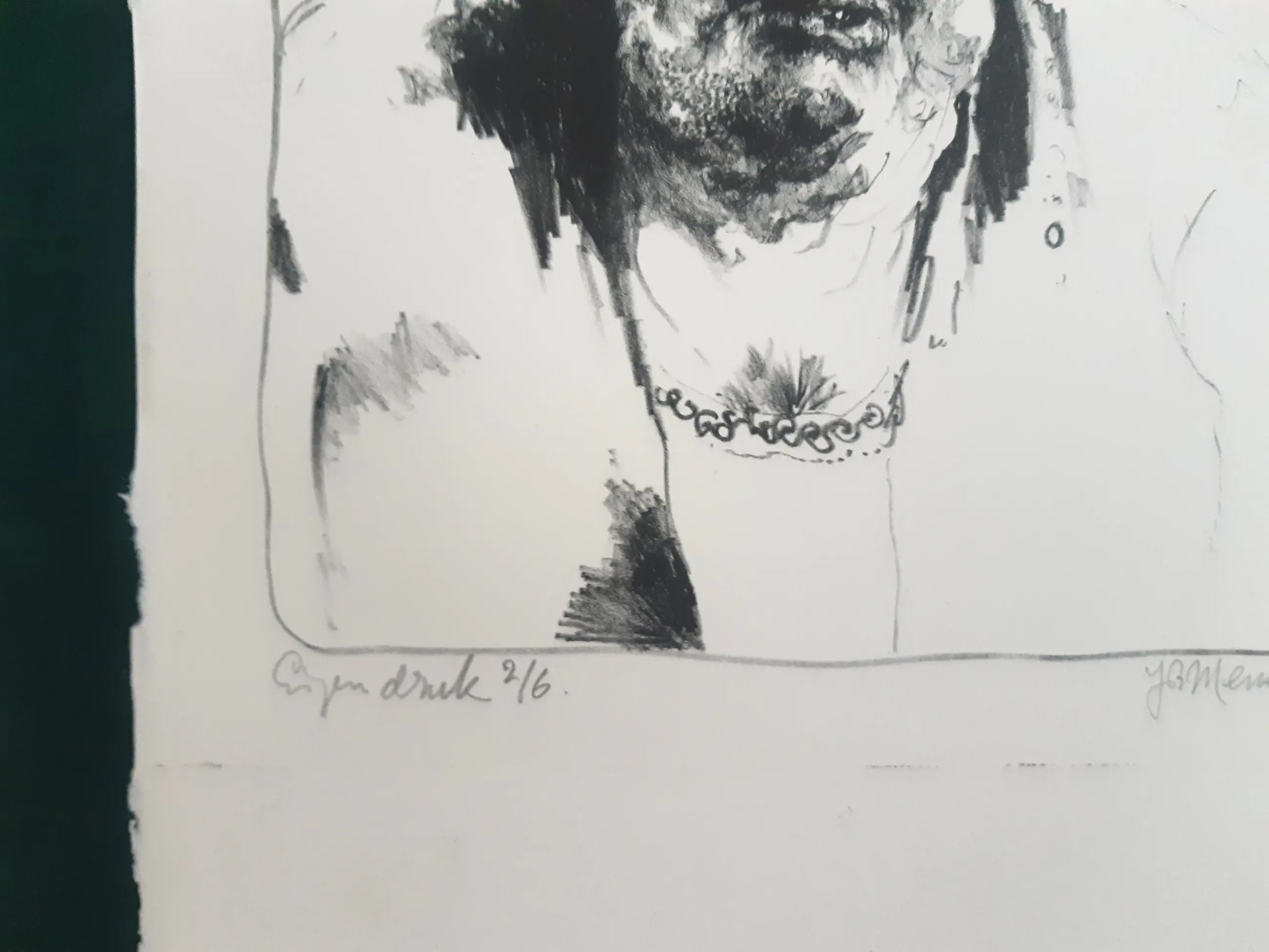 Typische litho van Jan Mensinga, zonder titel. Met potlood gesigneerd en genummerd. Zeer kleine oplage. De conditie is zeer goed, plakbandresten op de achterkant.
